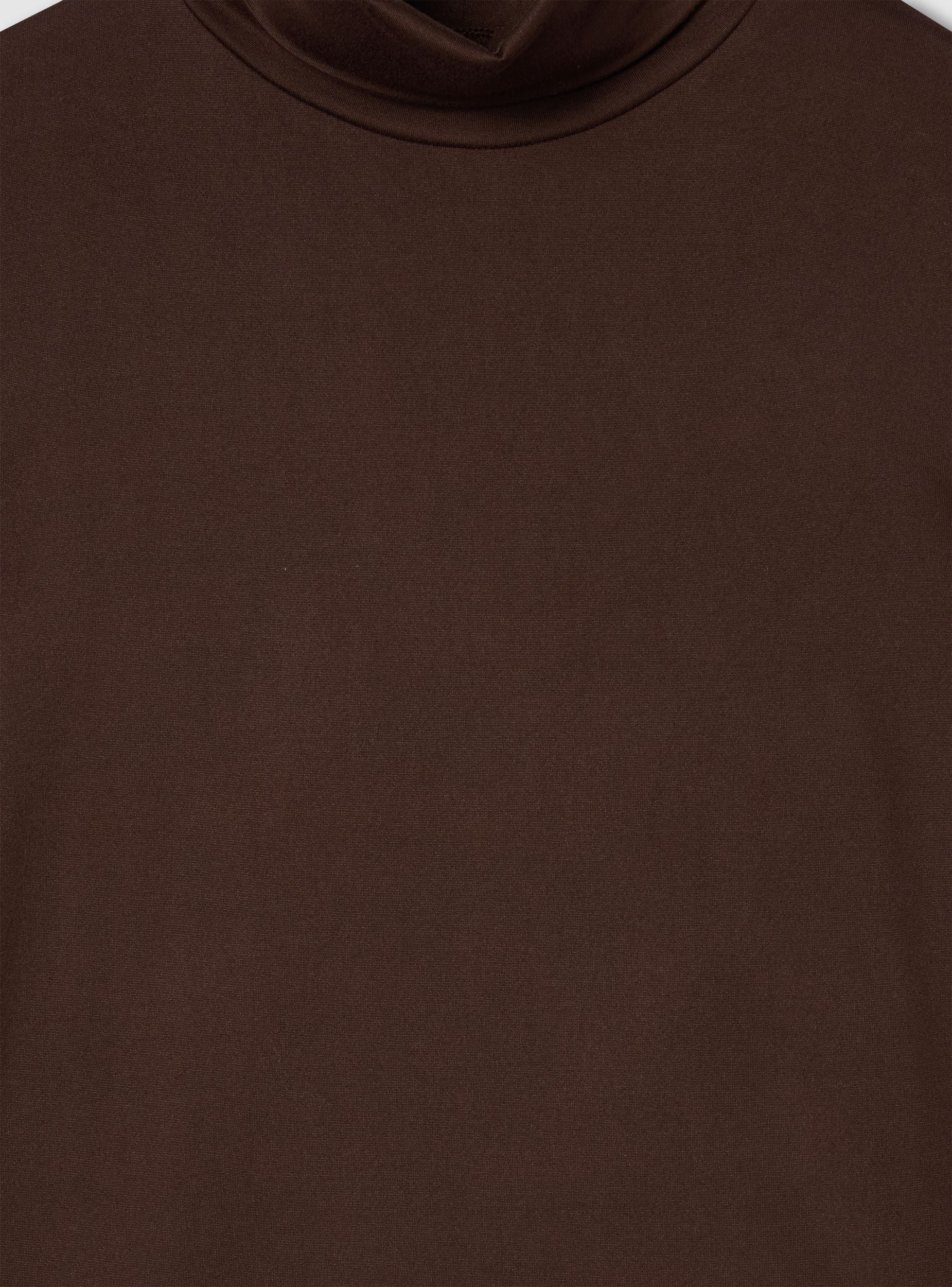 Женска блуза с дълъг ръкав и висока яка, основна и съществена. Тази блуза е идеалната дреха за тези, които търсят сдържан и универсален стил. Дизайнът в едноцветен цвят и прилепналата линия подчертават фигурата, без да се жертва комфорта, докато високата яка добавя изтънчен и съвременен акцент, перфектен за стилно справяне с по-хладните дни. Дългите ръкави и еластичният материал я правят удобна за носене при всякакви поводи, както сама, така и като първи слой под якета или кардигани. Перфектна за офиса, свободното време или минималистичен шик вид, тя е основна блуза, която винаги трябва да имате под ръка в гардероба.Детайли