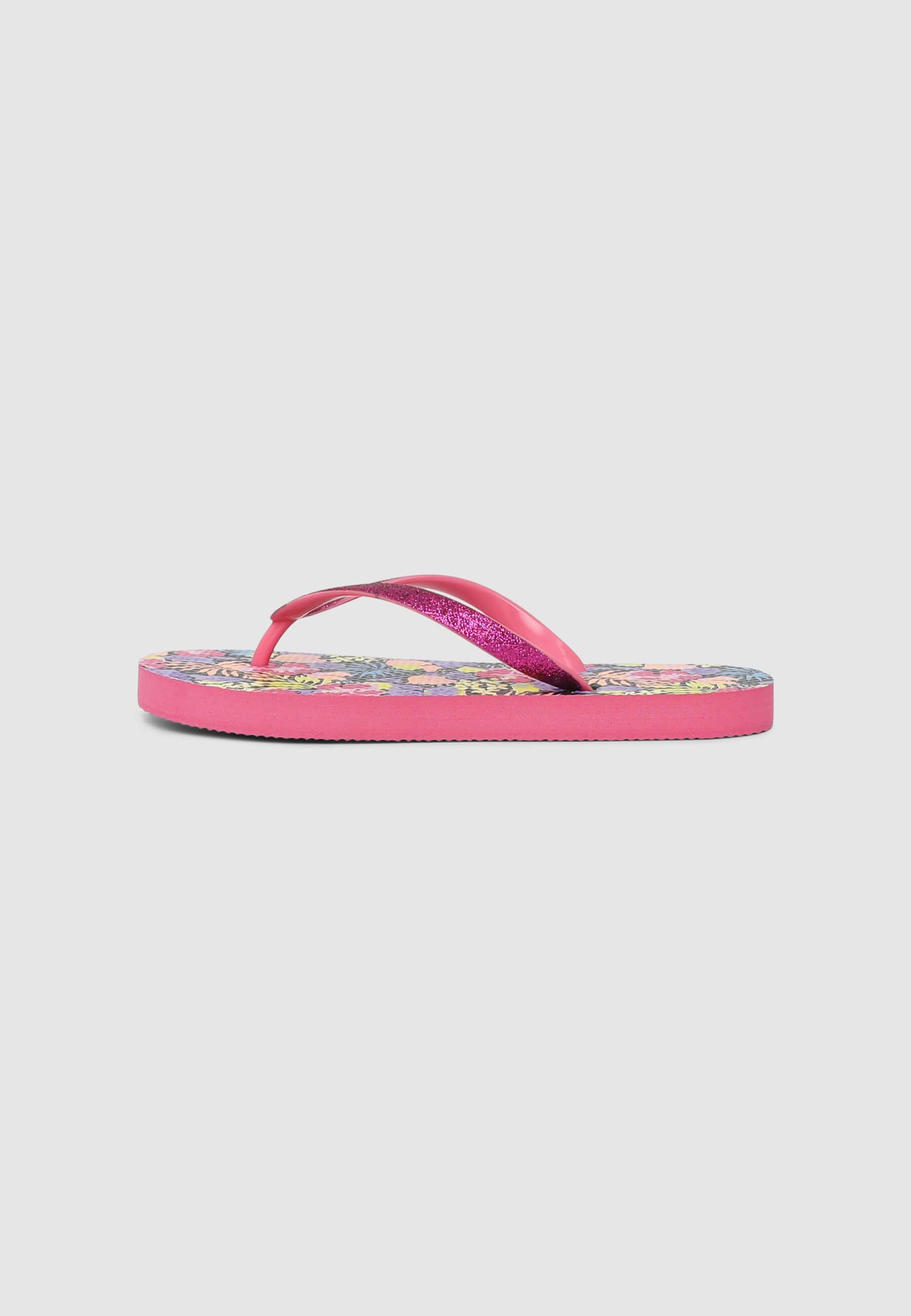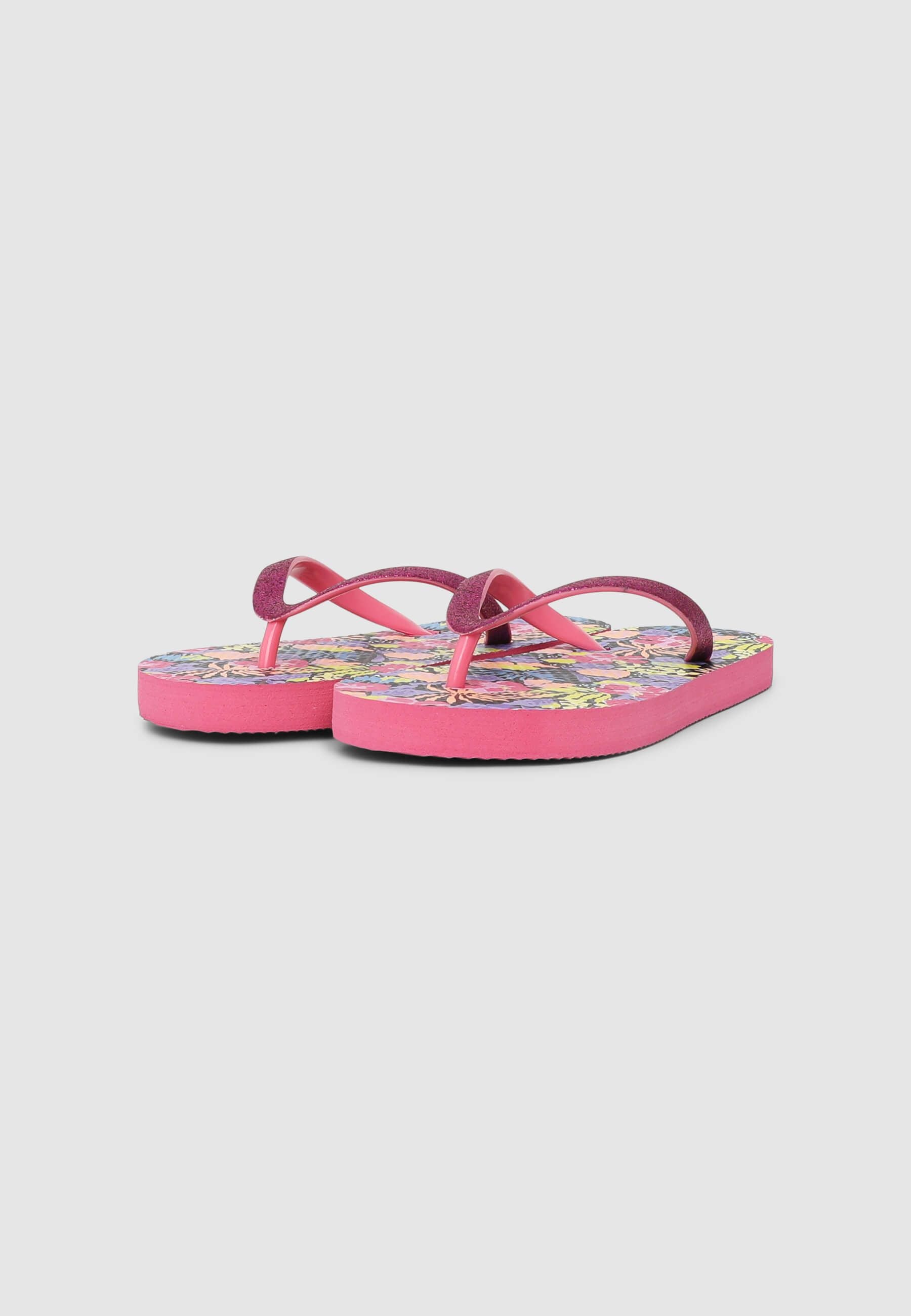 Детски сандали с джапанки, перфектни за летните дни, идеални за морето, басейна или просто за добавяне на жив цвят към ежедневните визии. Многоцветният дизайн с цветя придава радост и свежест, докато детайлите с блясък по лентите добавят бляскав и забавен акцент. Удобни и леки, тези джапанки съпътстват всяко лятно приключение със стил и практичност.