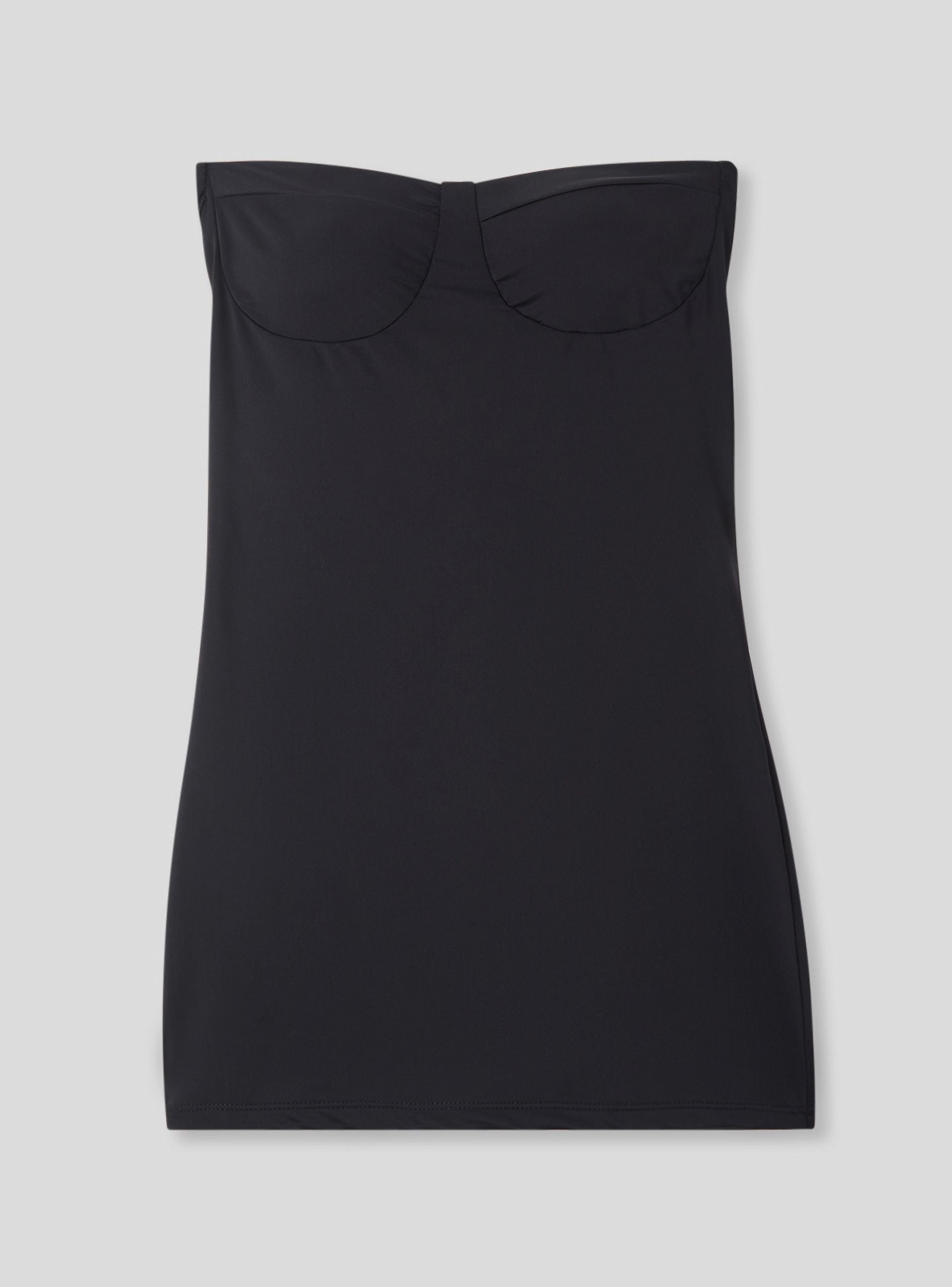Едноцветна дамска рокля с оформени чашки, които подчертават деколтето, и еластична кройка, която изтъква силуета. Перфектна за летните вечери и специални поводи, тя се съчетава с високи сандали за елегантен вид или с маратонки за по-непринуден стил. Основен елемент за женствен и модерен аутфит, идеален за изразяване на стил и индивидуалност с елегантност.Детайли