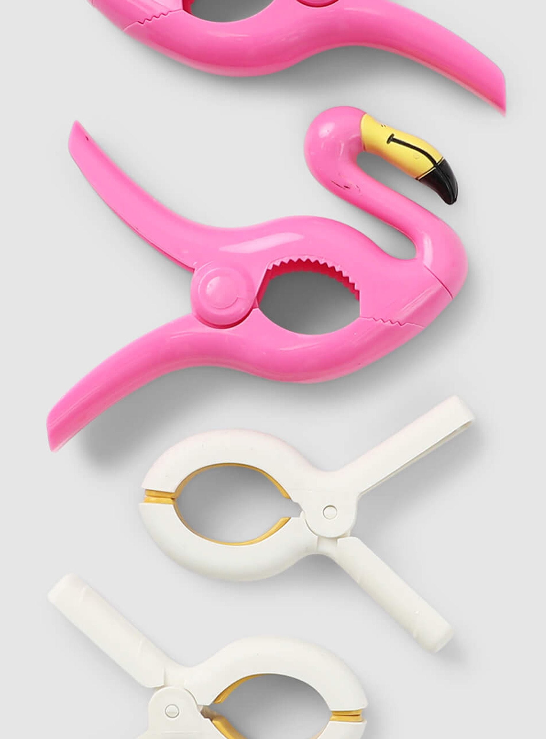 Комплект, състоящ се от 4 щипки за хавлии, идеални за закрепване на плажната кърпа към шезлонга, за да се насладите на релаксация без притеснения. Комплектът включва две щипки с оригинален дизайн, вдъхновен от симпатични животни, и две класически клипове, перфектни за осигуряване на стабилен и сигурен захват дори в най-вятърливите дни. Леки и лесни за пренасяне, тези щипки са незаменим аксесоар за плажа или басейна, съчетавайки функционалност и нотка радост в лятната ви визия.