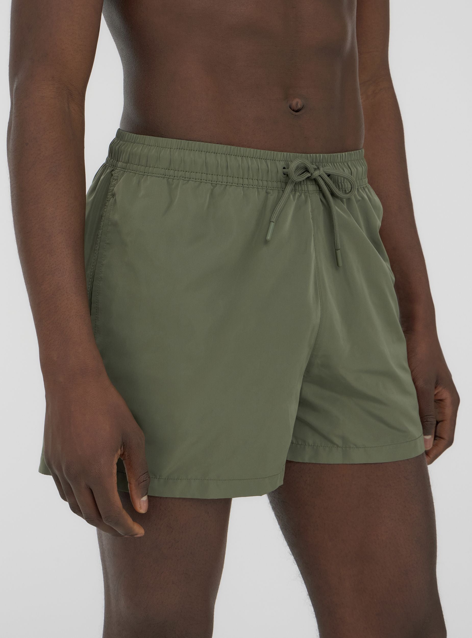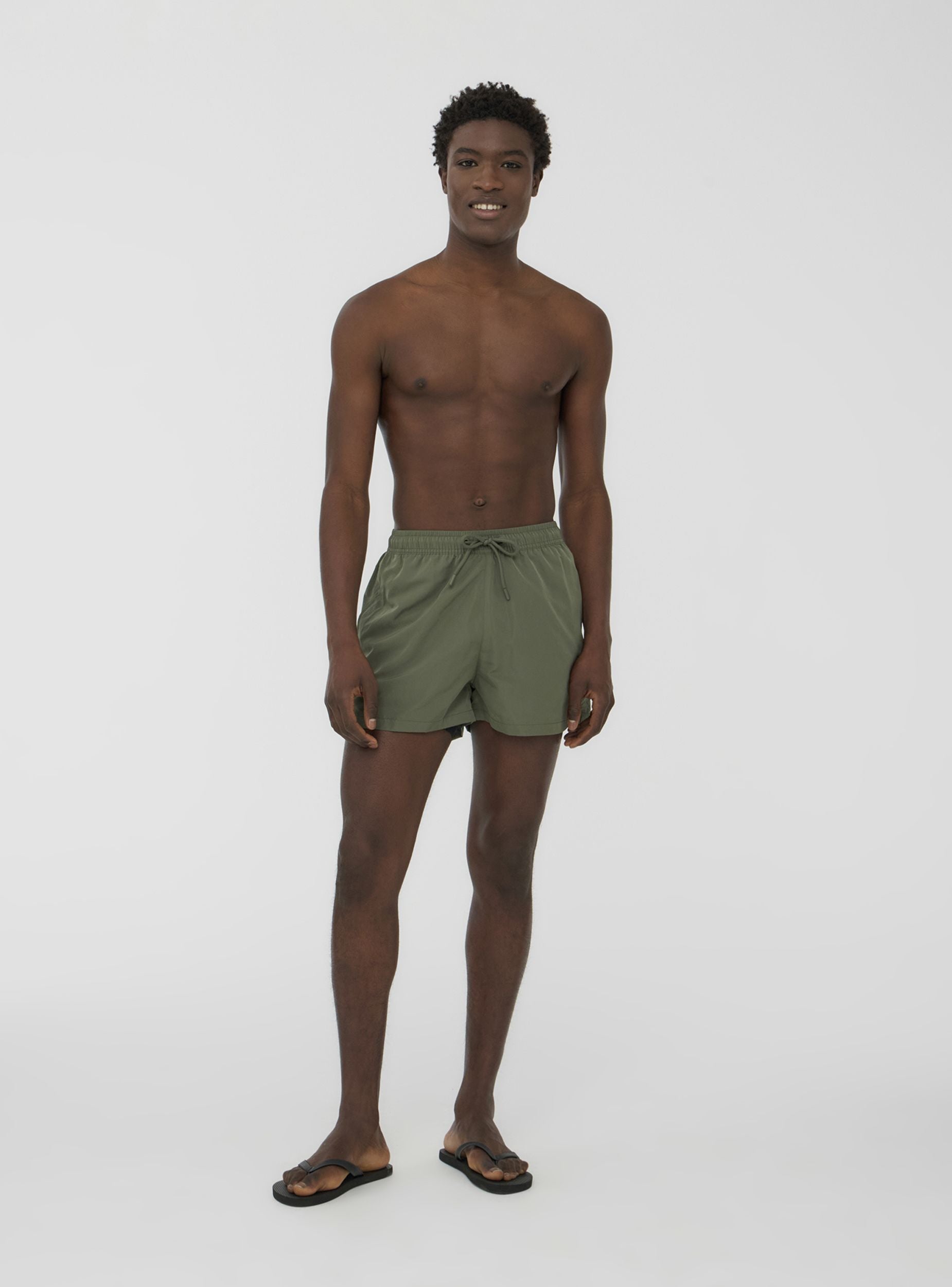 Идеалният мъжки костюм за лято, изпълнено с комфорт и стил на плажа или в басейна. Дизайнът с къси бермуди осигурява максимална свобода на движение, докато регулируемата връзка гарантира перфектно прилягане. Едноцветният цвят го прави универсален, идеален за съчетаване с тениска и сандали. Снабден е с странични джобове и един заден джоб с велкро за удобство и функционалност.