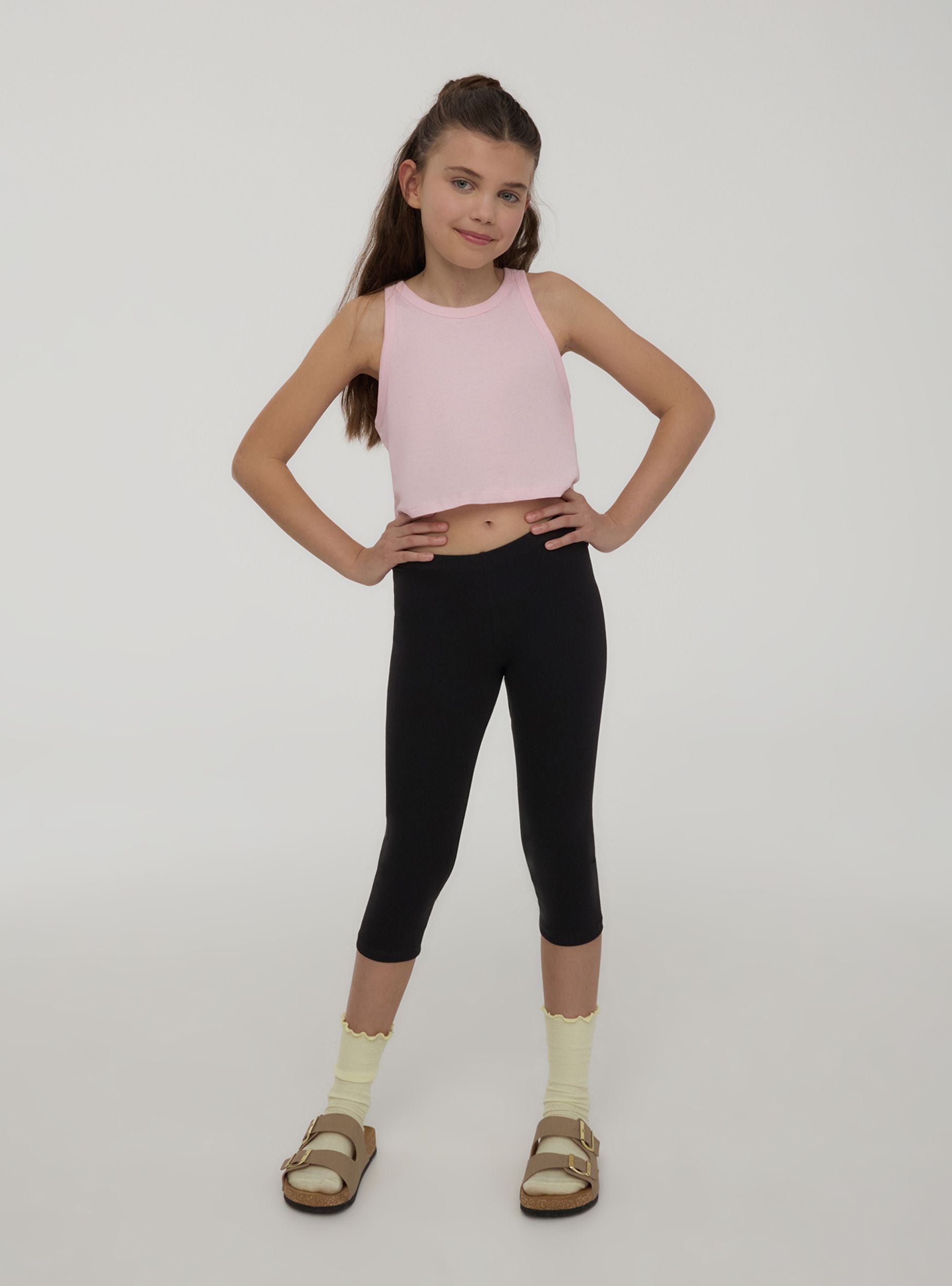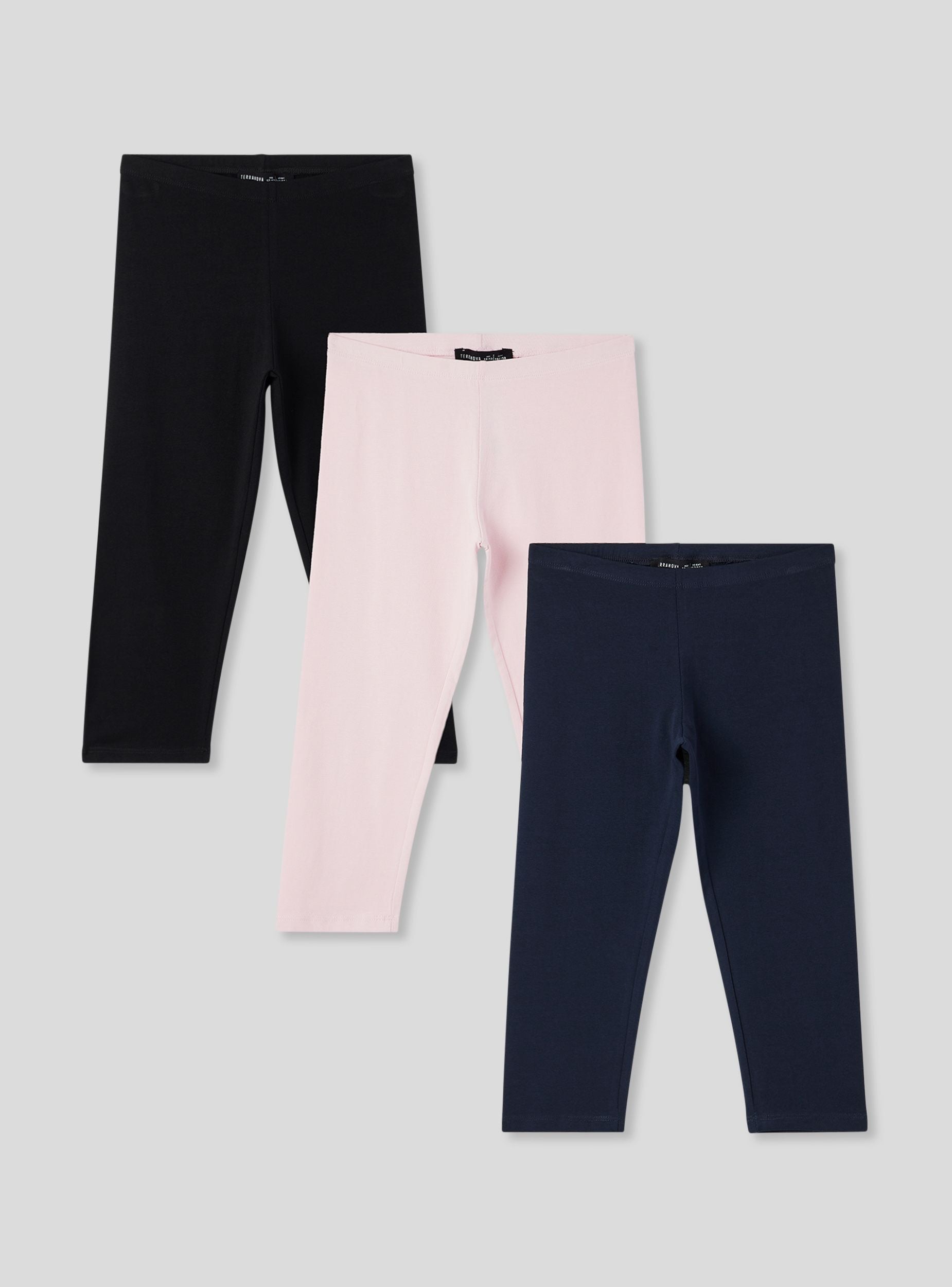 Комплект от 3 детски легинси, идеални за свободното време или ежедневни дейности. С дизайн до три четвърти и еластична кройка, те осигуряват комфорт и свобода на движение. Едноцветният им вид ги прави универсални и лесни за комбиниране, перфектни за създаване на практични и удобни аутфити за всякакви поводи.Детайли