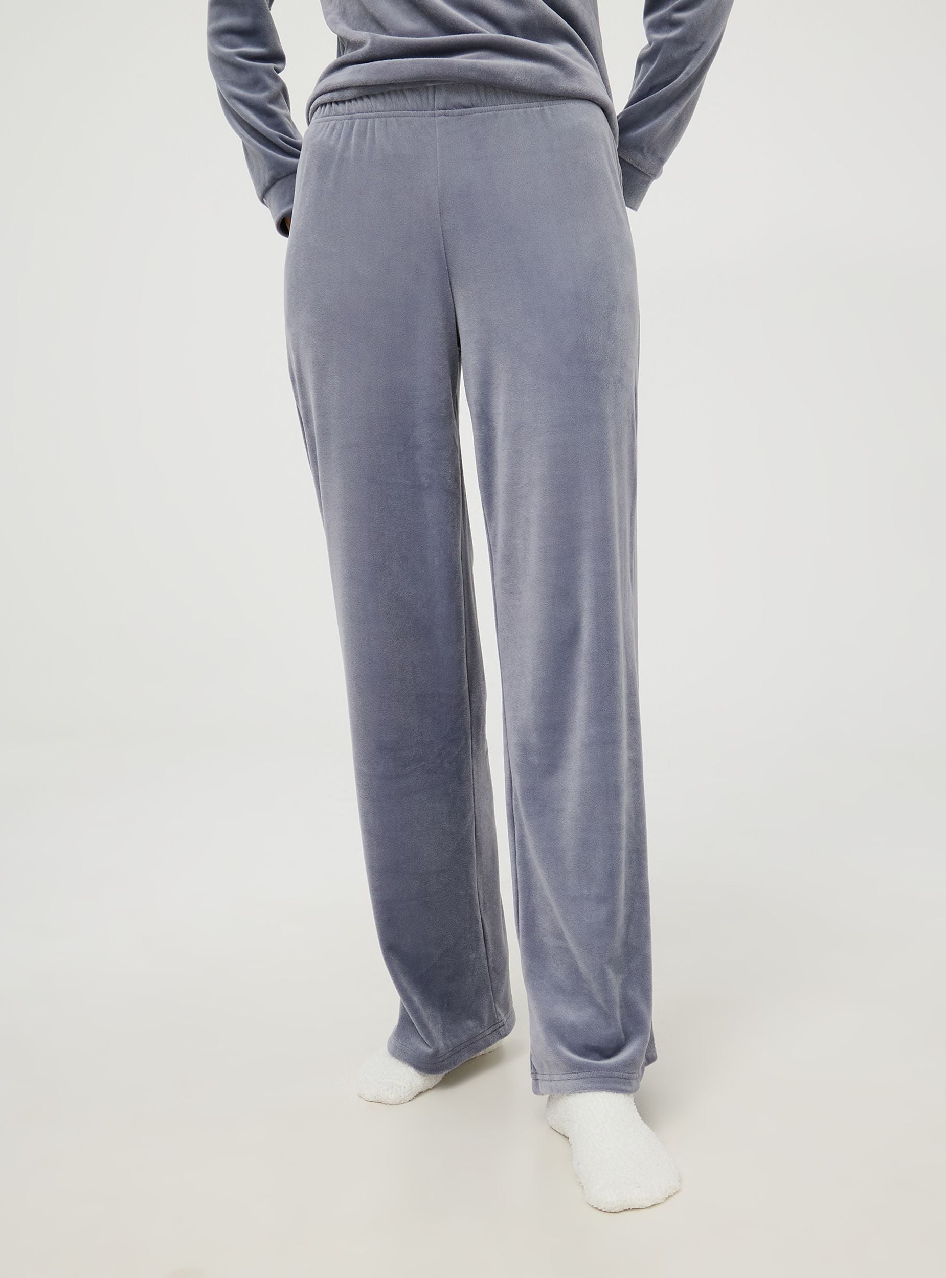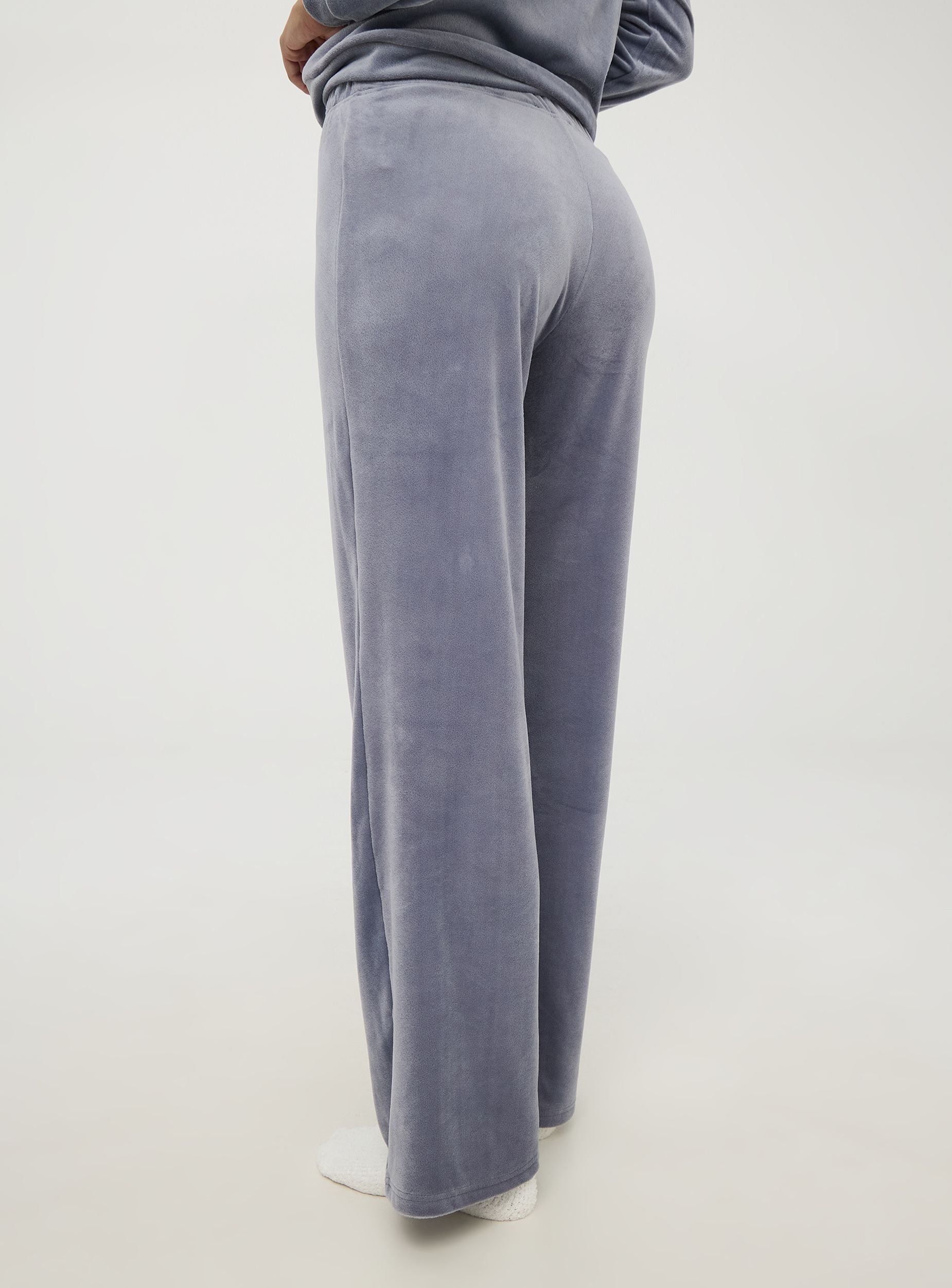 Панталони за пижама за жени от велур в едноцветен цвят. Предлагат елегантен и удобен дизайн. Характеризират се с широк и свободен кройка, с еластична талия за по-голямо удобство.Детайли