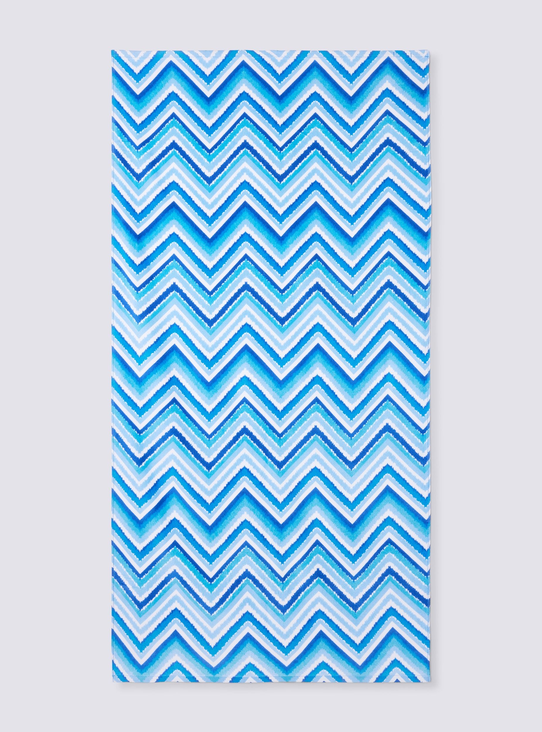 Плажно кърпа за жени с шевронен мотив, дизайн на зиг-заг, който добавя модерен и стилен акцент на вашите летни аксесоари. Перфектна за дни на плажа или край басейна. Геометричният модел придава динамичен визуален ефект, правейки я задължителна за тези, които обичат да се отличават с елегантност дори в моментите на релакс. Размери: 80смx160см.Детайли