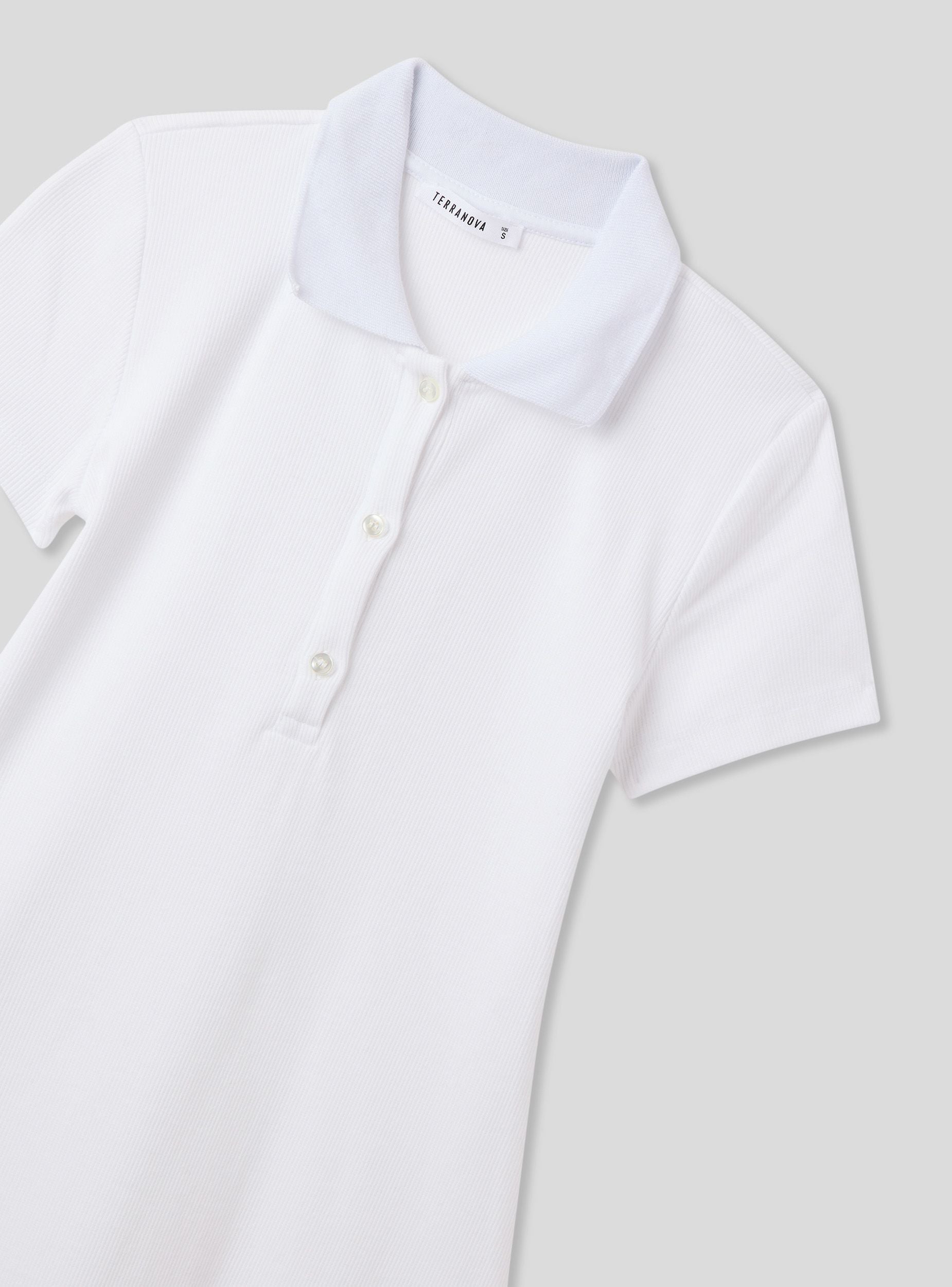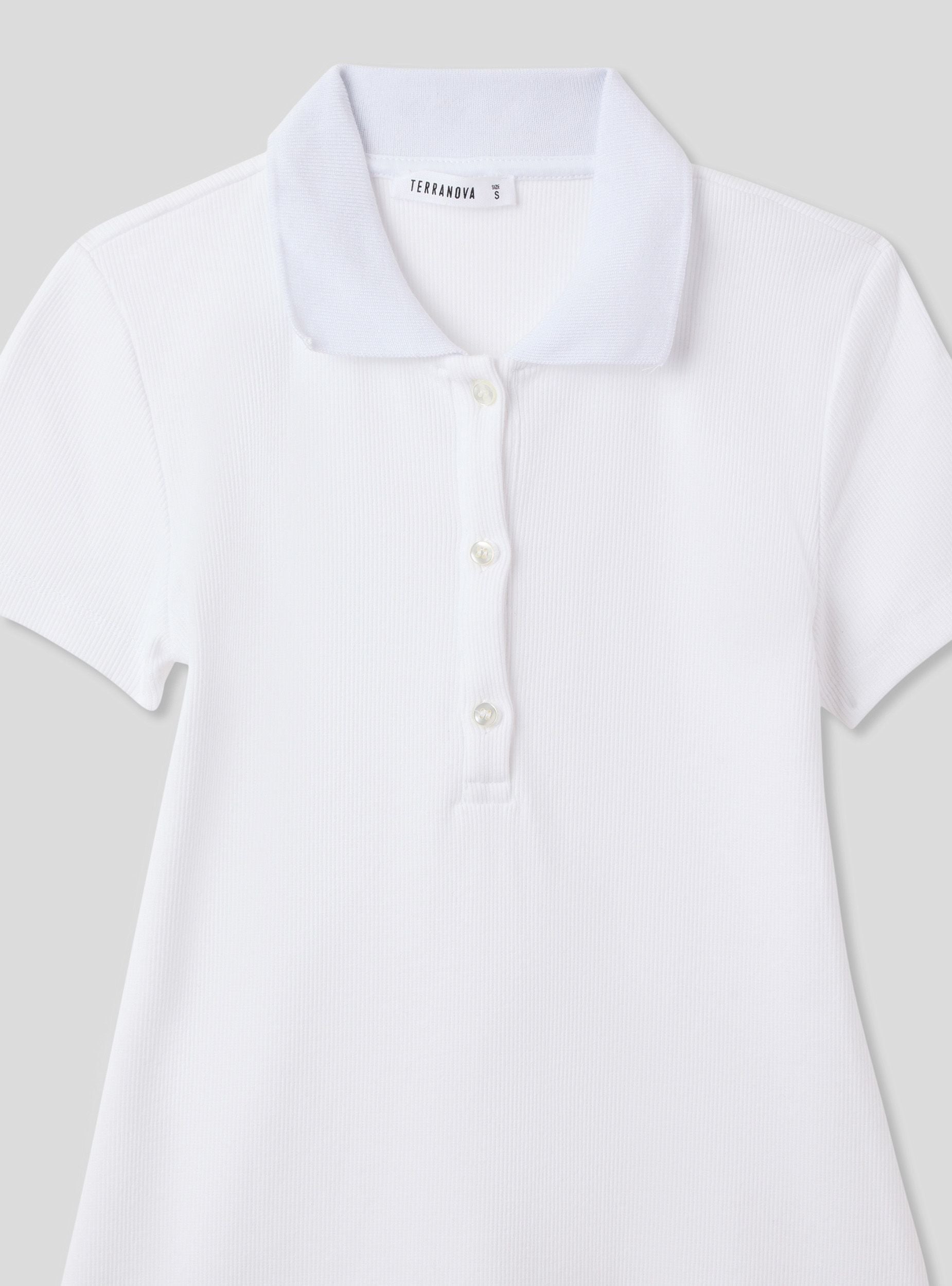 Женска рокля, идеална за неформален и универсален вид. Характеризира се с удобна кройка, разполага с дизайн с поло яка, къси ръкави и копчета отпред. Изработена е от едноцветен райе. Основен елемент за тези, които търсят комфорт и стил при всякакъв повод.Детайли