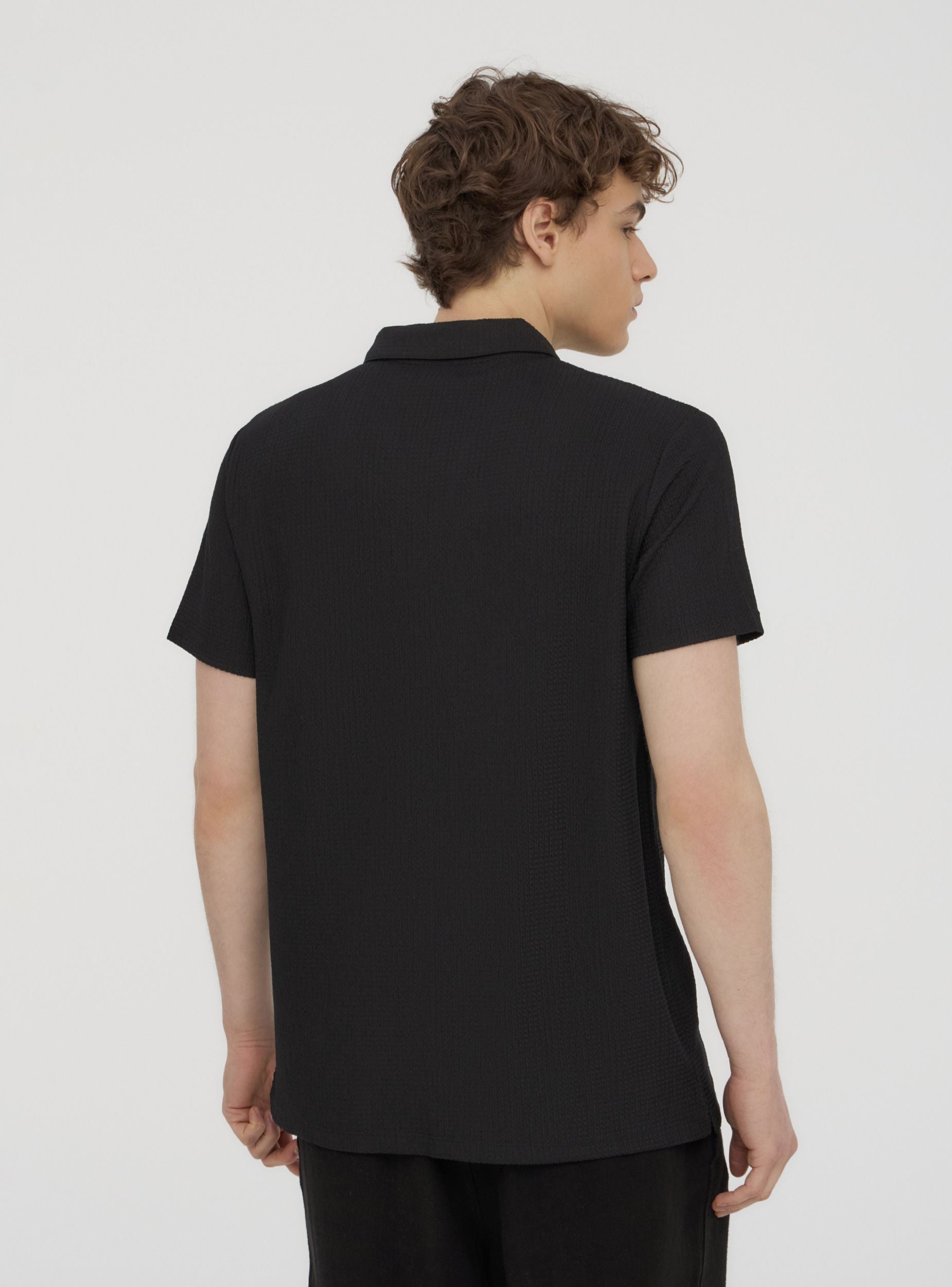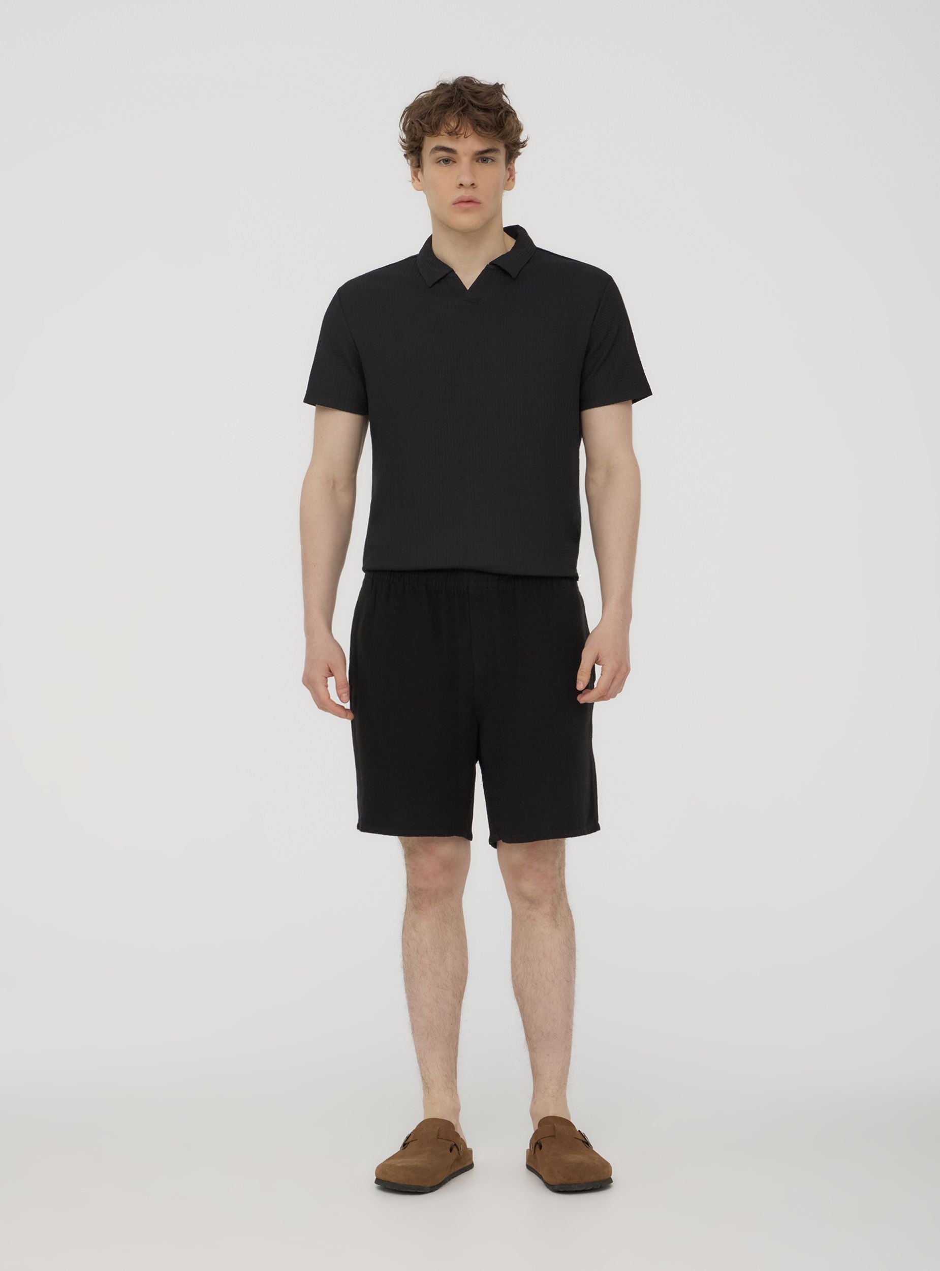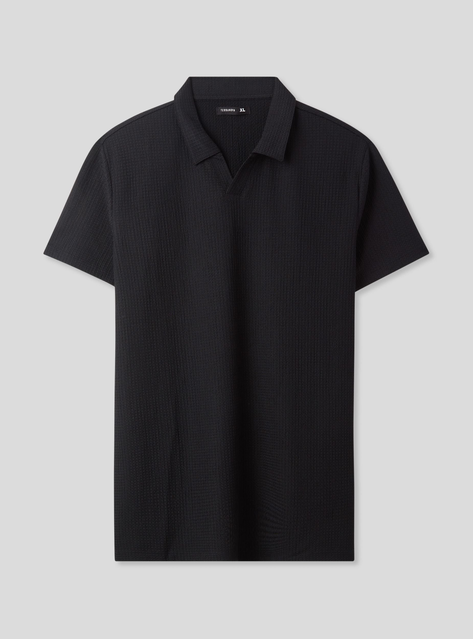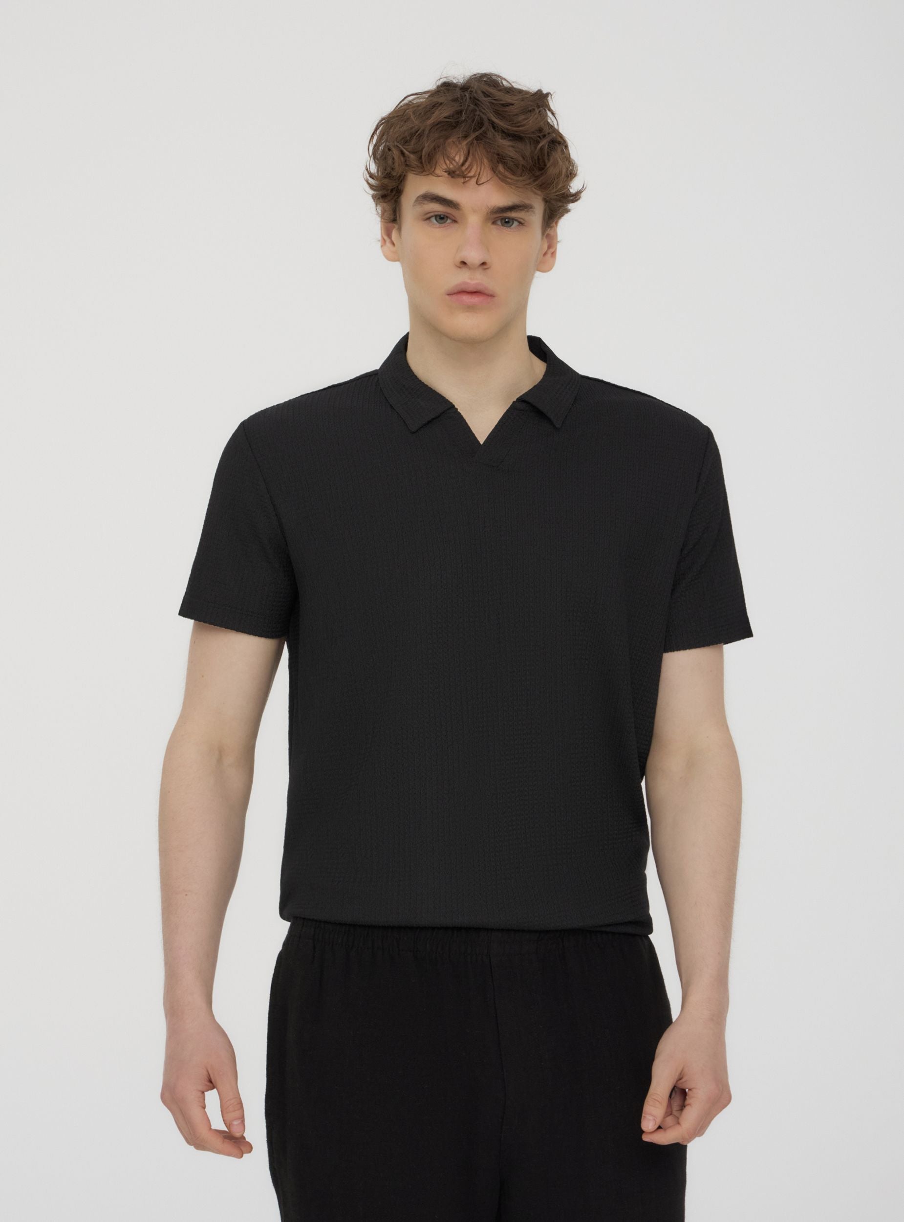 Мъжка тениска с къс ръкав и поло яка без копчета в едноцветен дизайн. Перфектна за неформален вид, идеална за свободното време, неофициална работа или вечерни излизания. Лесно се съчетава с дънки, чино или бермуди, предлагайки универсалност и стил. Минималистичният дизайн с отворена яка добавя нотка на спортна елегантност, правейки я основен елемент за всеки гардероб.Детайли
