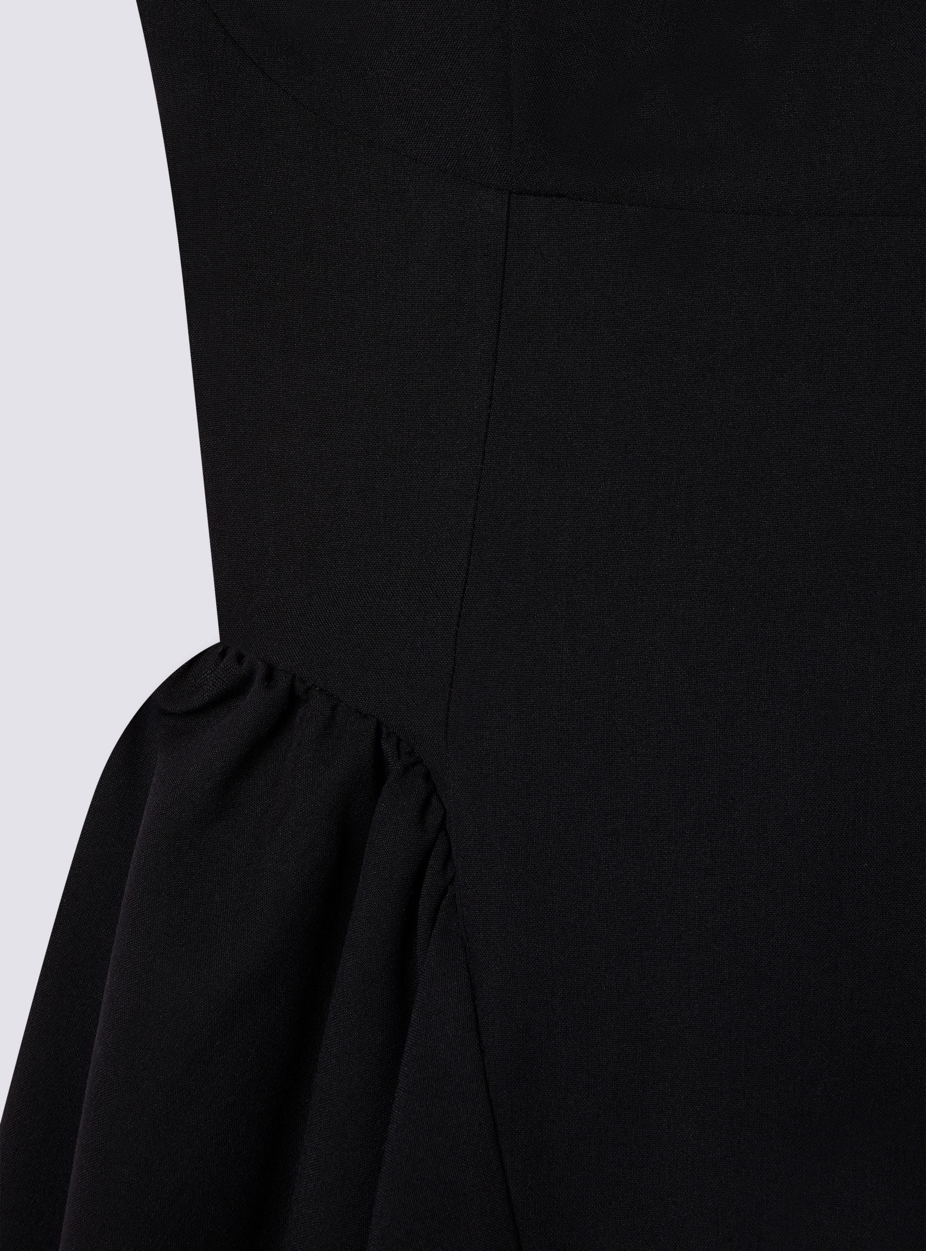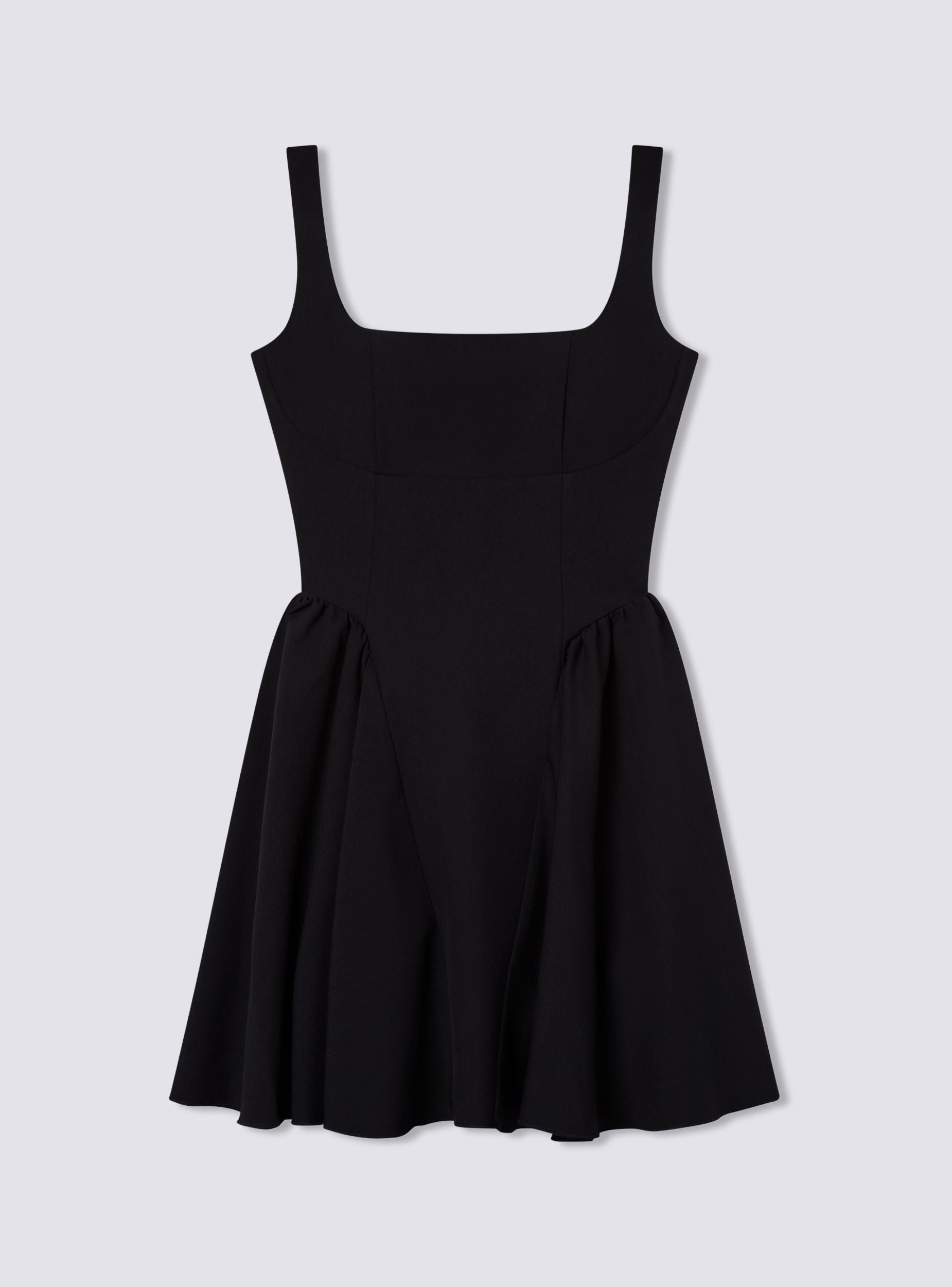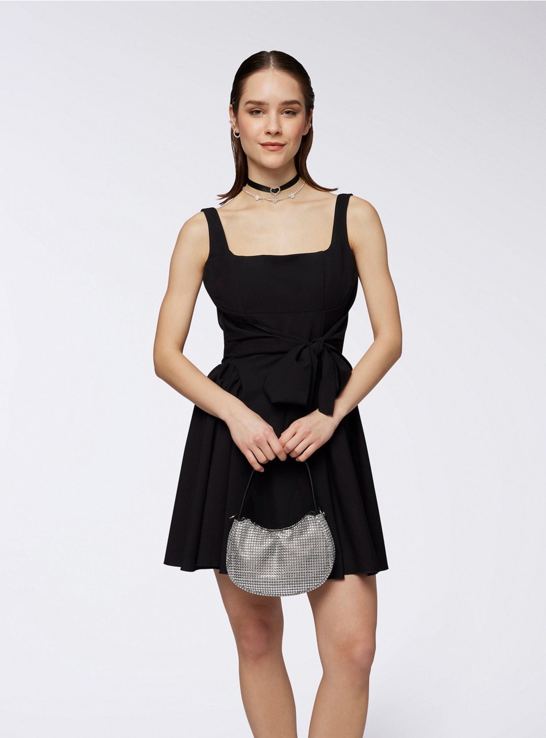 Дамска рокля в едноцветен стил, вдъхновена от кукли, характеризираща се с къса дължина и младешки, женствен дизайн. Има квадратно деколте, което подчертава бюста, завършено с вътрешни чашки за структуриран ефект. На гърба, панделка добавя декоративен и романтичен детайл. С практичен скрит цип. Тази рокля е предназначена за специални или елегантни поводи, предлагайки изтънчен и игрив вид едновременно.Детайли