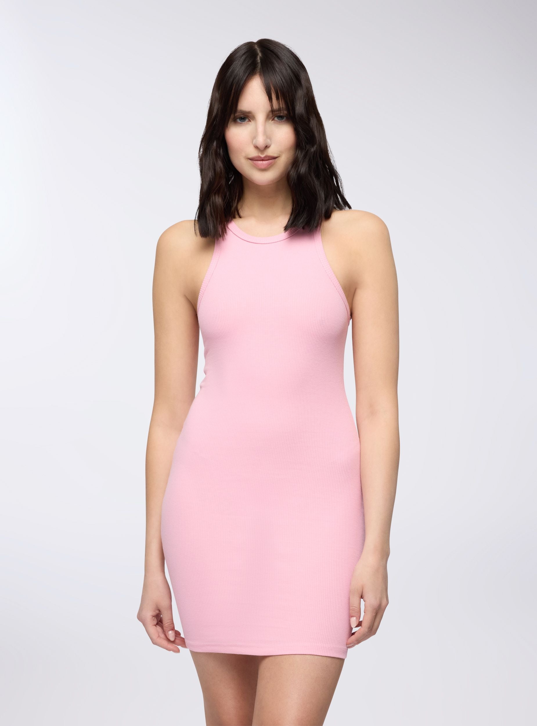 Къса дамска рокля с едноцветен дизайн и американско деколте, перфектна за неформален и модерен вид. Рибената структура подчертава силуета, което я прави идеална за свободно време или неофициално излизане. Лесно се комбинира с маратонки за спортен вид или с сандали за по-женствено излъчване. Основна част от гардероба за летния сезон, универсална и удобна.Детайли