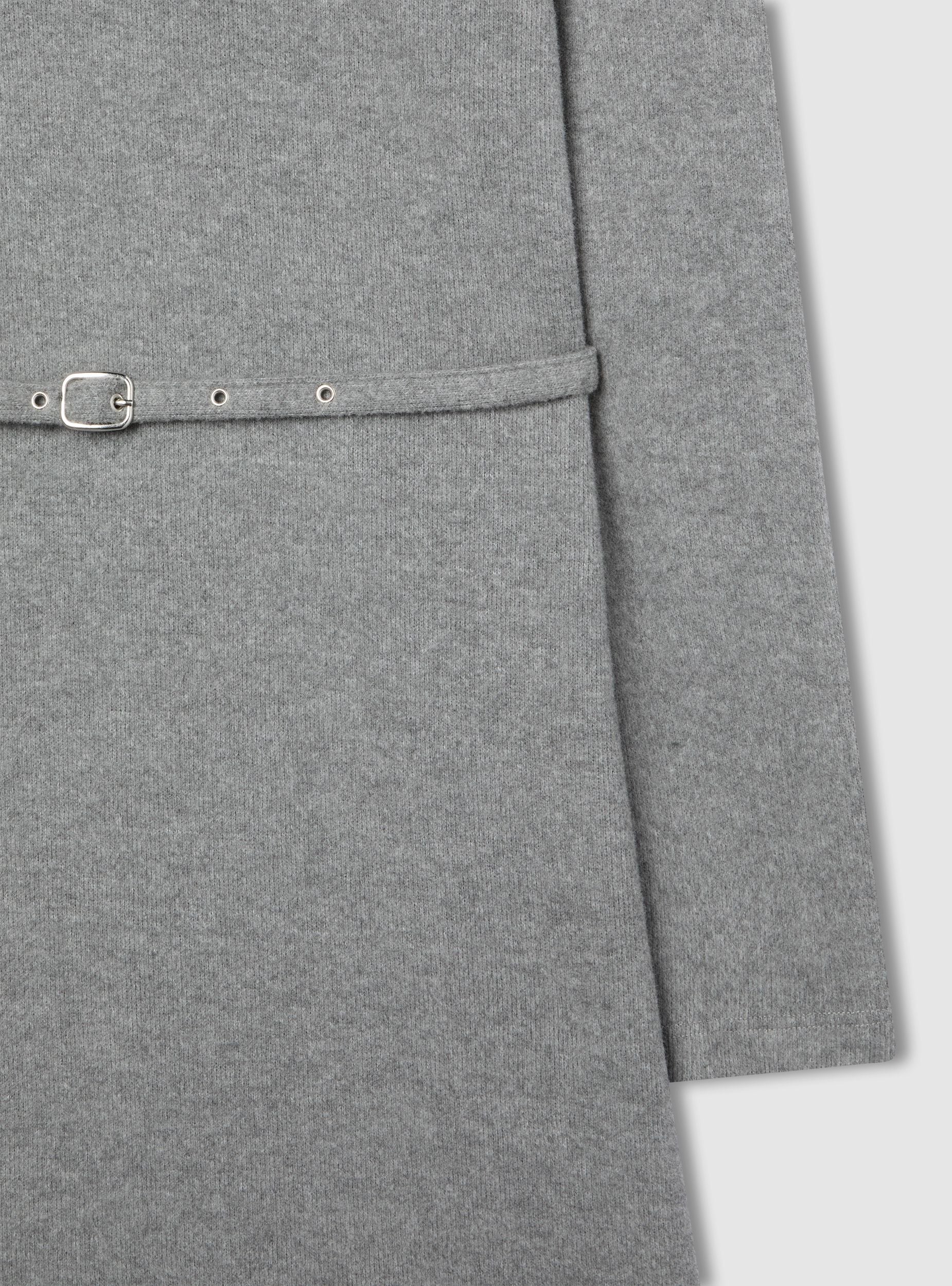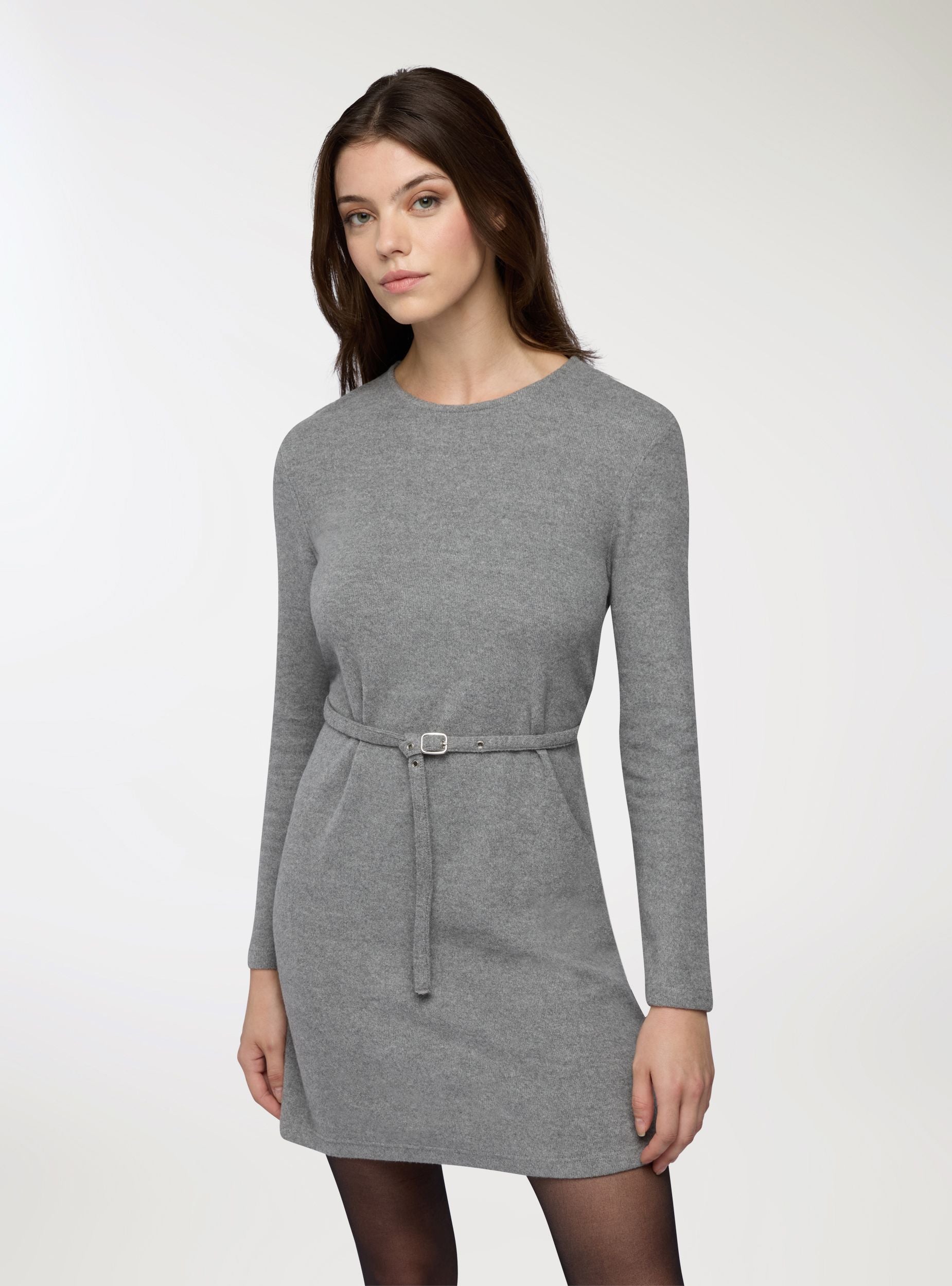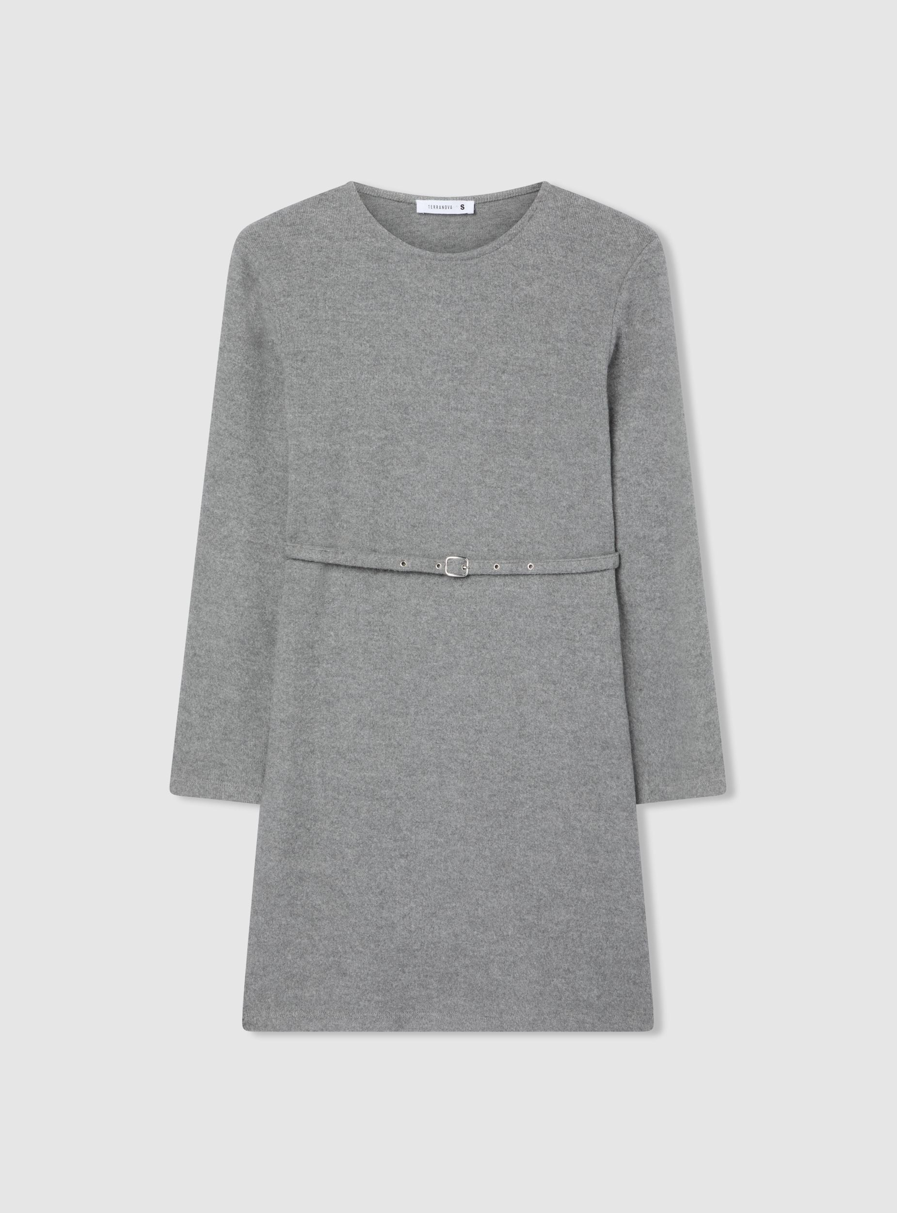Едноцветна дамска рокля, идеална за офиса и свободното време. Редовно прилягане с дължина над коляното, изчистена кръгла яка и дълги ръкави. Тънък колан с катарама на талията за оформяне на силуета. Лесна за съчетаване с боти или кецове. Перфектна под палто или късо сако през междинните сезони. Дизайн в едноцветен, изчистен и универсален стил, без джобове и с права линия.