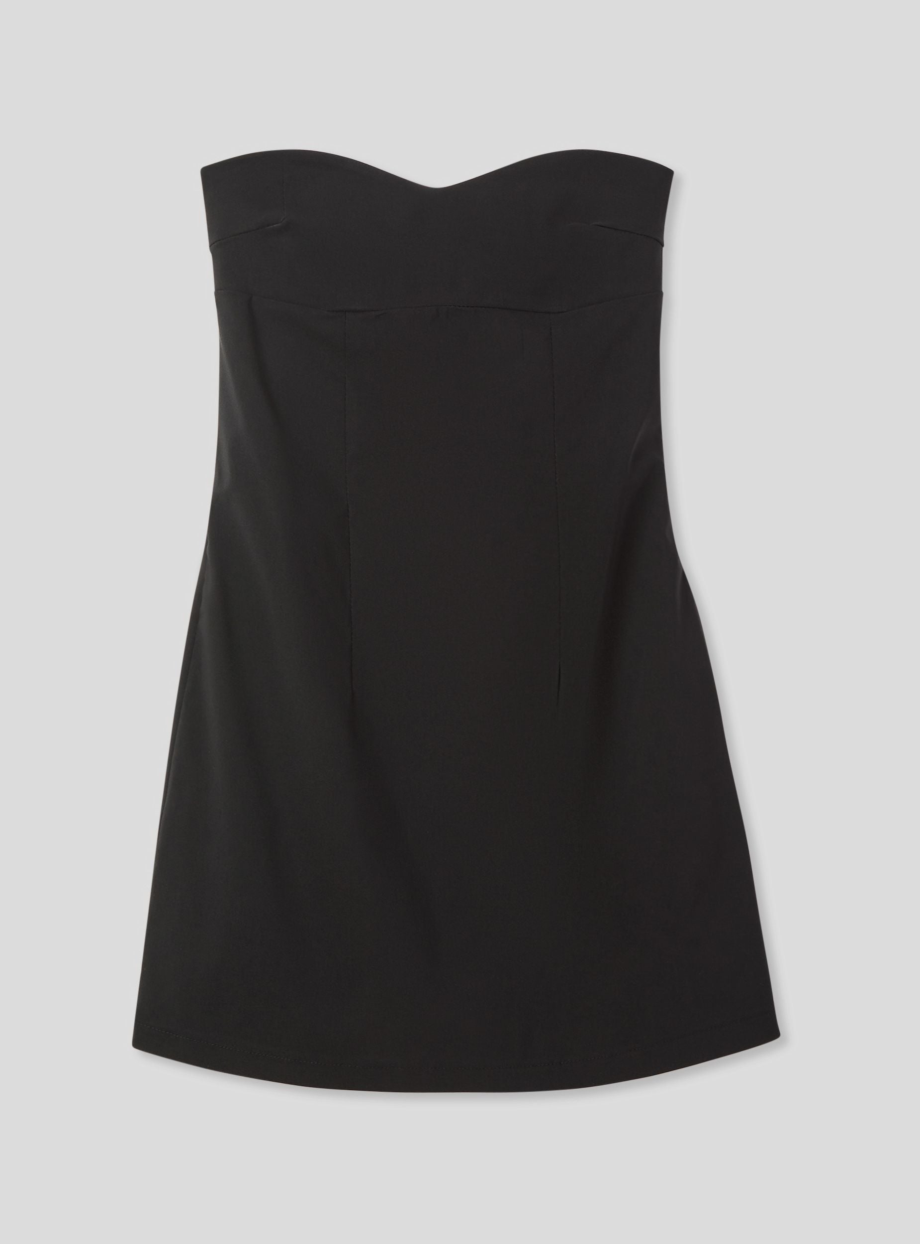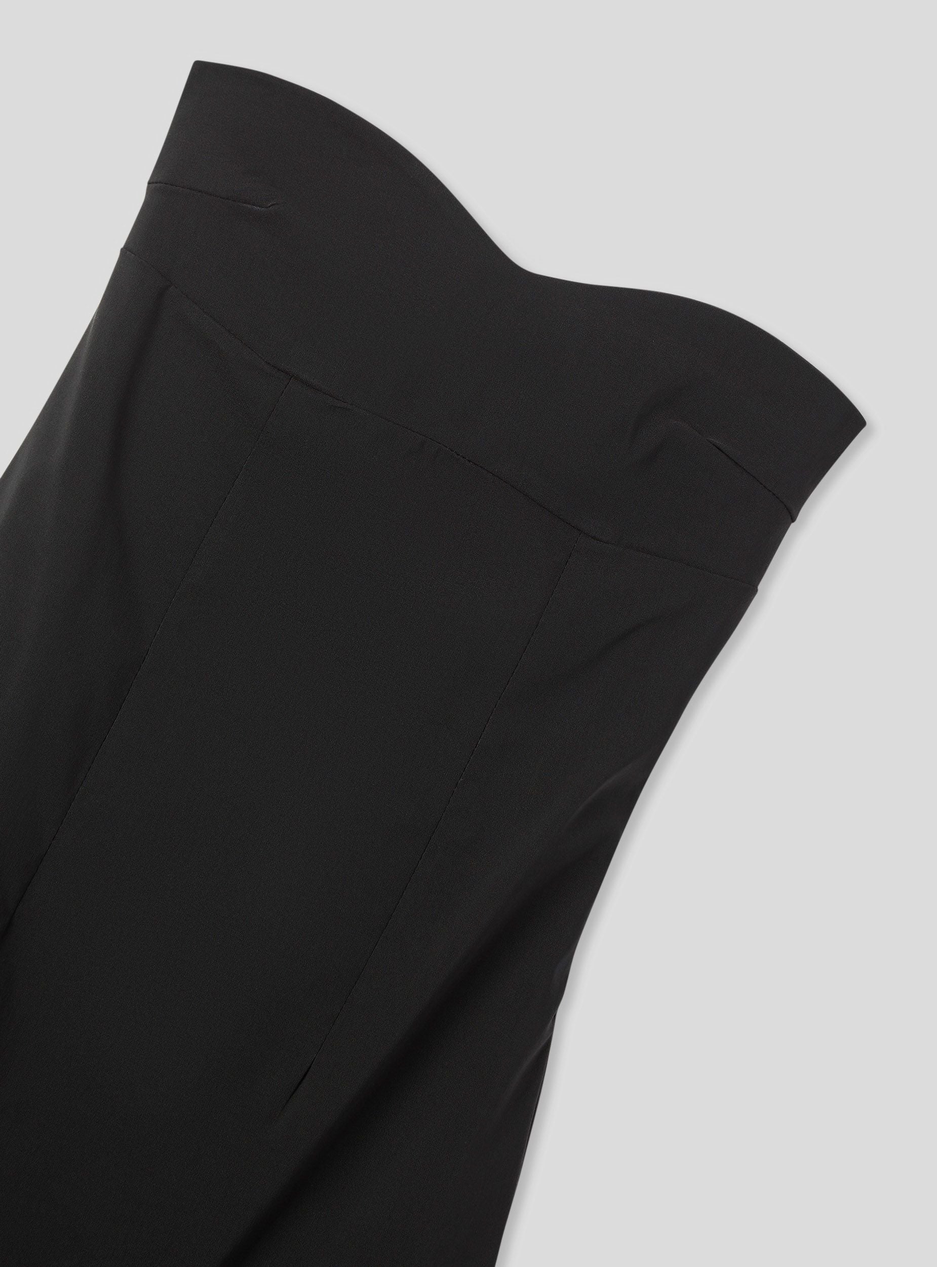 Дамска рокля, идеална за специални поводи и елегантни вечери. Характеризира се с разкроена кройка и без презрамки с деколте на сърце, предлагаща изискан и женствен вид. Еластична материя в едноцветен цвят. Перфектна за съчетаване с високи токчета и изискани аксесоари за стилен и класен аутфит.Детайли