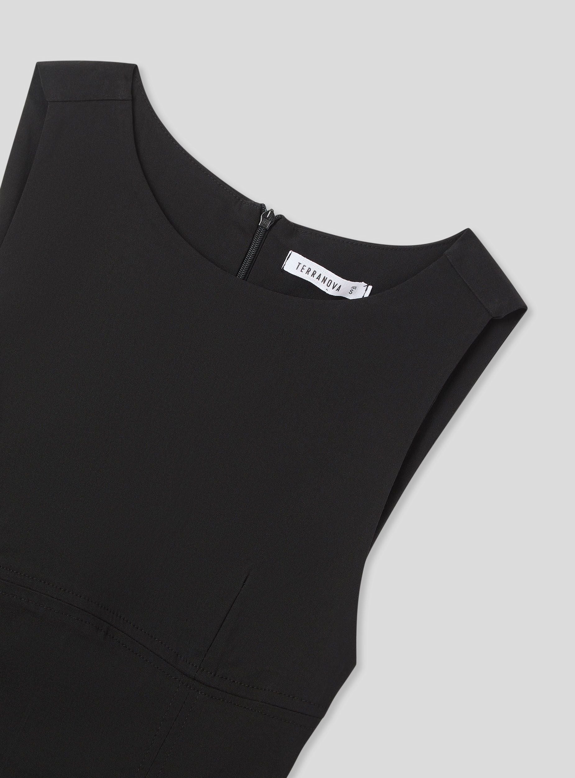 Елегантна и изискана дамска рокля, перфектна за подчертаване на силуета благодарение на тубата и бенгалиновата материя, която осигурява комфортно и прилепнало прилягане. Идеална за формални поводи, вечерни събития или бизнес срещи, тя перфектно се комбинира с структурирани блейзери и високи токчета за изискан вид или с маратонки и кожено яке за по-съвременен акцент.Детайли
