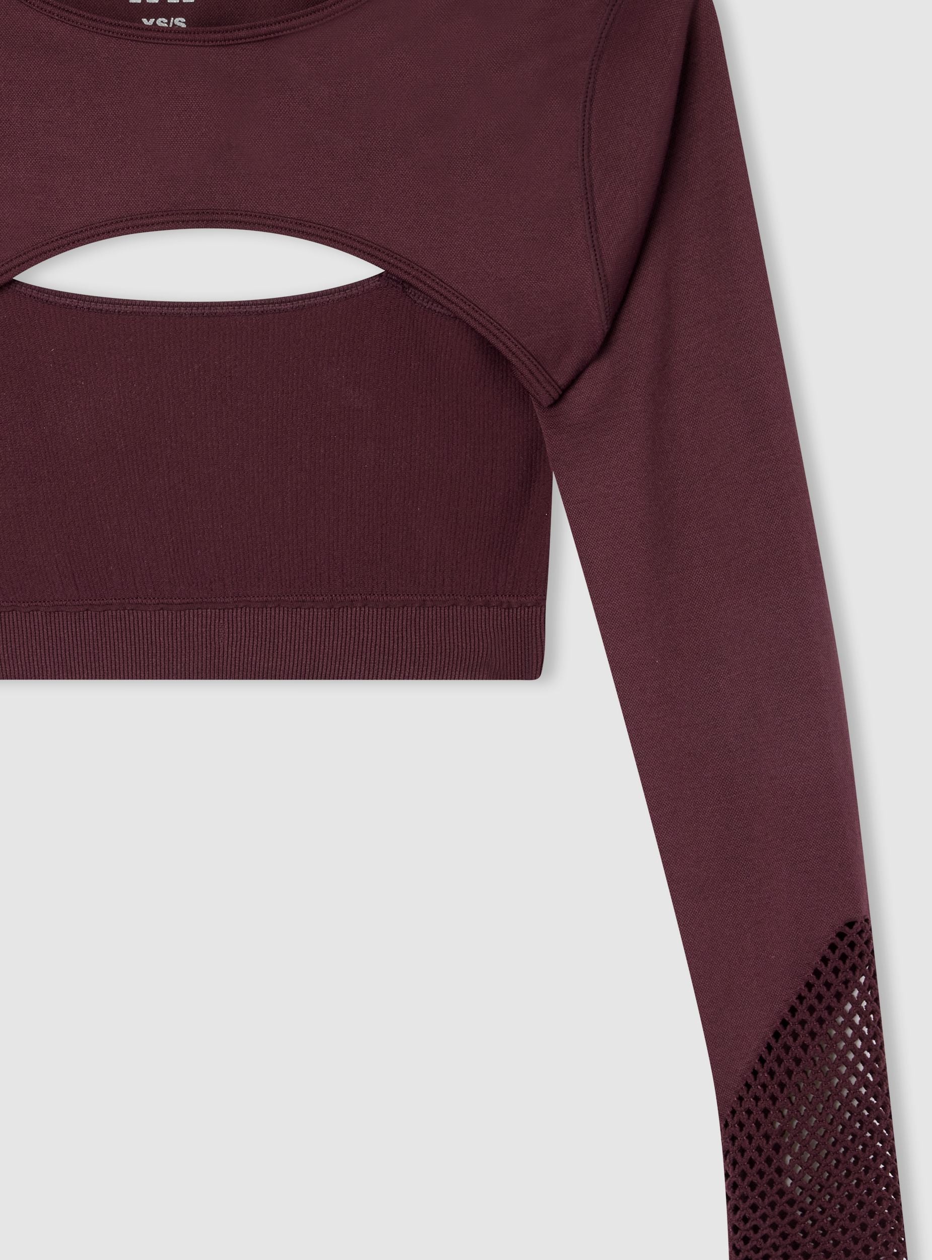 Дамска блуза с дълъг ръкав, идеална за спортен и динамичен вид. Разполага с модерен дизайн с предна цепка и мрежести детайли на ръкавите, които добавят уникален стил. Перфектна за съчетания с клинове или спортни панталони, осигурява комфорт и свобода на движение благодарение на прилепналата кройка и еластичната материя. Универсален артикул за спортни или ежедневни активности. Линия Active.