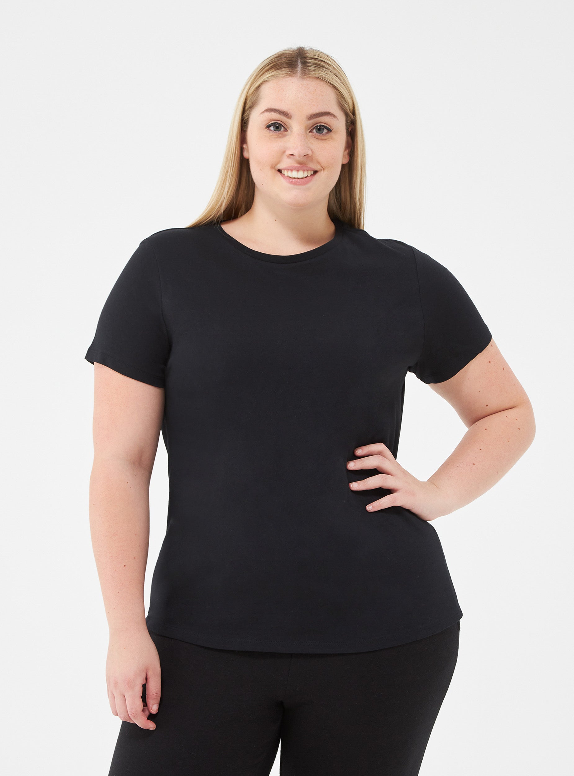 T-shirt da donna, modello girocollo con maniche corte. Realizzata in tessuto jersey. Vestibilità regular. Linea curvy.Детайли