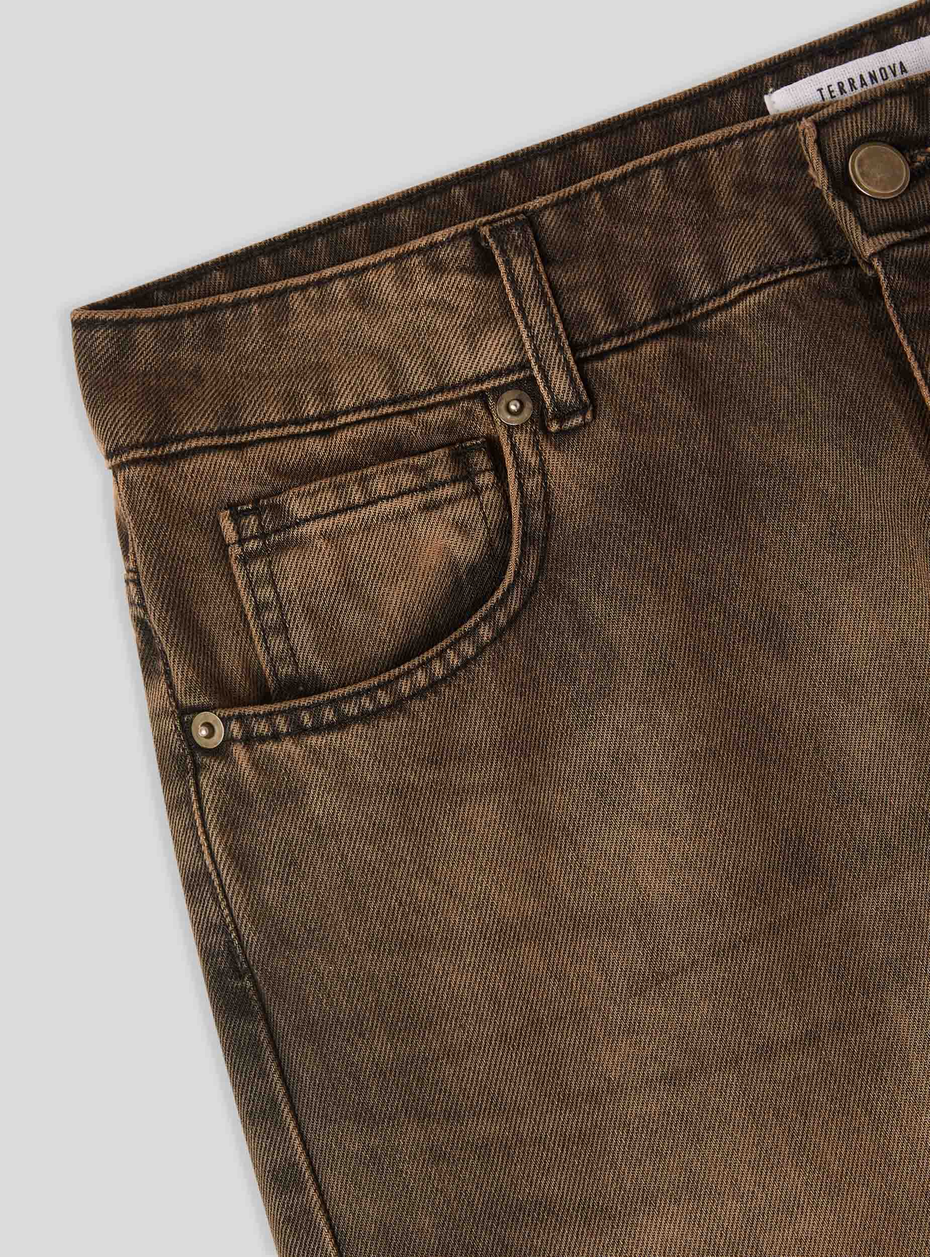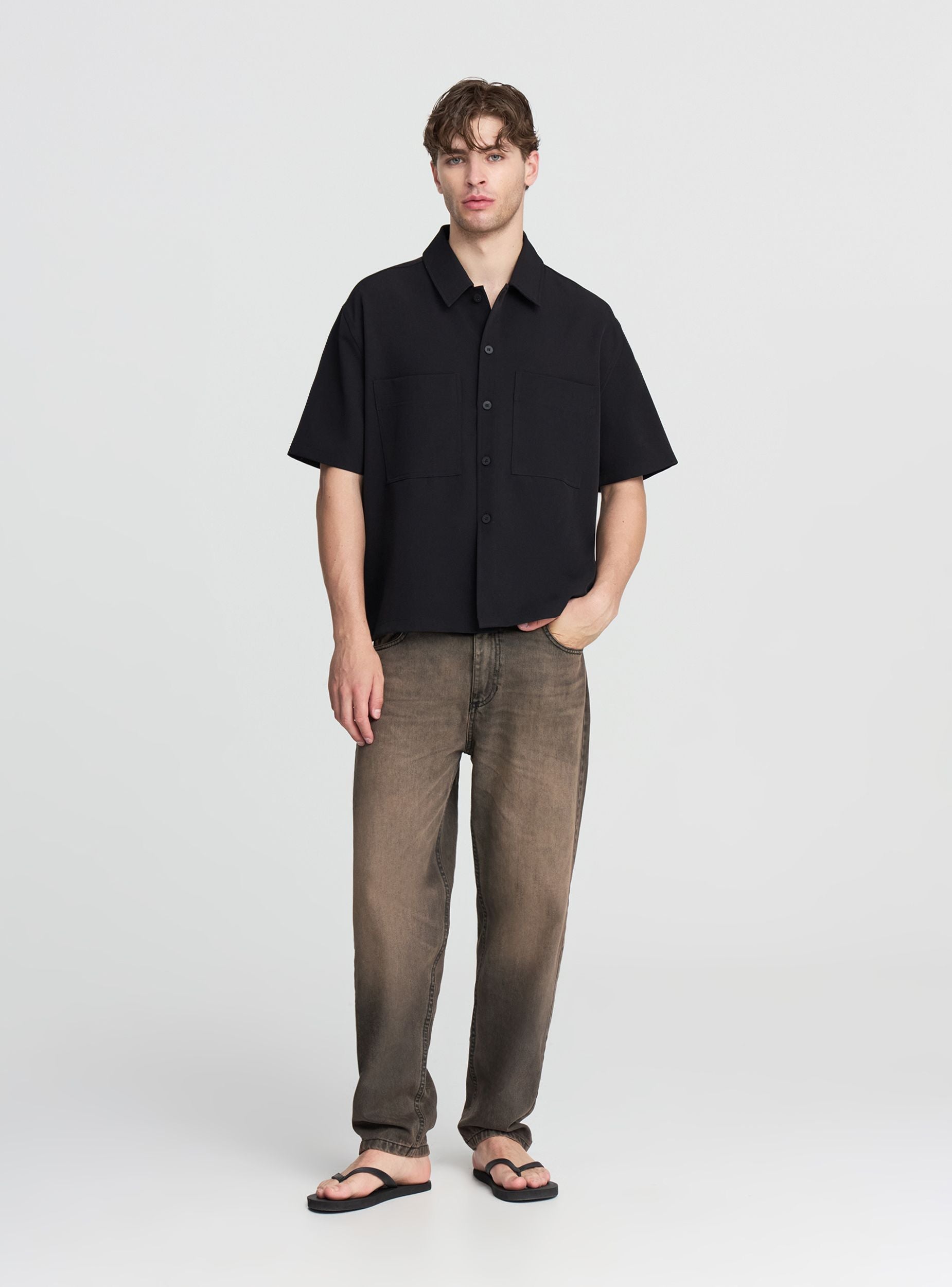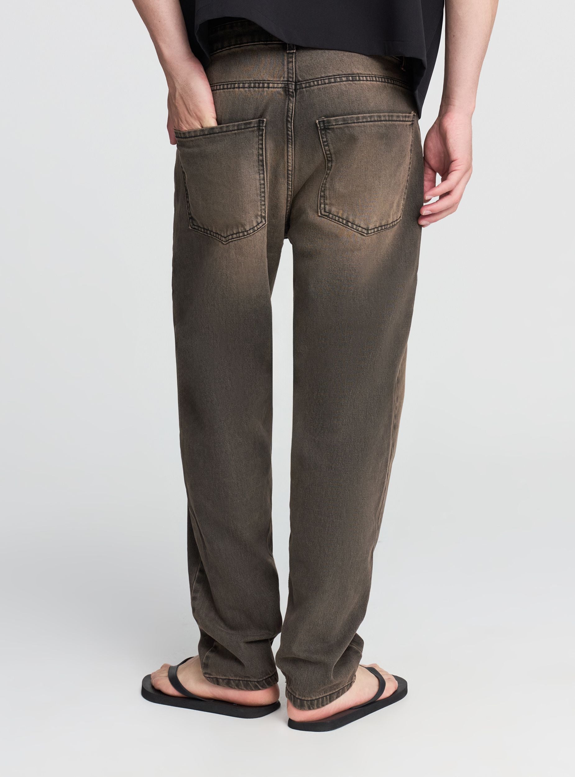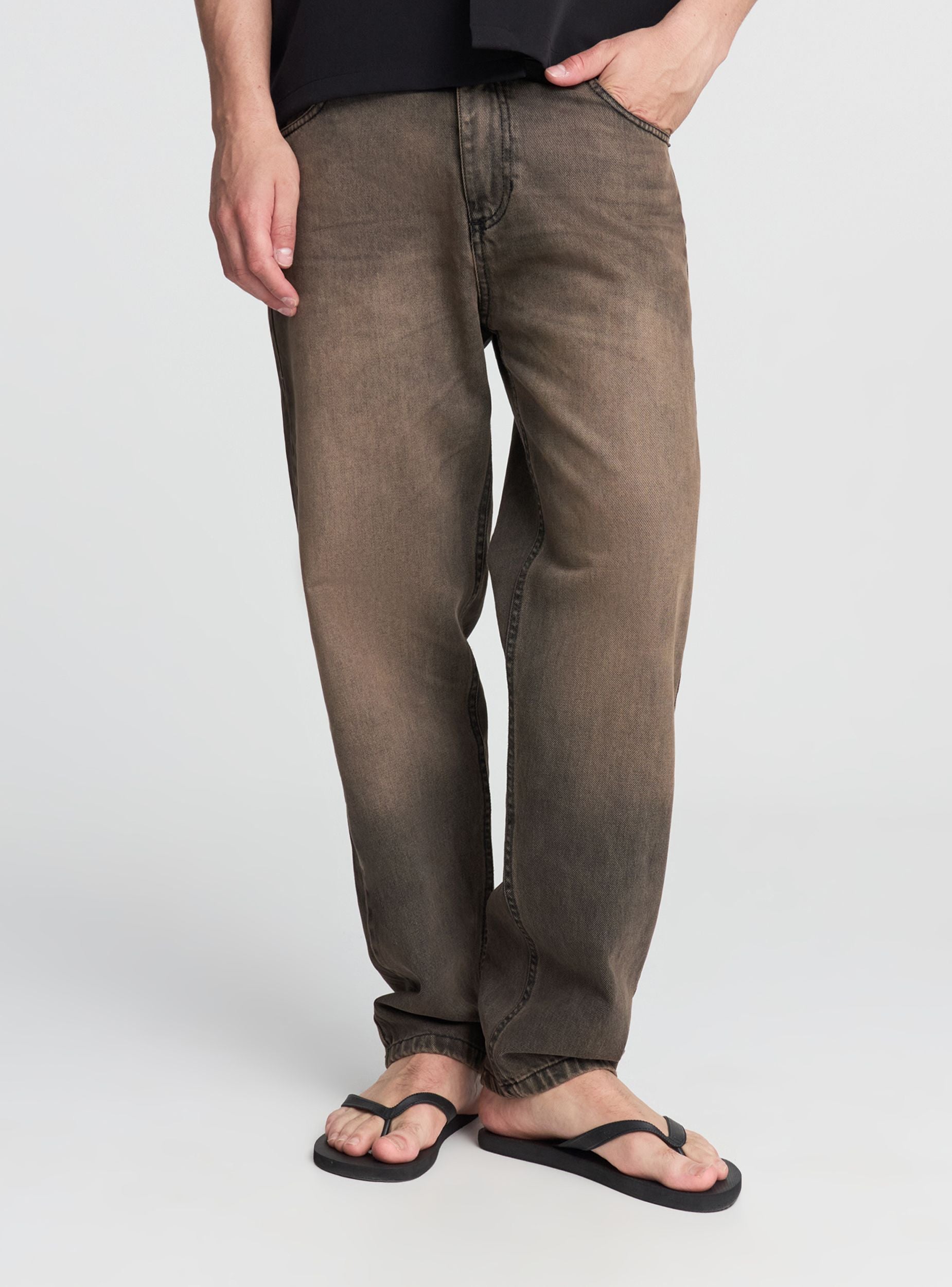 Мъжки дънки с широк кройка, идеални за модерен и неформален вид. Характеризирани с ефект на пренасищане, който придава оригинален акцент, те имат 5 джоба и удобна закопчалка с копчета и цип. Идеални за съчетаване с тениска и маратонки за небрежен аутфит или с оувърсайз суитчър за уличен стил. Подходящи за неформални и динамични поводи.Детайли