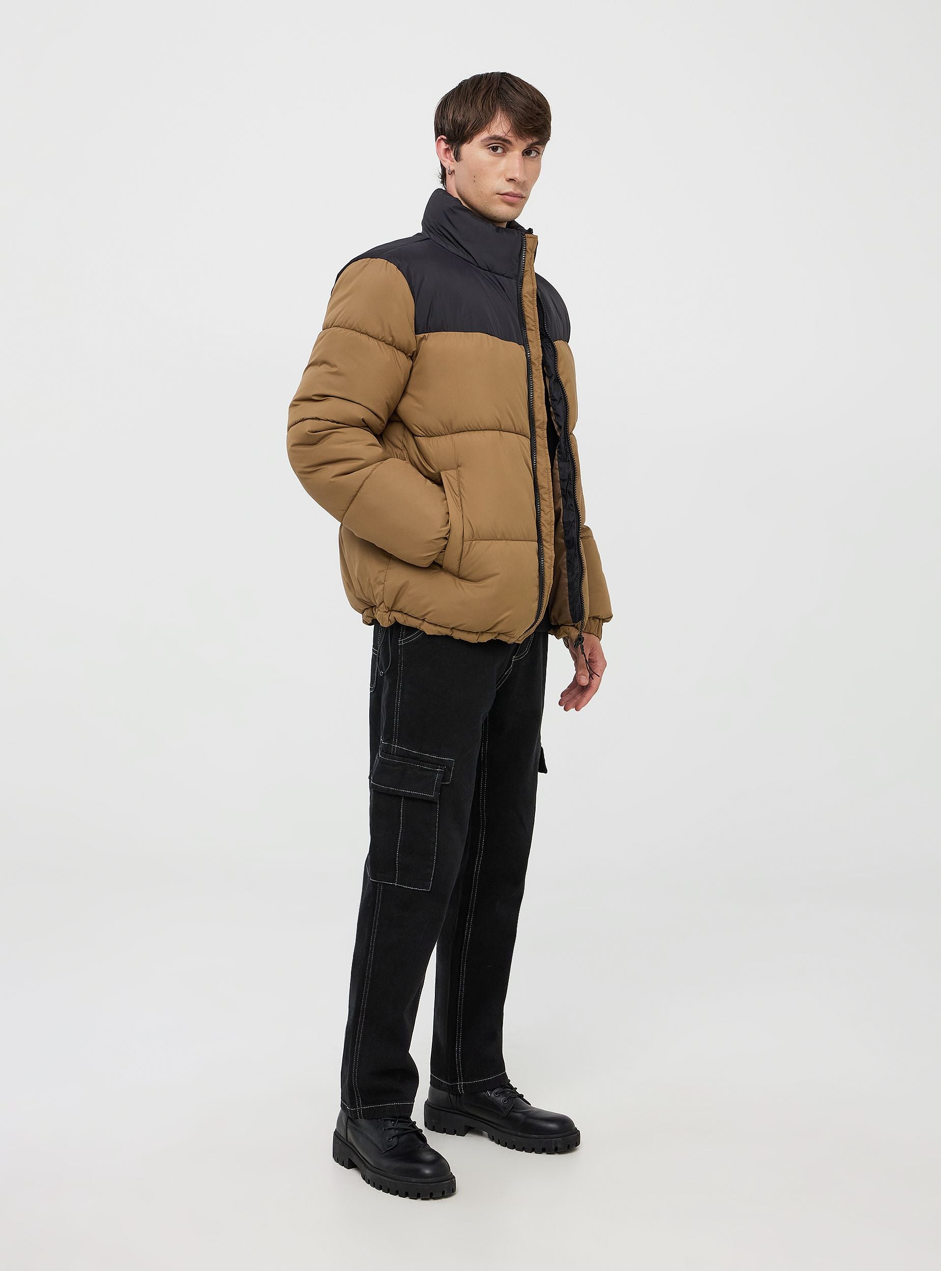 Мъжко яке, подплатено с плат в блок цветове. Предна закопчалка с цип, висок яка и еластични маншети за по-добра защита от студа. Разполага с два странични джоба с копче за максимално удобство. Идеално за небрежен аутфит през студените дни, перфектно за разходки в града или активности на открито. Благодарение на своя универсален дизайн, може да се комбинира с дънки и пуловери за небрежен и модерен вид.Детайли