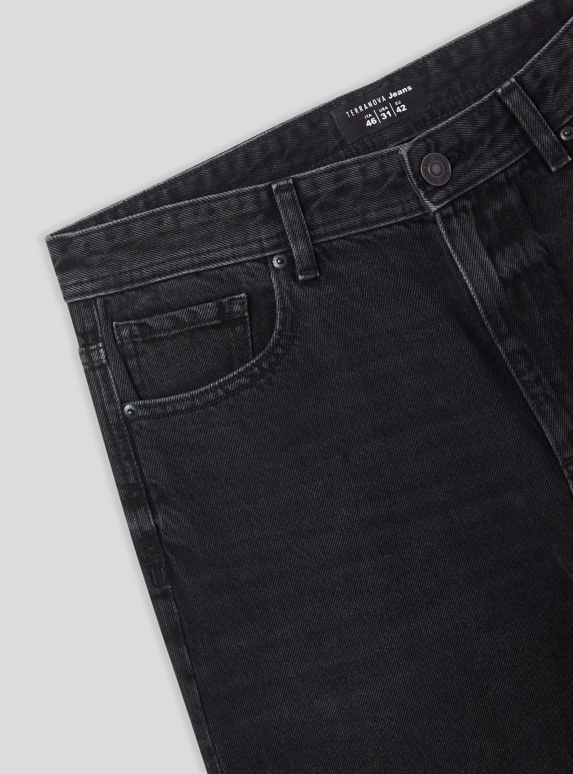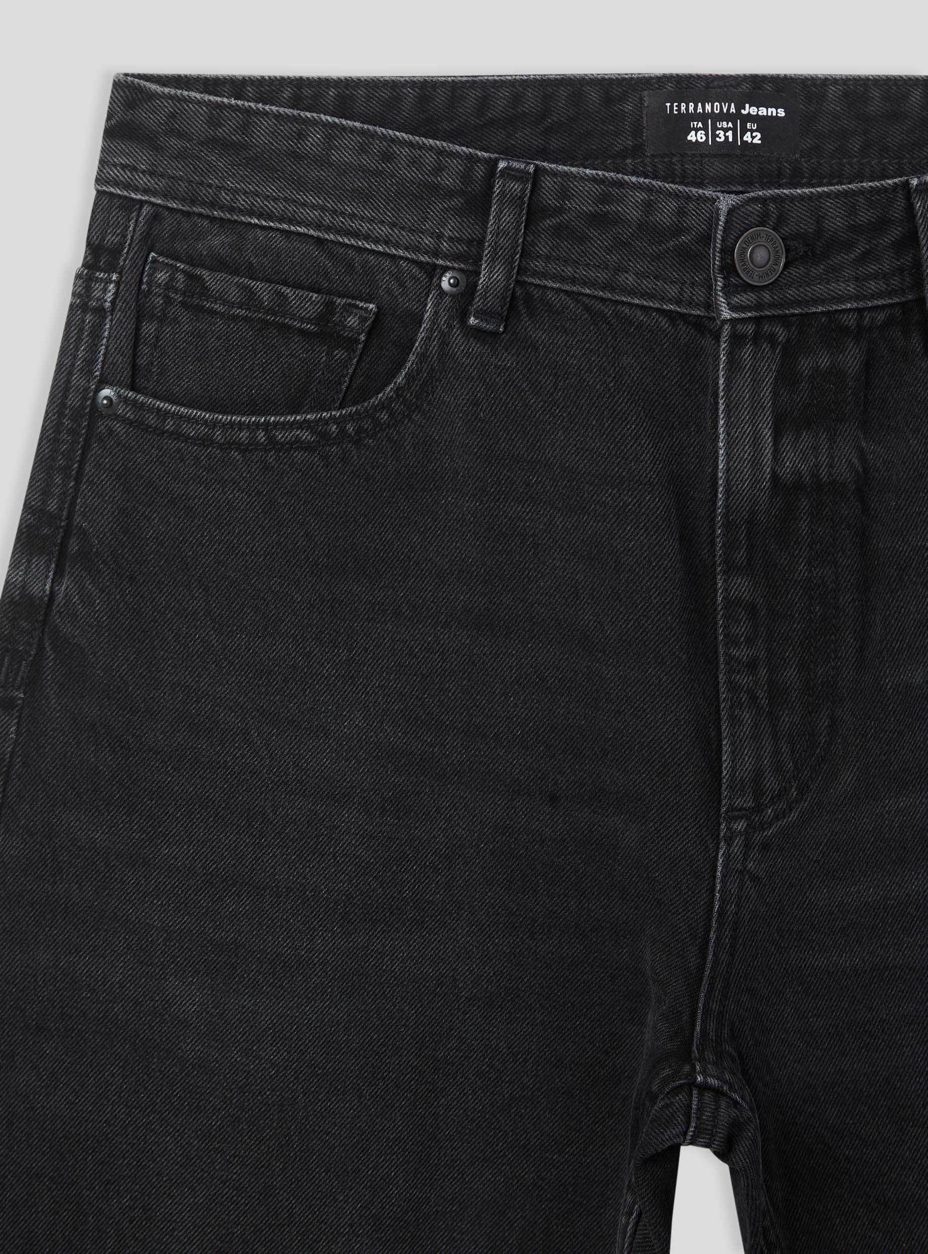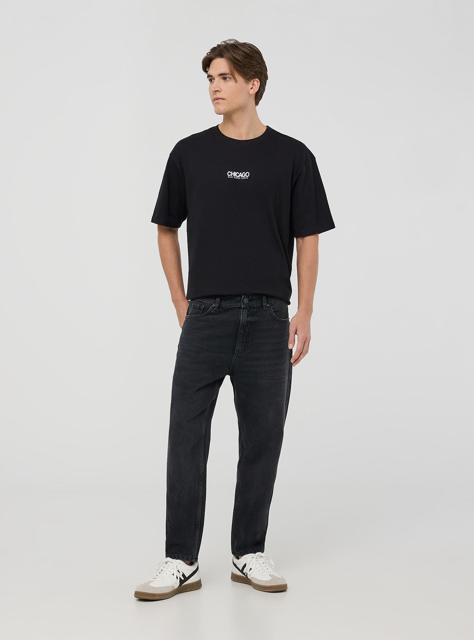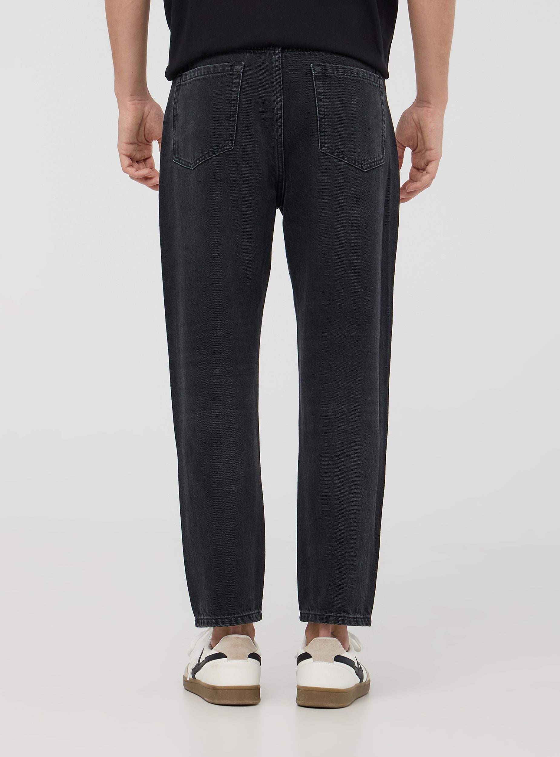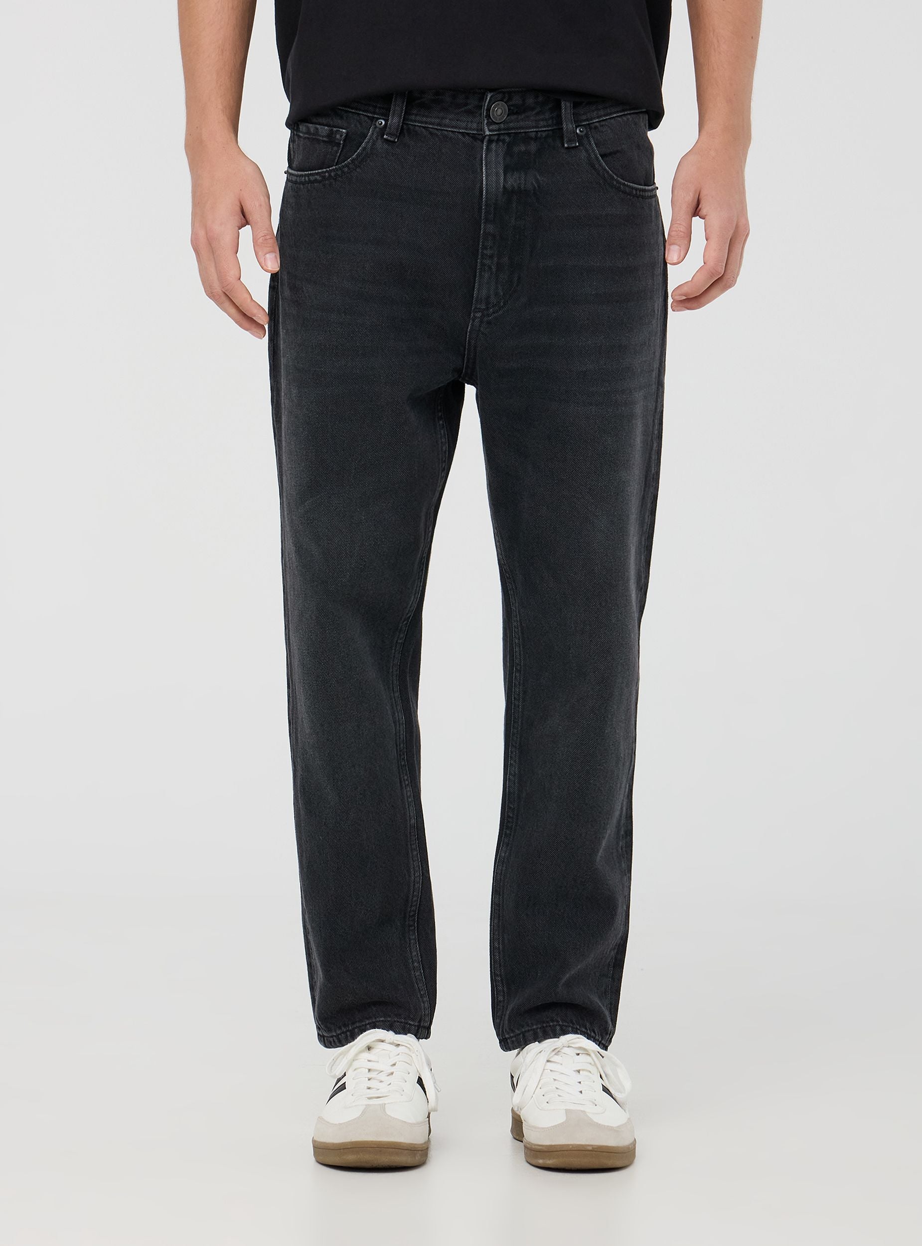 Мъжки дънки с релаксирана кройка, идеални за модерен и универсален вид. Характеризират се с колан за колан, пет функционални джоба и практично закопчаване с копче и цип. Отличават се с черен деним, който ги прави подходящи за всякакъв повод. Могат да се съчетаят с ризи и мокасини за стилен тоалет или с тениски и кецове за свободното време. Подходящи за неформални и ежедневни ситуации.