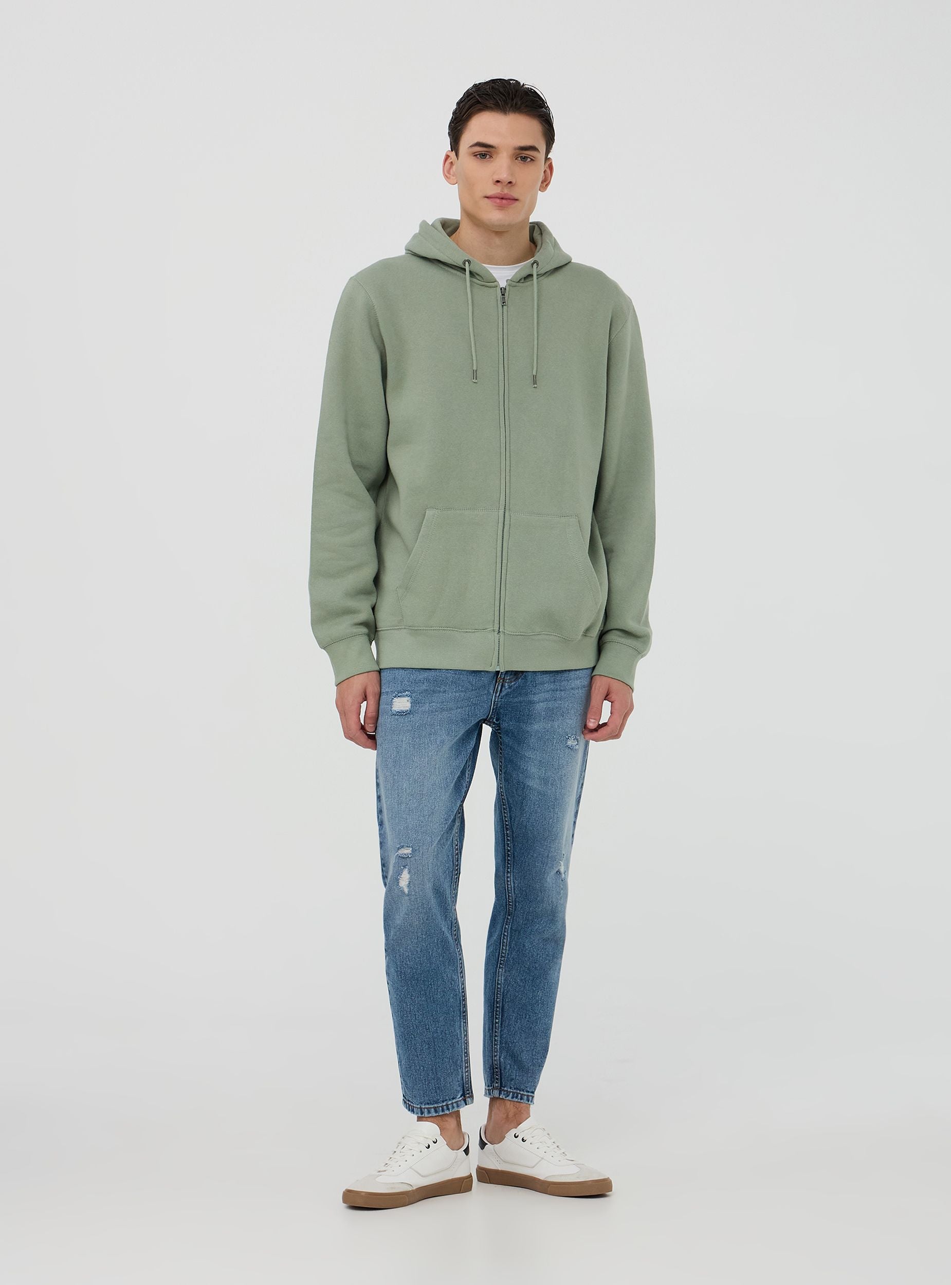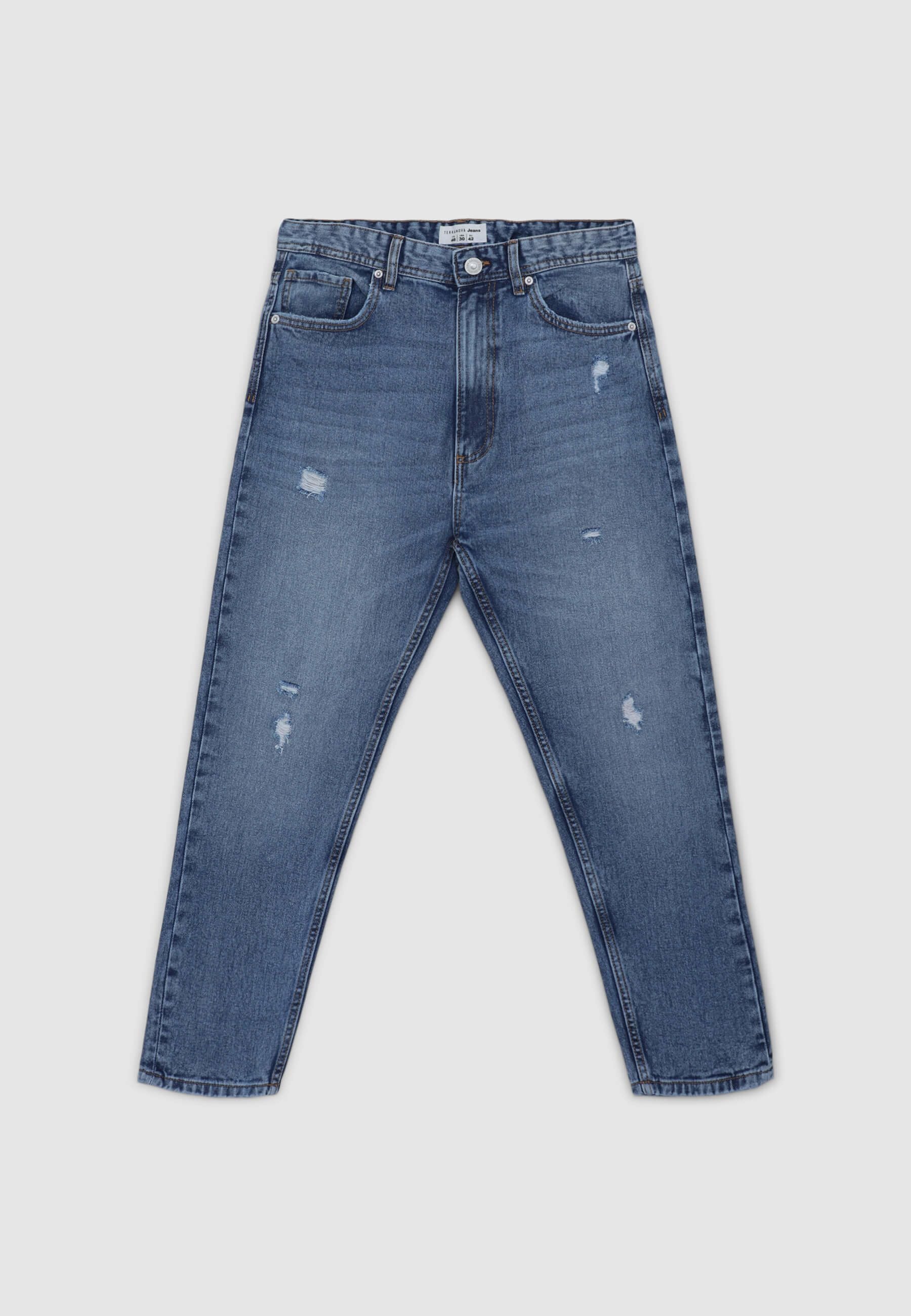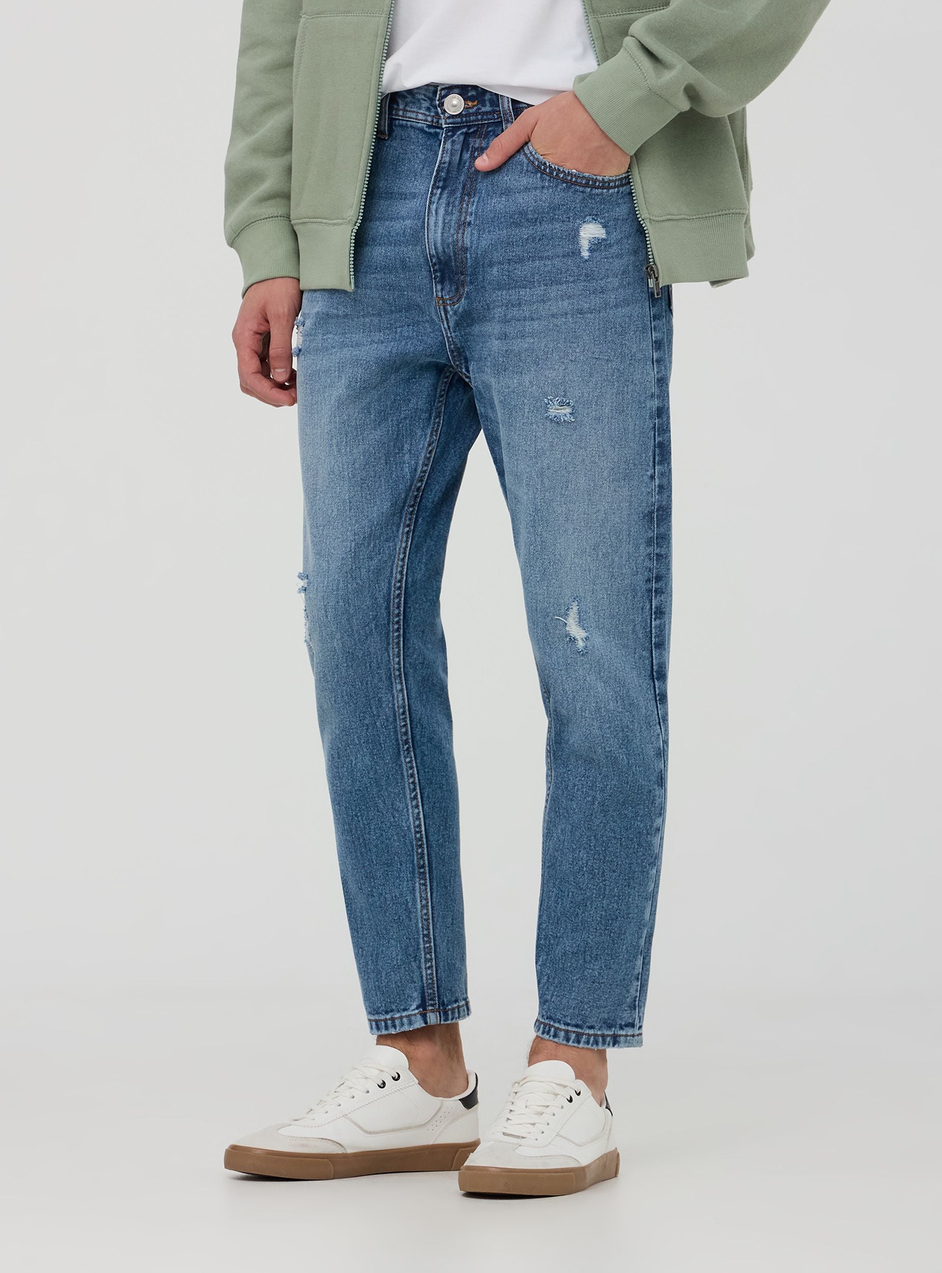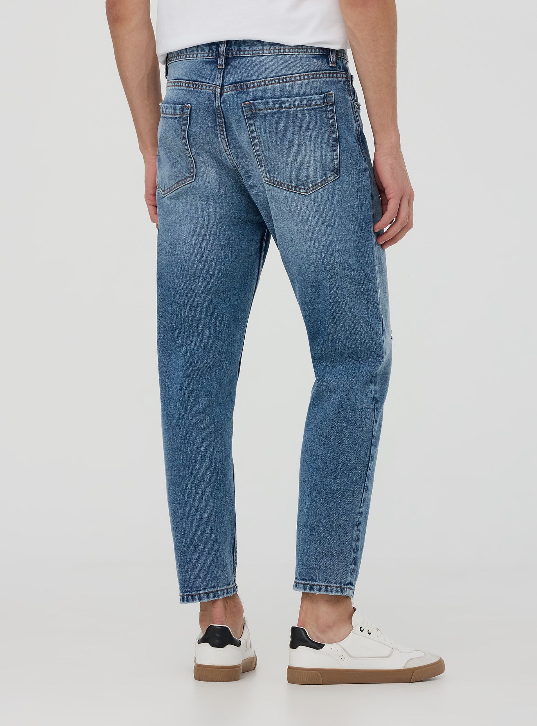 Мъжки дънки, перфектни за ежедневен и модерен вид, идеални за свободното време или неформални излизания. Дълъг модел с копче и цип, пет практични джоба и коланчета на талията за колан. Средно измиване на деним, обогатено с малки разкъсвания, които придават съвременен и енергичен стил.Детайли