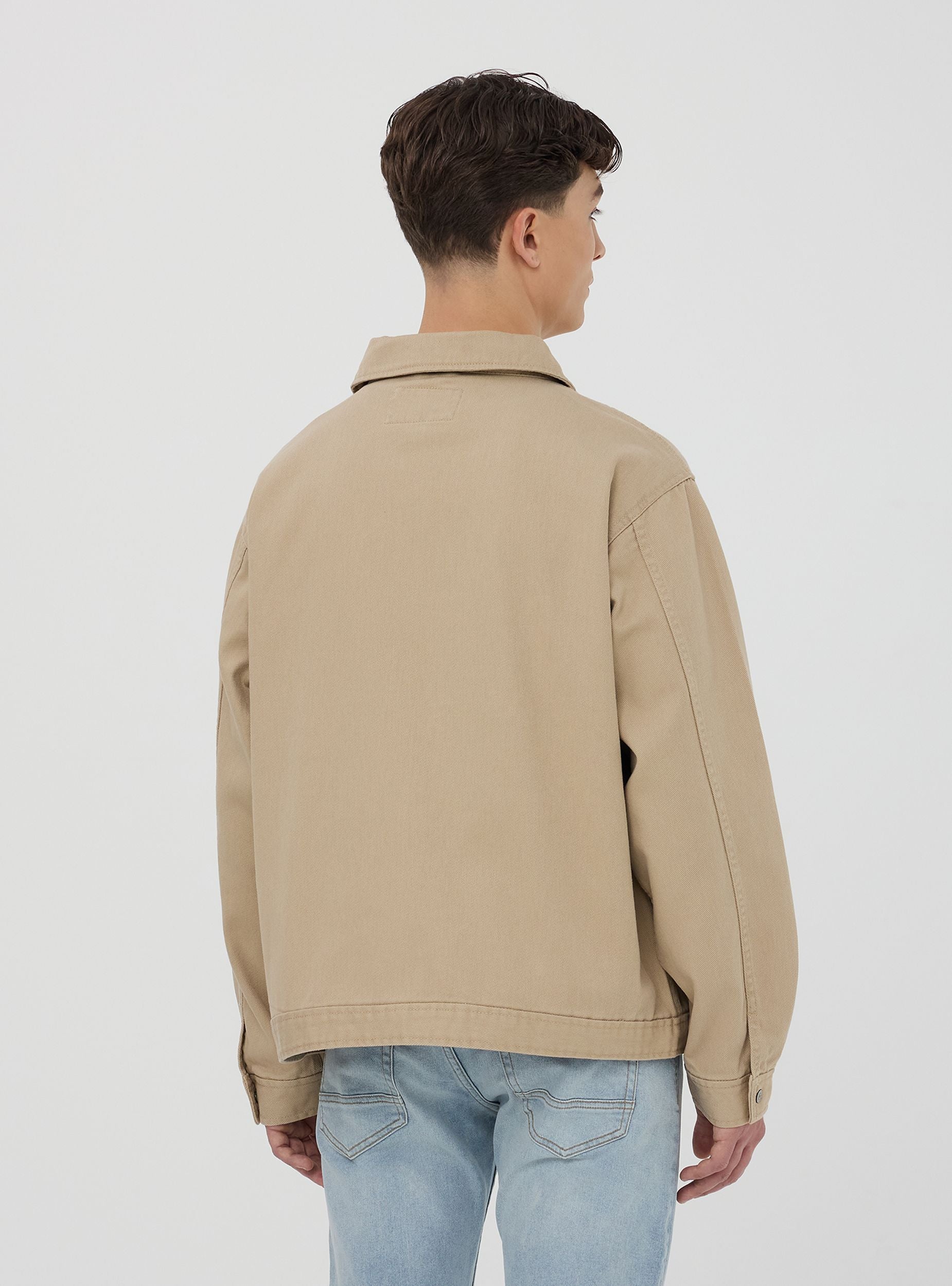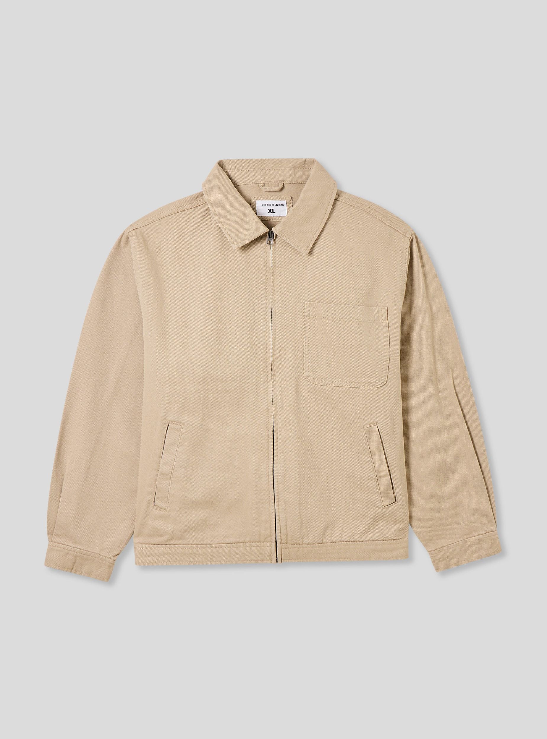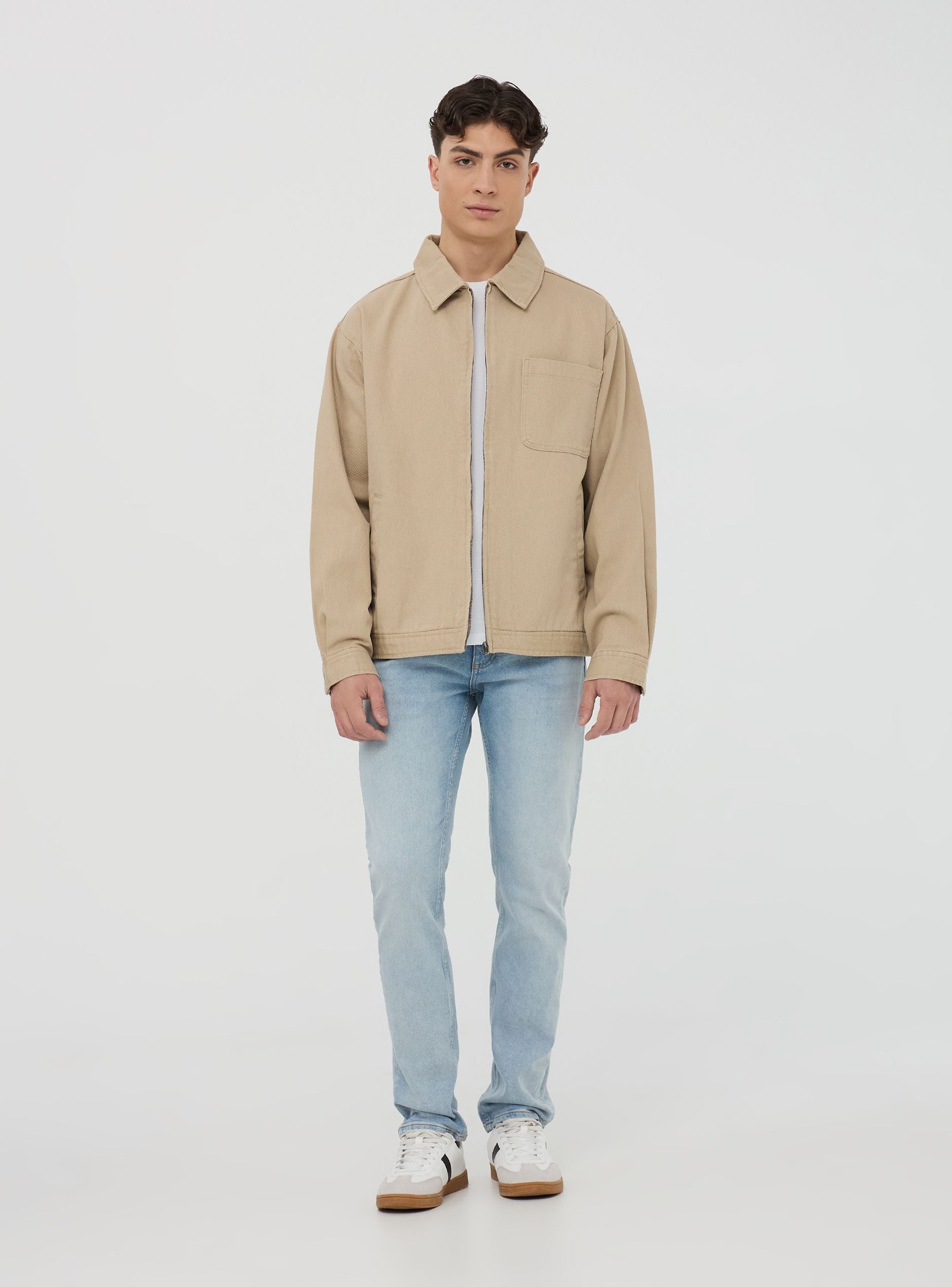 Мъжко яке с основен и модерен дизайн, перфектно за небрежен и универсален вид. Изработено от едноцветен деним, то разполага с практично закопчаване с цип и функционални джобове, включително един на гърдите. Идеално за междинния сезон, съчетава се перфектно с дънки и маратонки за неформален аутфит, или с карго панталони и ботуши за по-урбанистичен вид. Перфектно за свободното време и за дни в града.