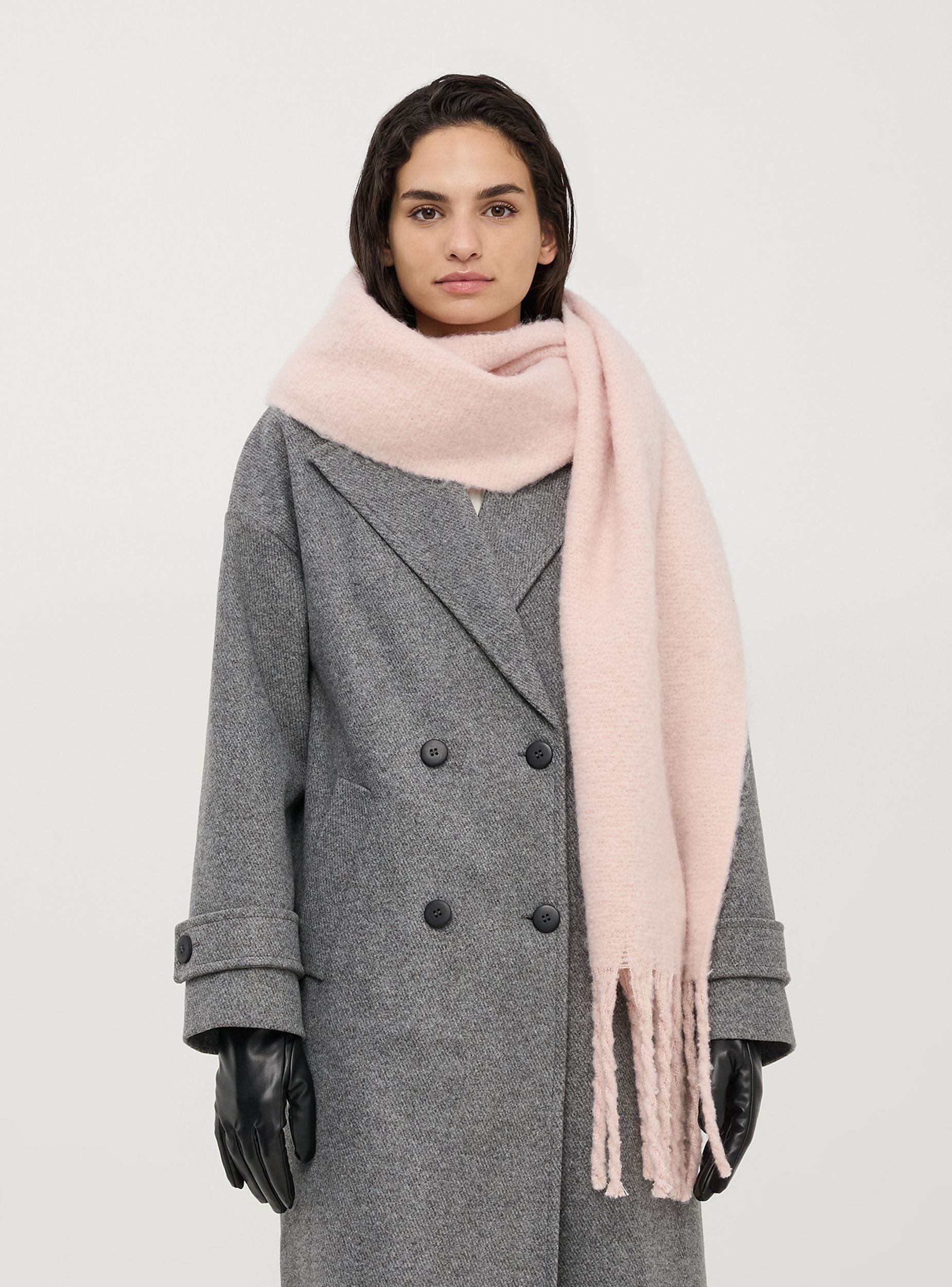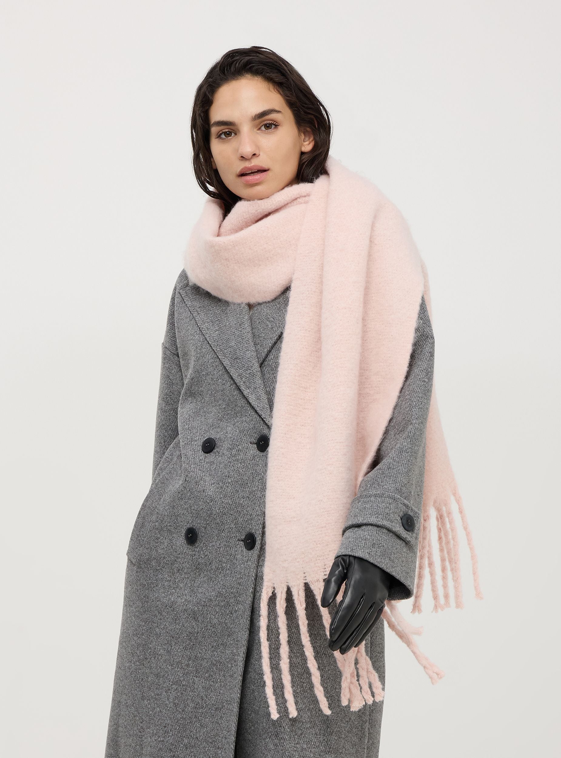 Шал за жени с ресни от плътен едноцветен текстил.Детайли