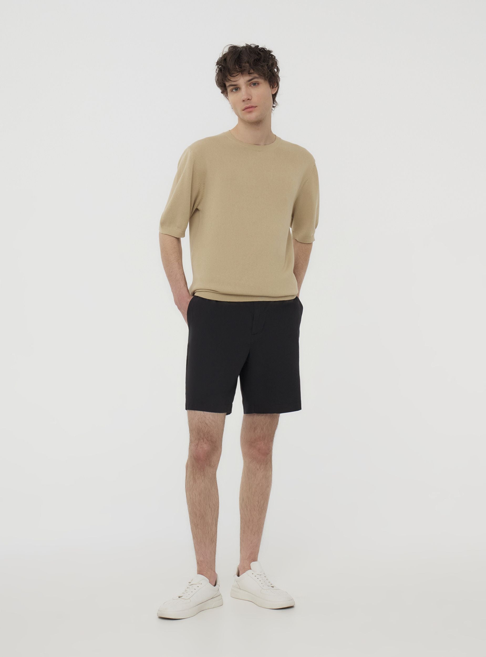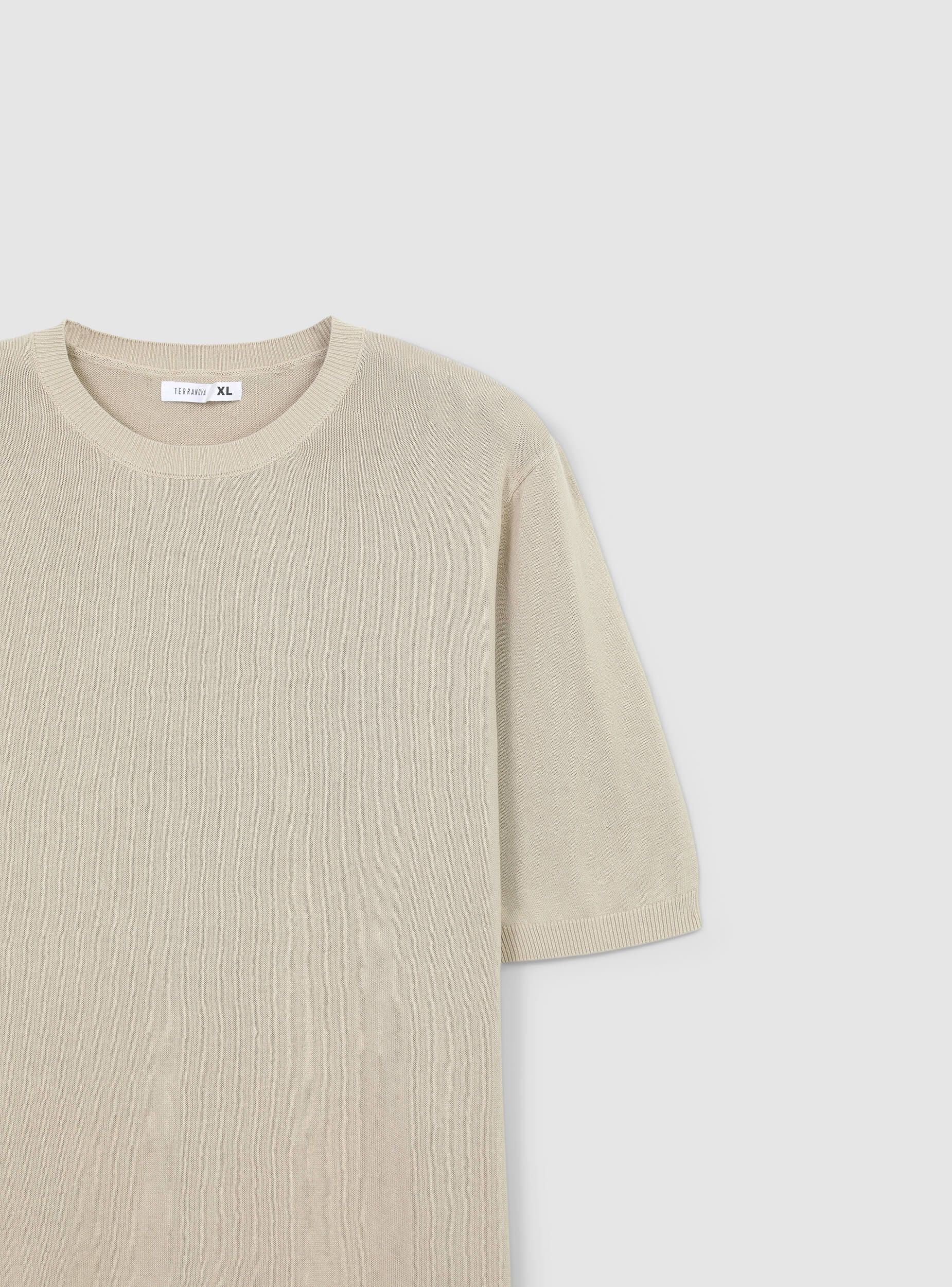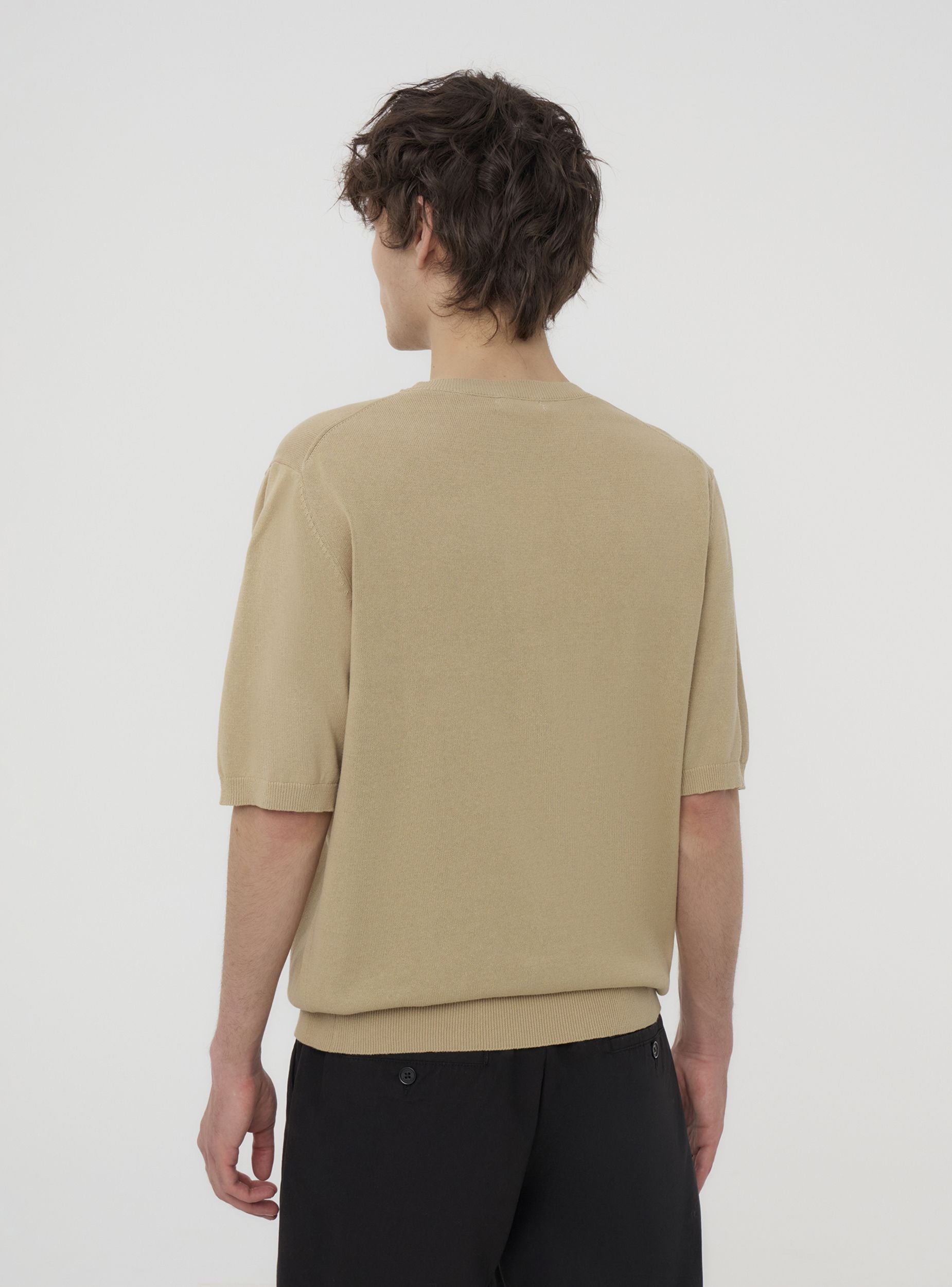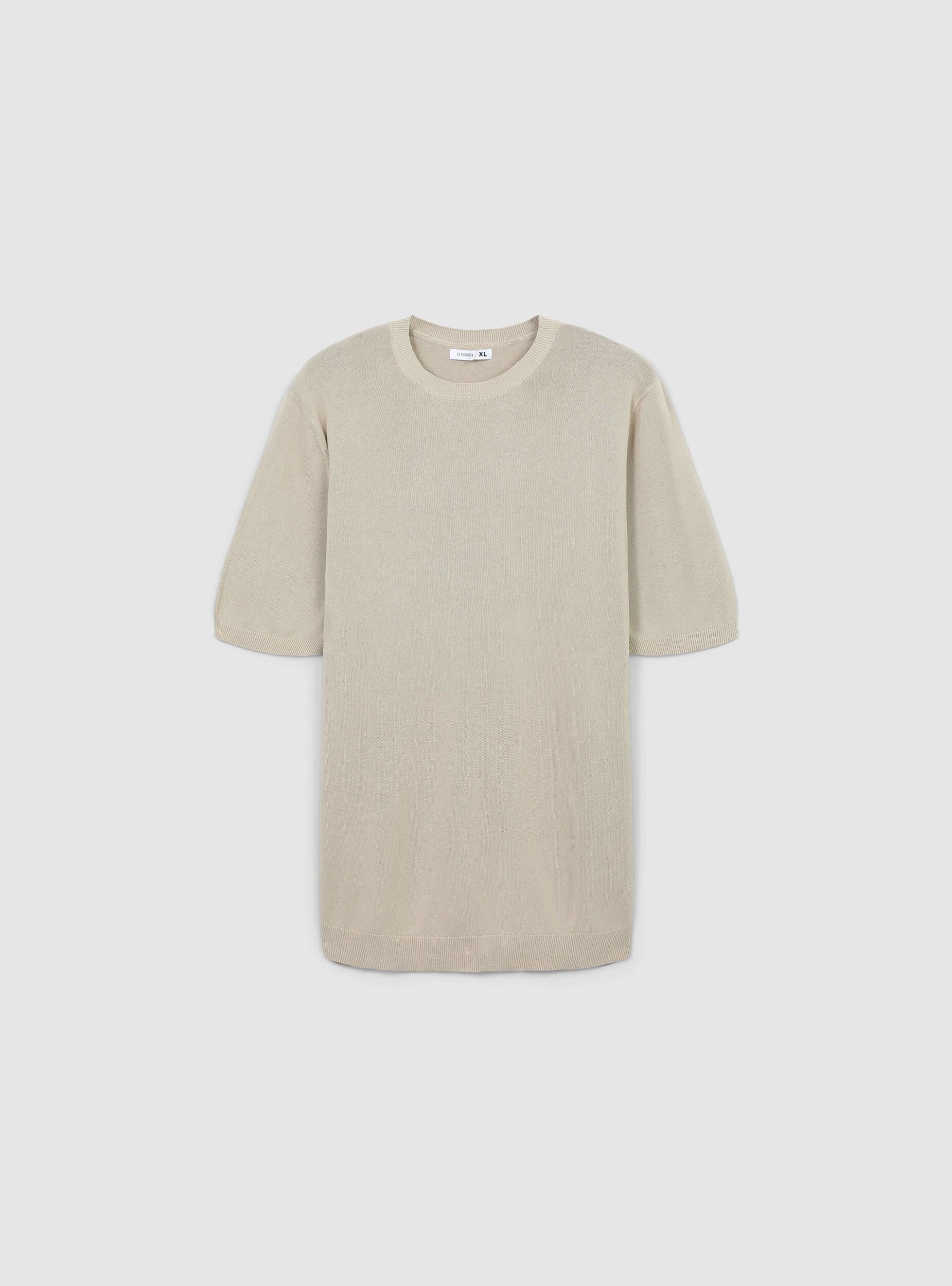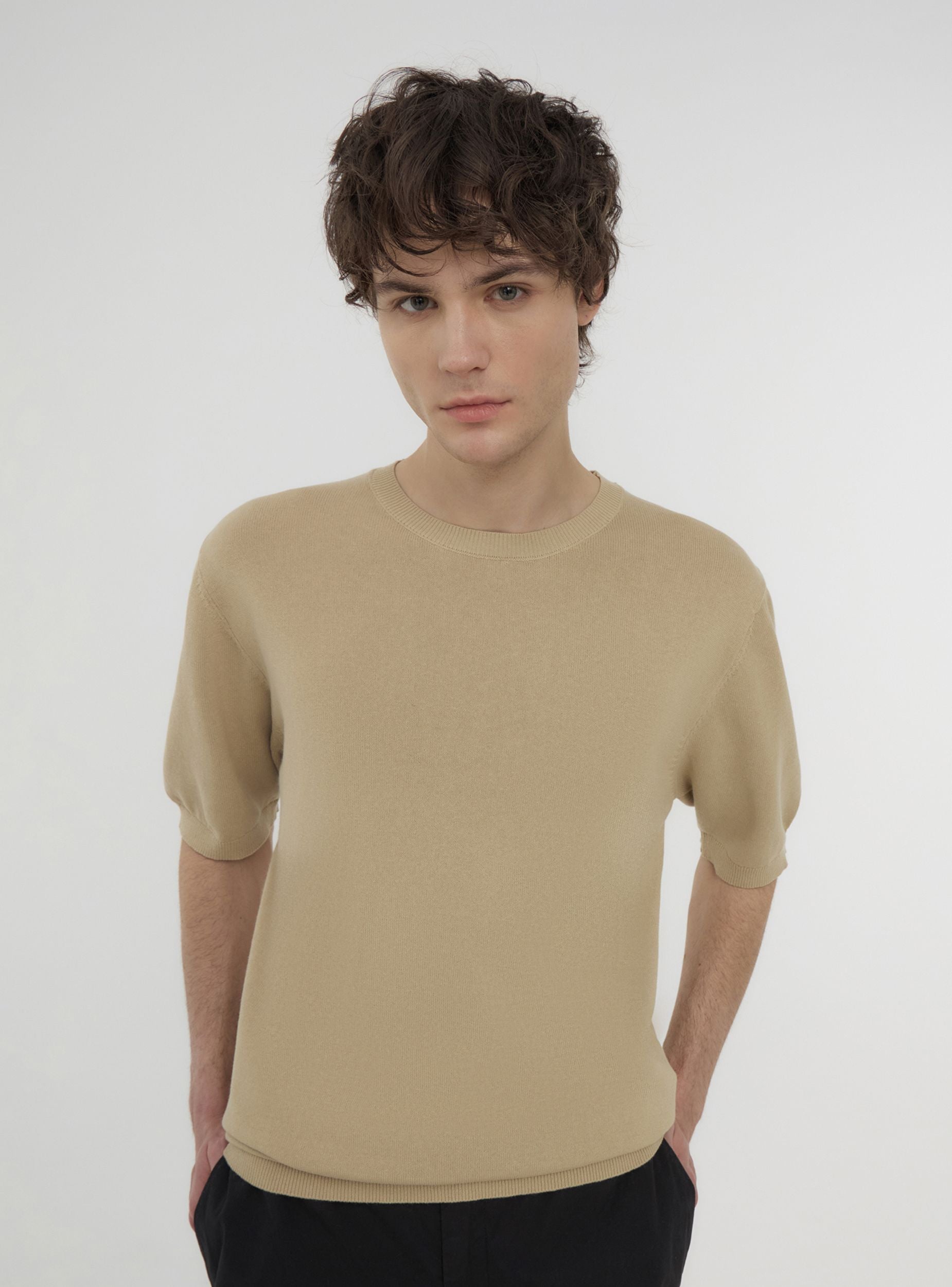 Мъжка тениска с едноцветен дизайн, изработена от памучна материя, създадена да осигури комфорт и свобода на движение през целия ден. Късите ръкави и кръглото деколте се комбинират с универсална кройка, перфектна за неформален вид, който лесно се адаптира към свободното време, неформалната работа или ежедневните излизания. Простият, но добре обмислен дизайн е обогатен с детайли от ластик на деколтето, ръкавите и долната част, които добавят допълнителен стил. Идеална за комбиниране с дънки, чино панталони или бермуди за практичен, модерен и винаги актуален аутфит. Основен елемент, оценен заради качеството на памучната материя.Детайли