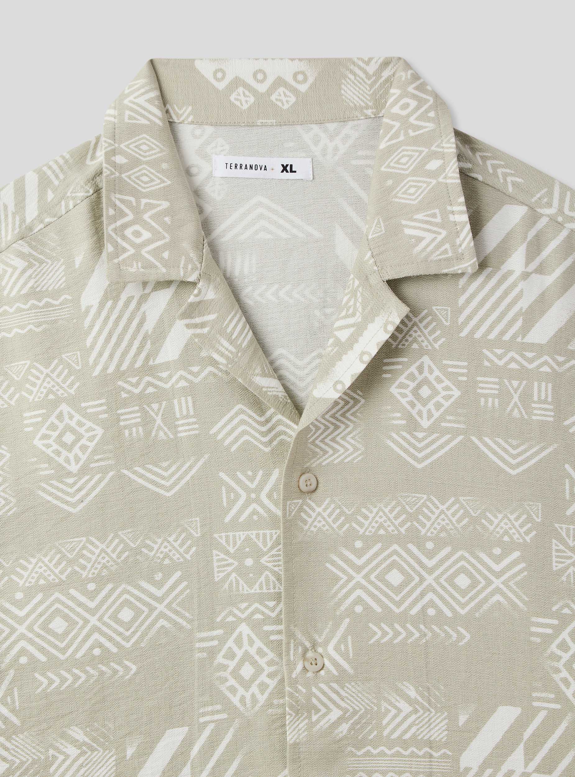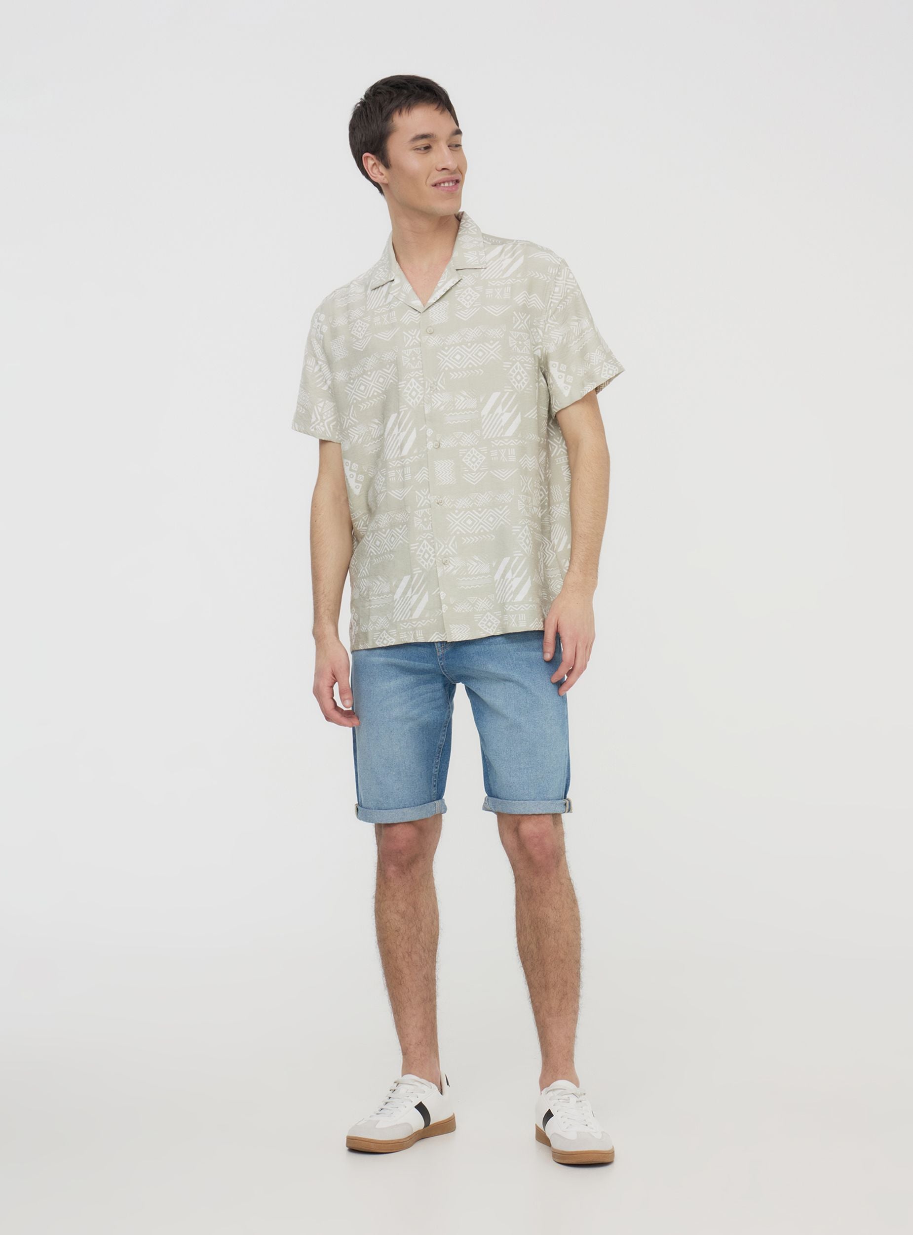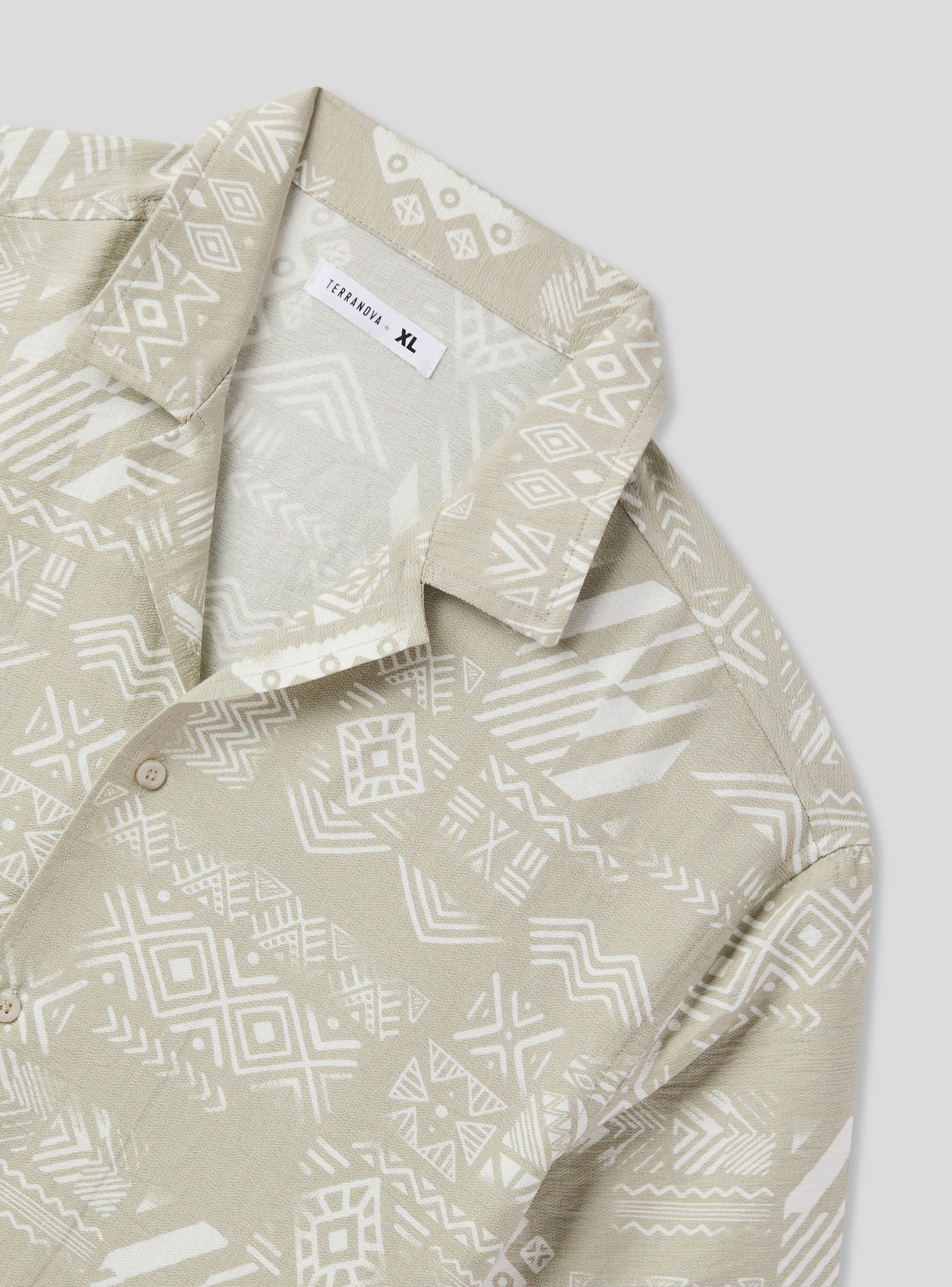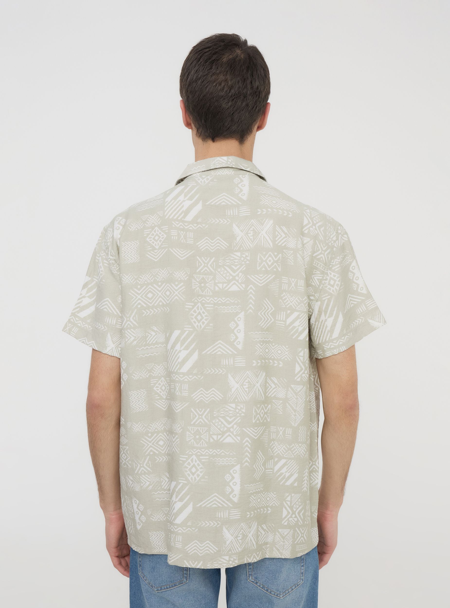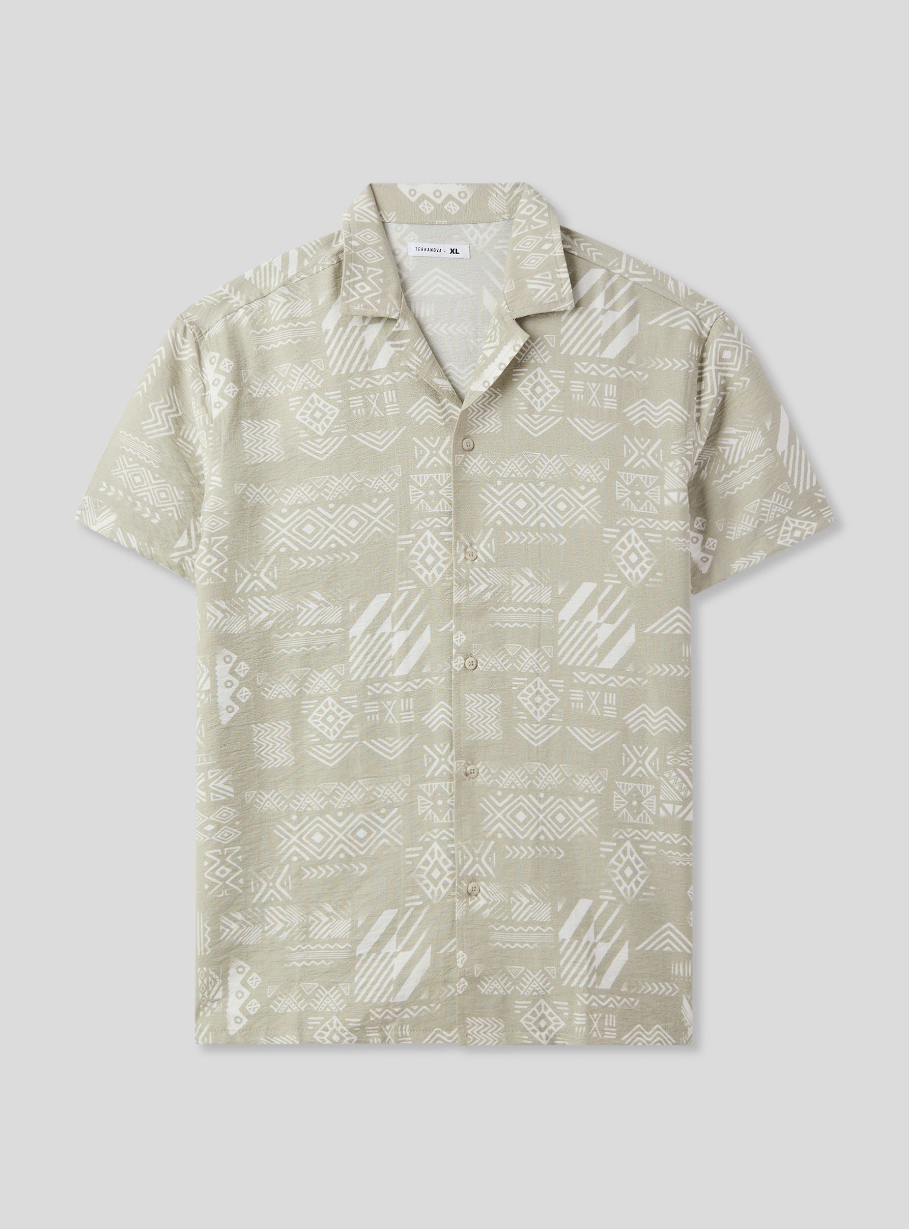 Мъжка риза с къси ръкави, перфектна за тези, които обичат изтънчен и оригинален стил. Етническият десен в цялостен вариант придава отличителен акцент, правейки дрехата идеална за небрежни и релаксиращи визии. Закопчаването с копчета добавя гъвкавост, позволявайки да се носи отворена върху тениска или затворена за по-изискан вид. Идеален вариант за тези, които желаят свежа и с характер визия.Детайли