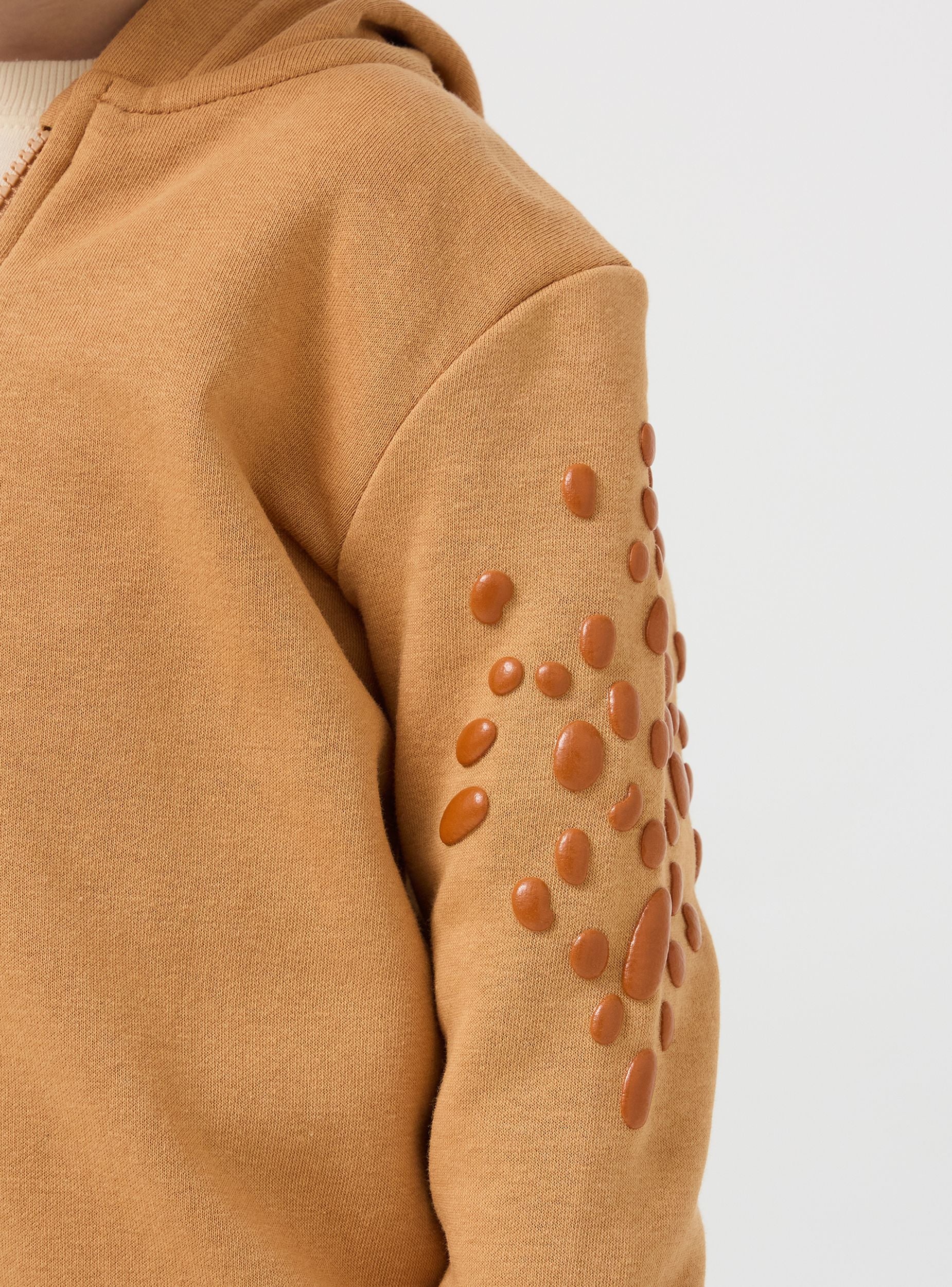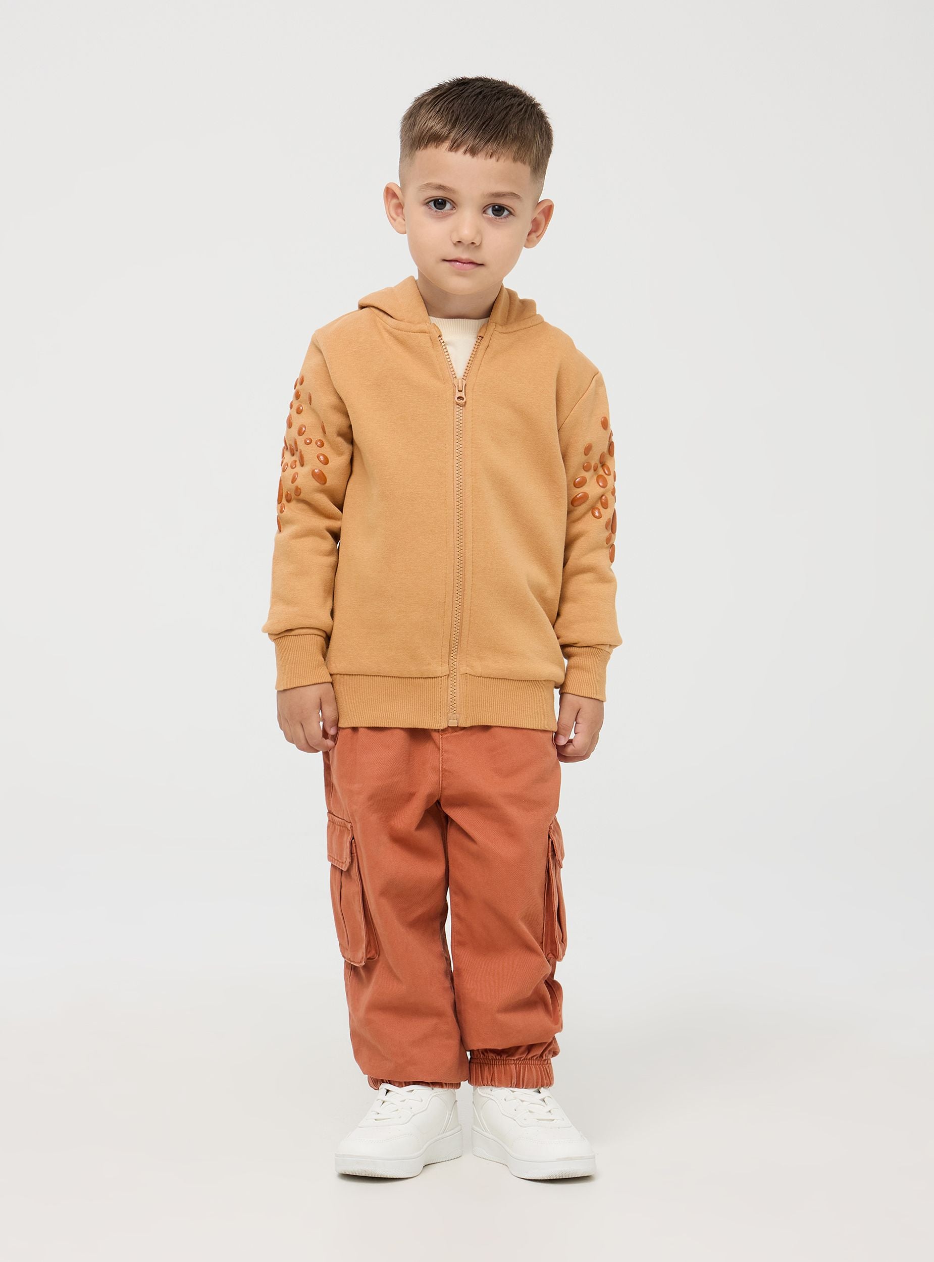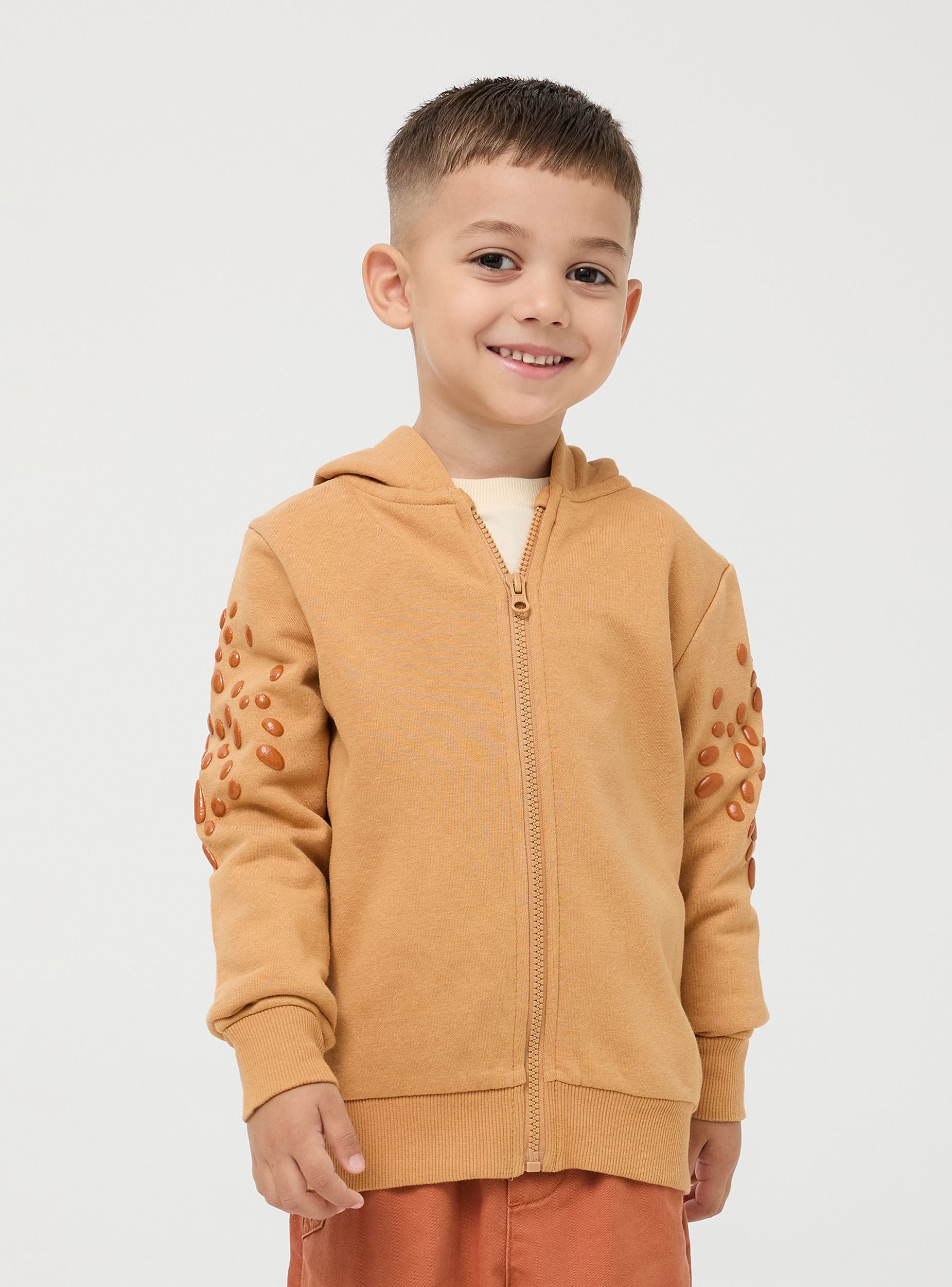 Симпатичен детски суичър с 3D детайли на динозавър. Капюшонът е с гребен и весели очички, докато горната част на ръкавите е покрита с люспи. Модел с цип и ръбове с ластик, тежка материя. Перфектен за игрив и забавен вид. Стандартно прилягане.