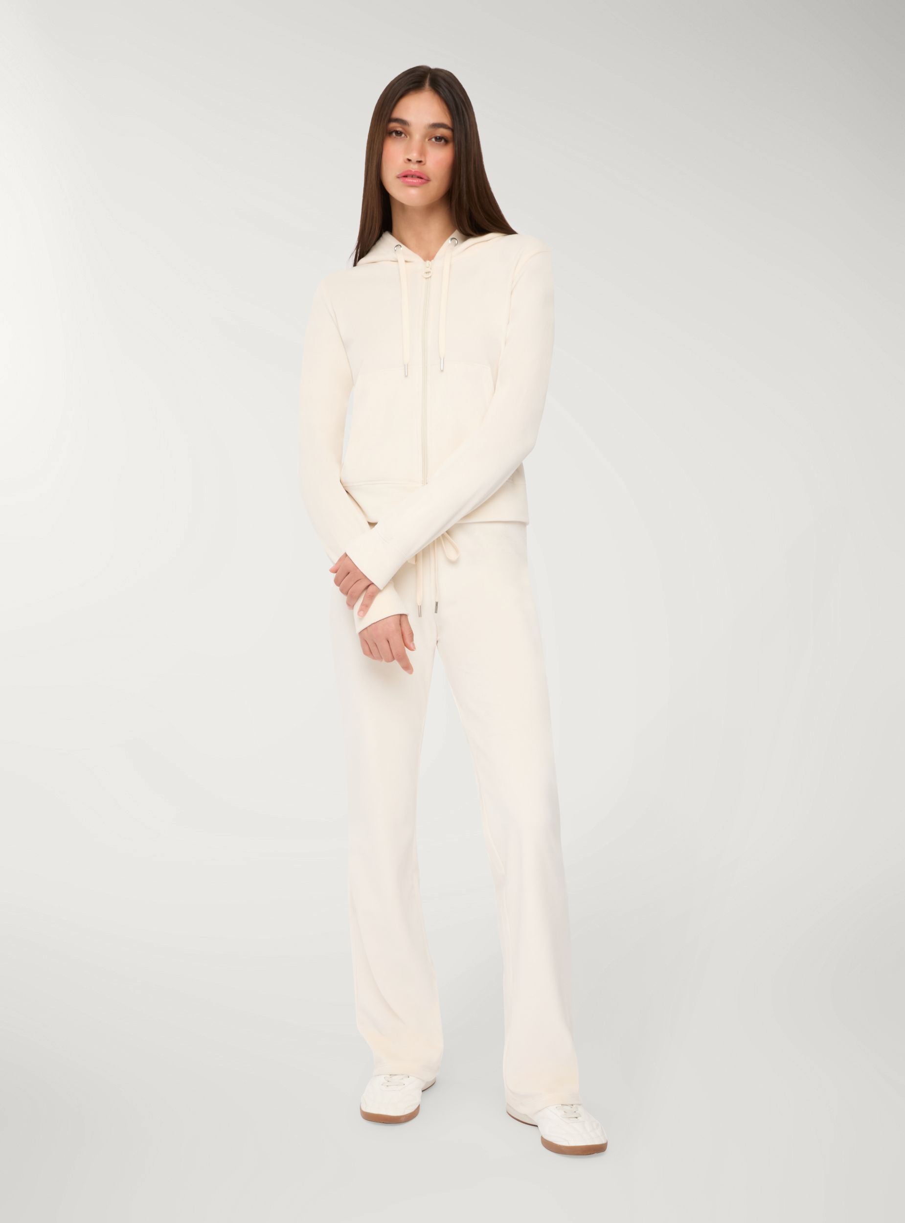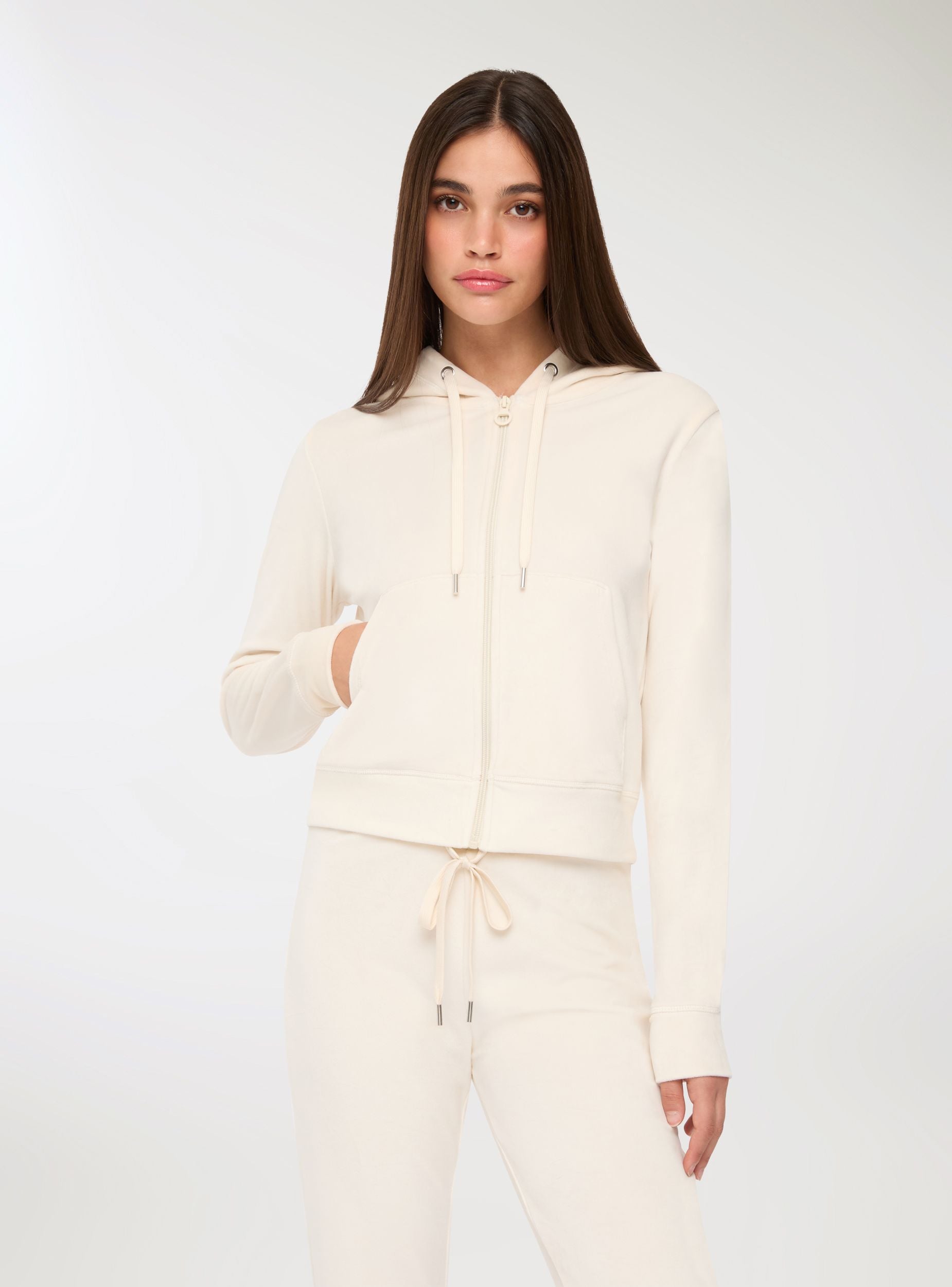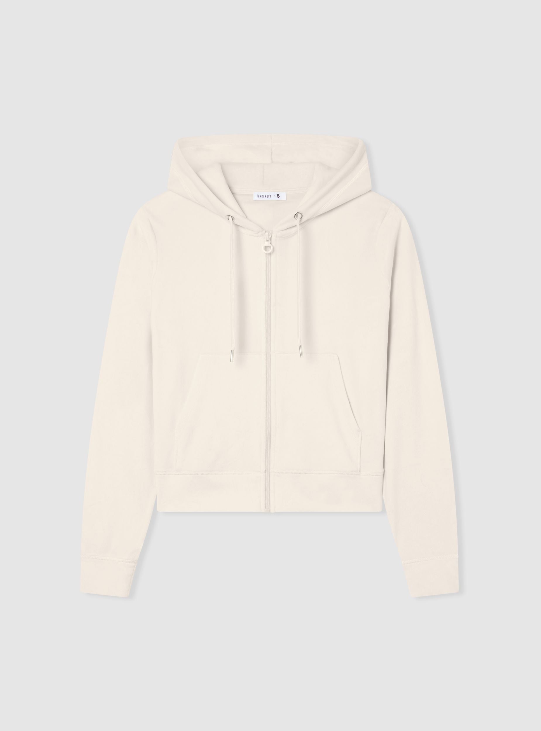 Женска блуза от мека велурена материя с цип и регулируем качулка с връзки. Велурената текстура я прави перфектна за неформален шикозен вид. С предни джобове е идеална за съчетаване с джогъри или дънки за удобно и модно облекло.Детайли