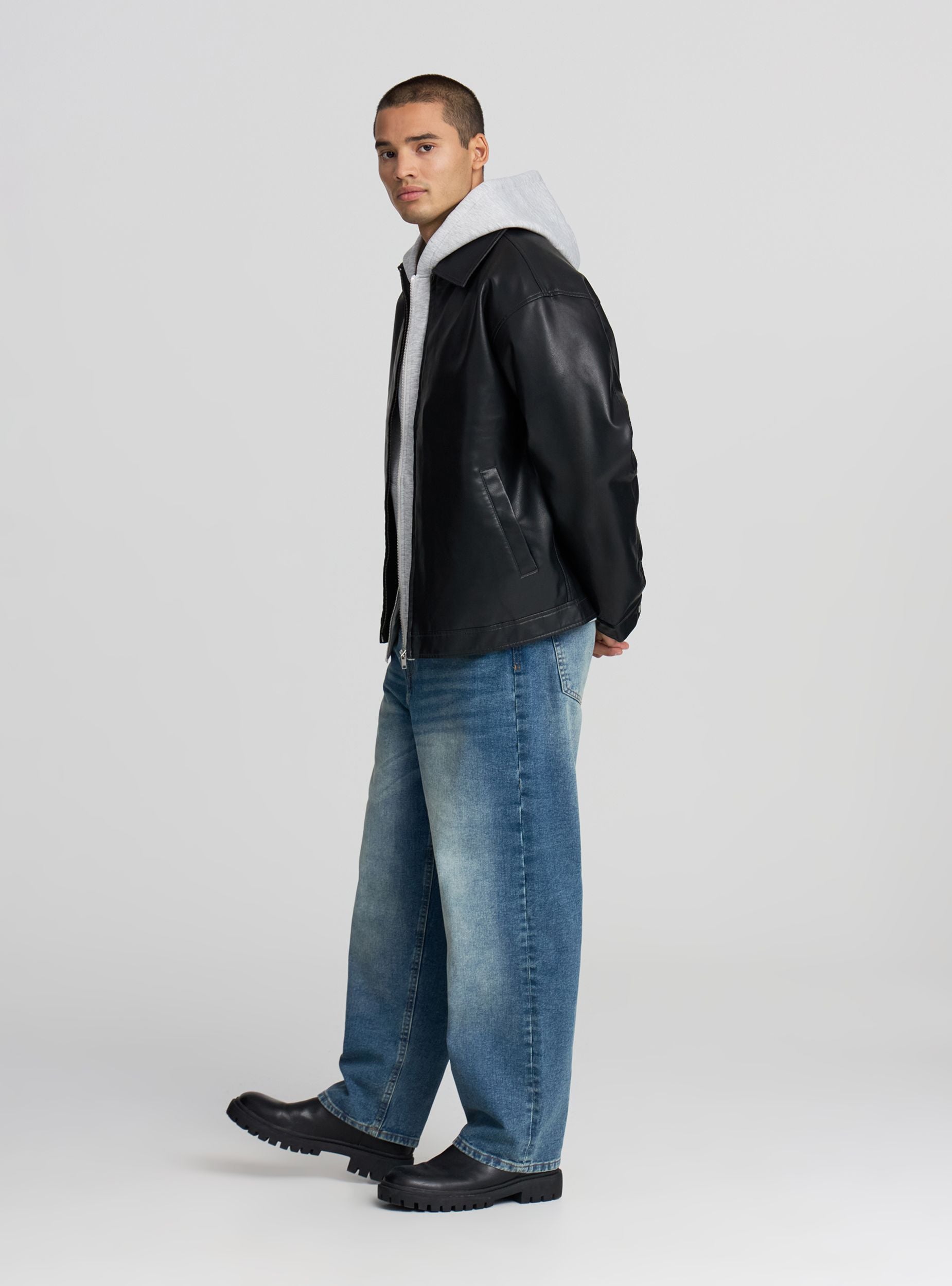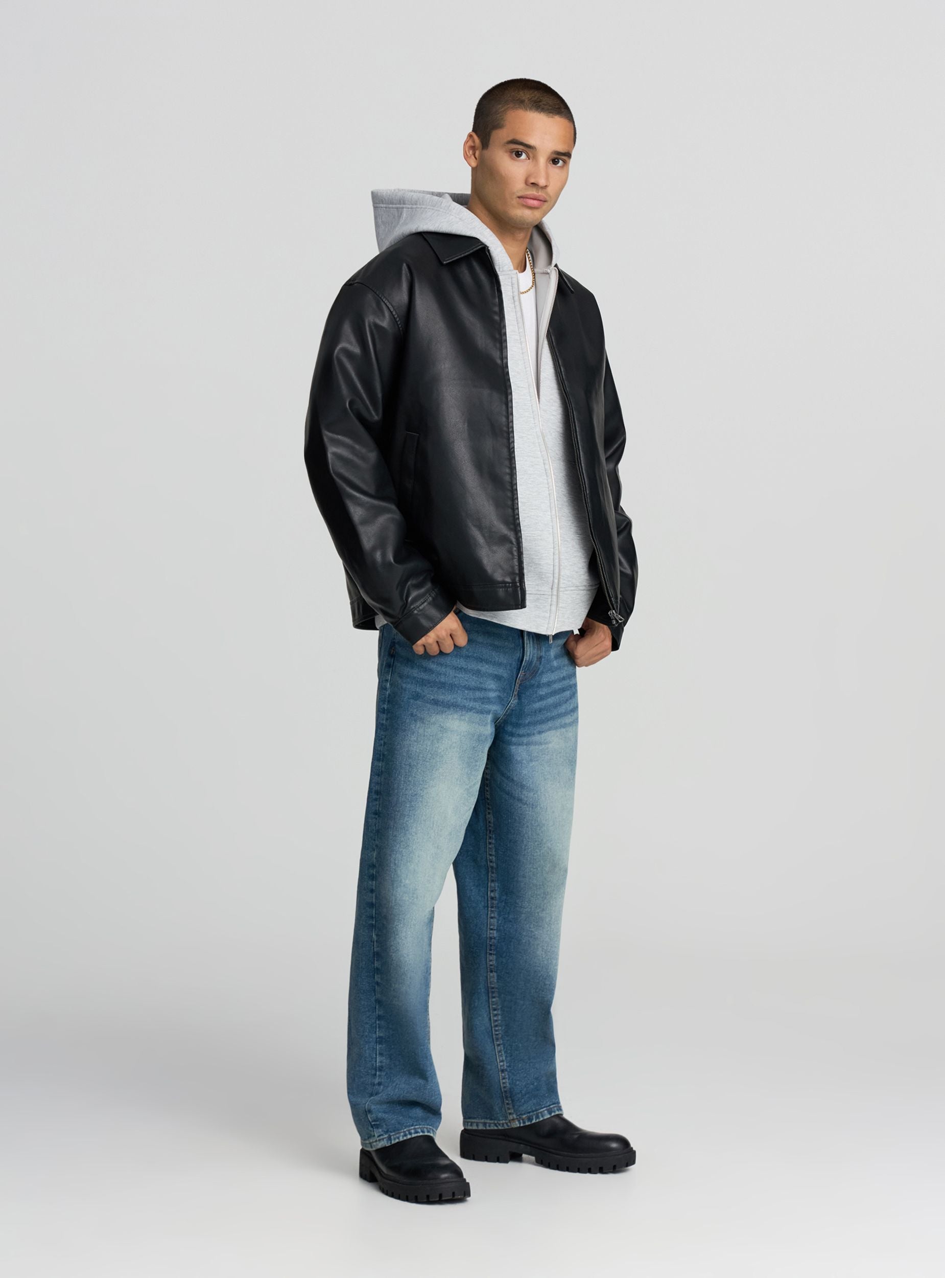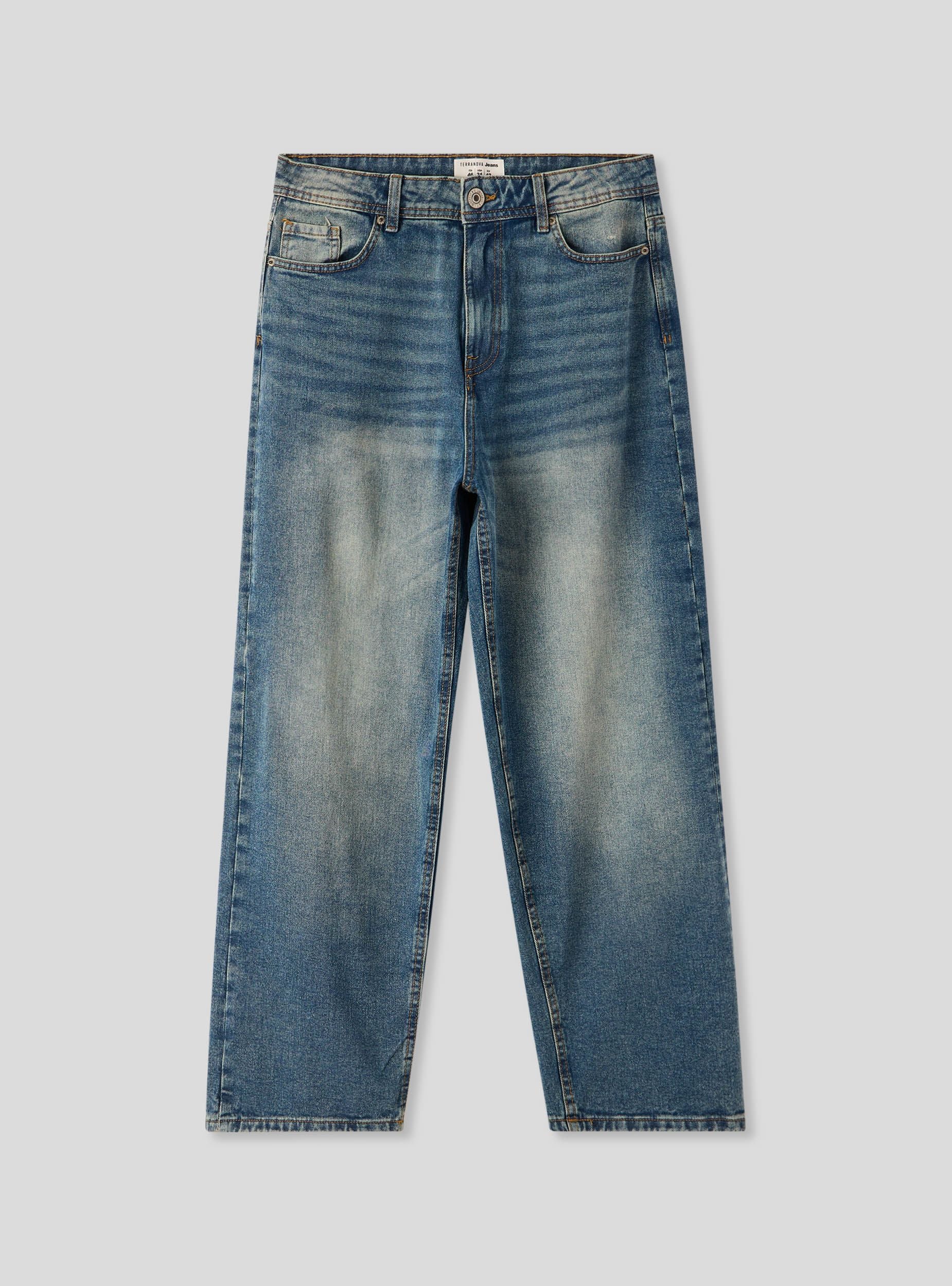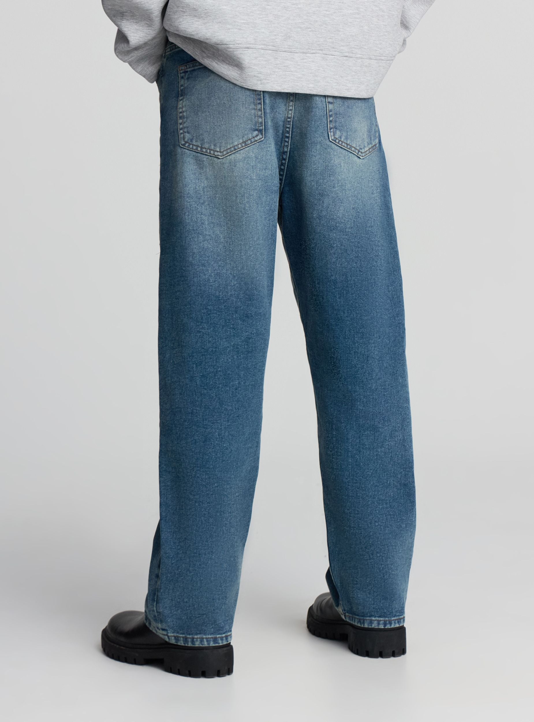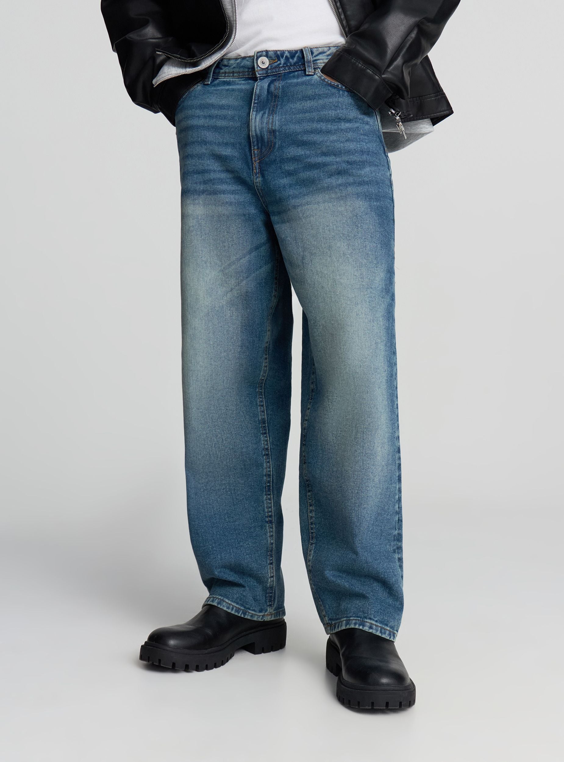 Мъжки дънки с изключително широк силует, с просторна кройка и средно измиване, перфектни за ежедневен и отпуснат стил. Разполагат с цип и копче за закопчаване, коланени халки и дизайн с пет джоба, лесно се съчетават с тениски или суитшърти за неформални визии, идеални за свободното време.