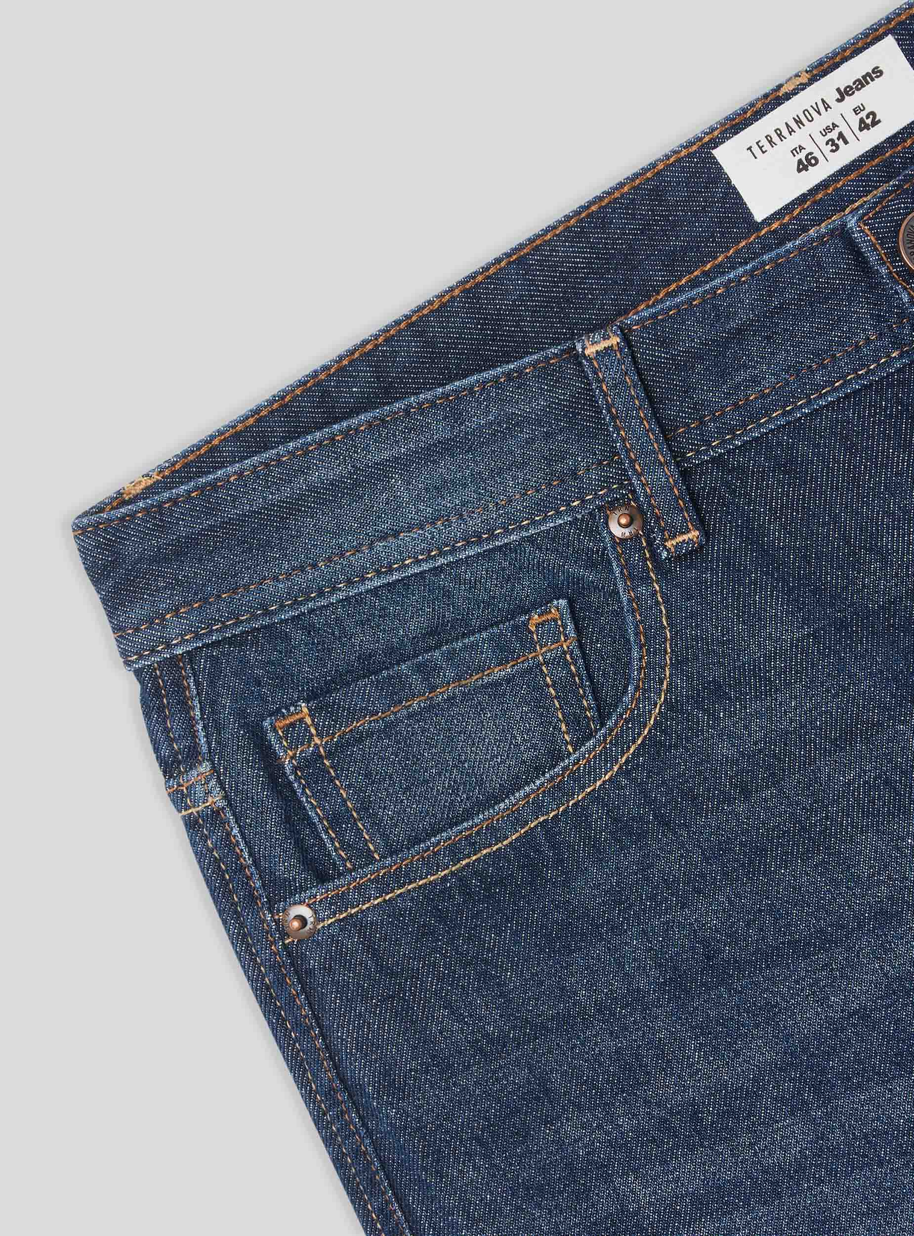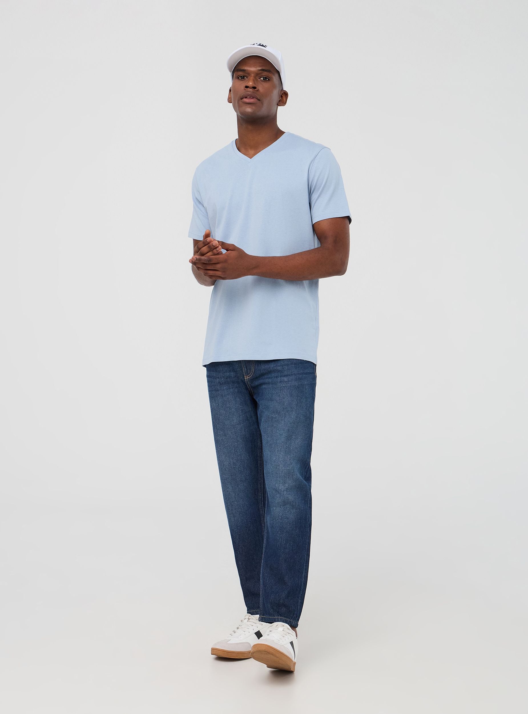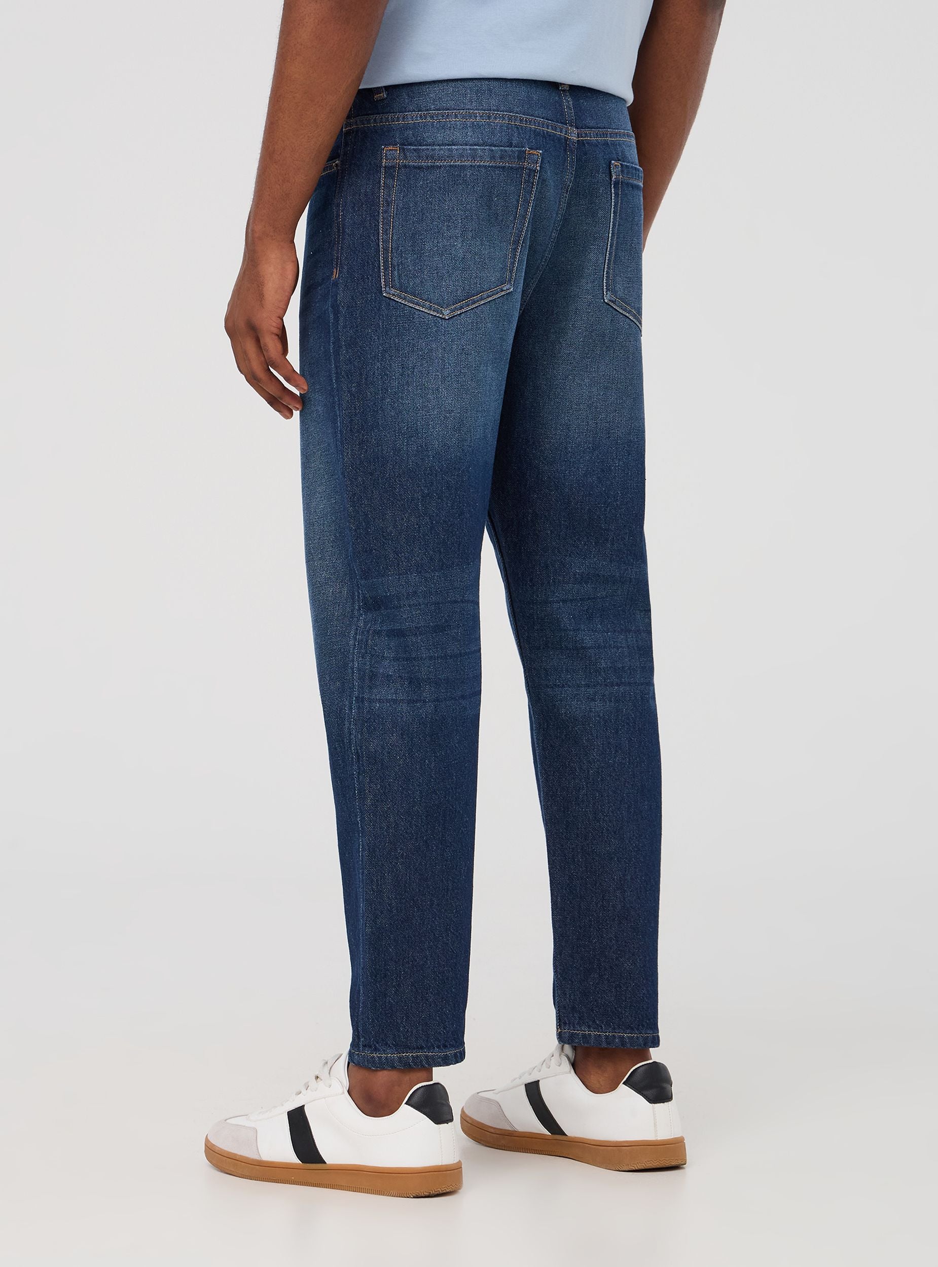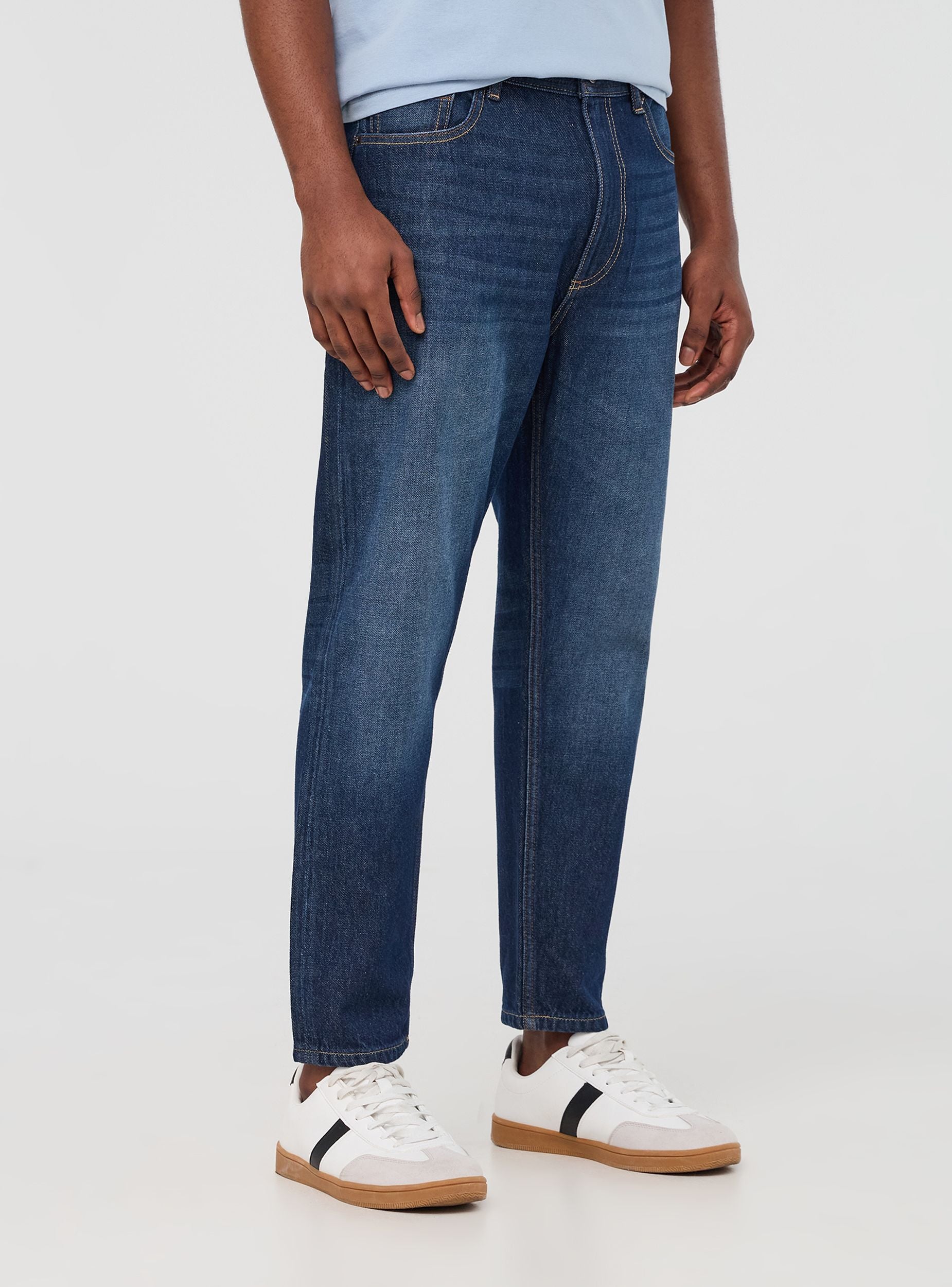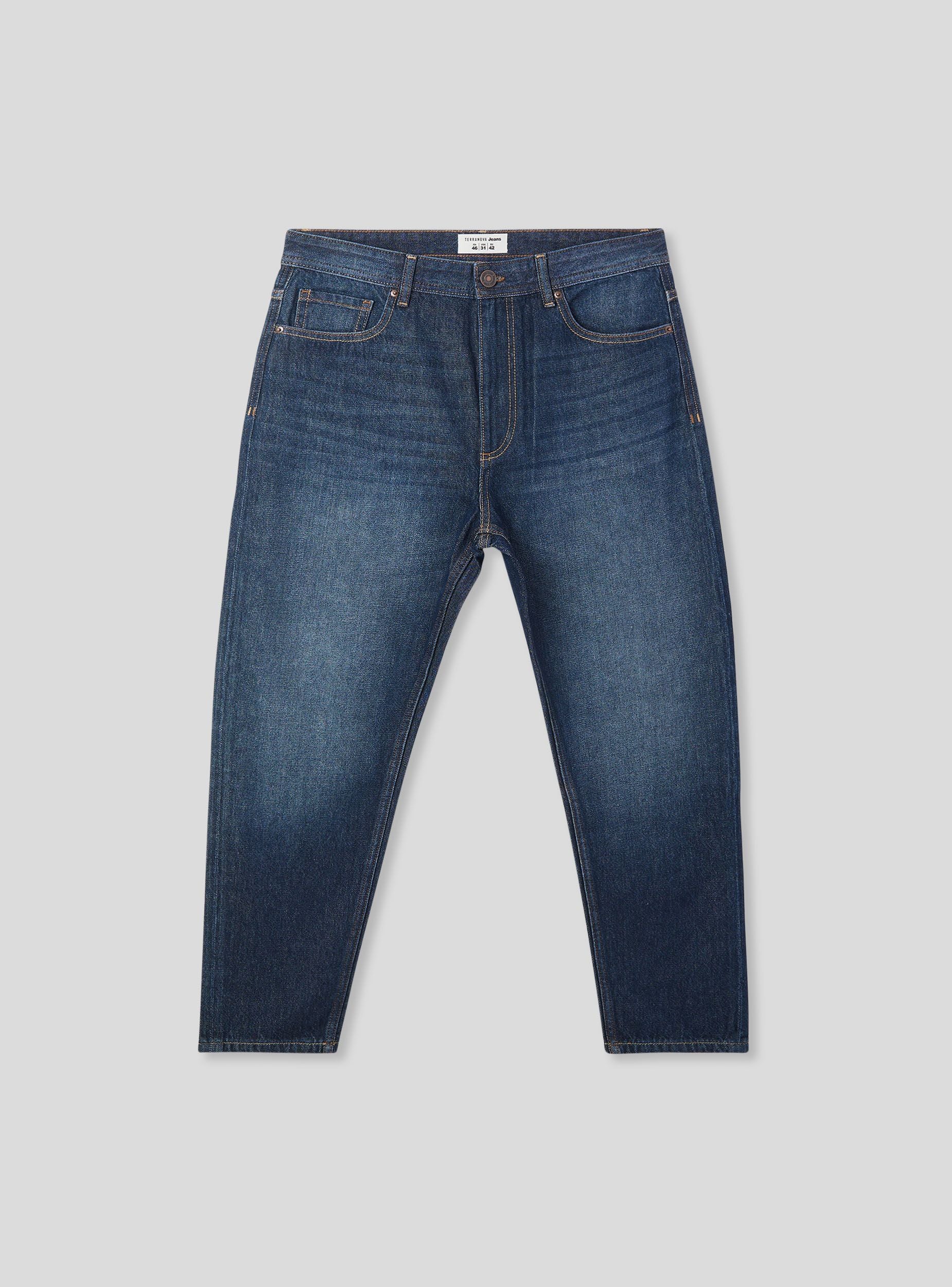 Дънки за мъже с релаксиран крой, идеални за неформален и универсален стил. С пет функционални джоба и закопчаване с копче и цип, те се отличават с тъмен деним, който придава модерен и изтънчен вид. Перфектни за съчетаване с ризи и мокасини за изискан аутфит или с суичъри и маратонки за свободното време. Подходящи за различни неформални и ежедневни поводи.Детайли