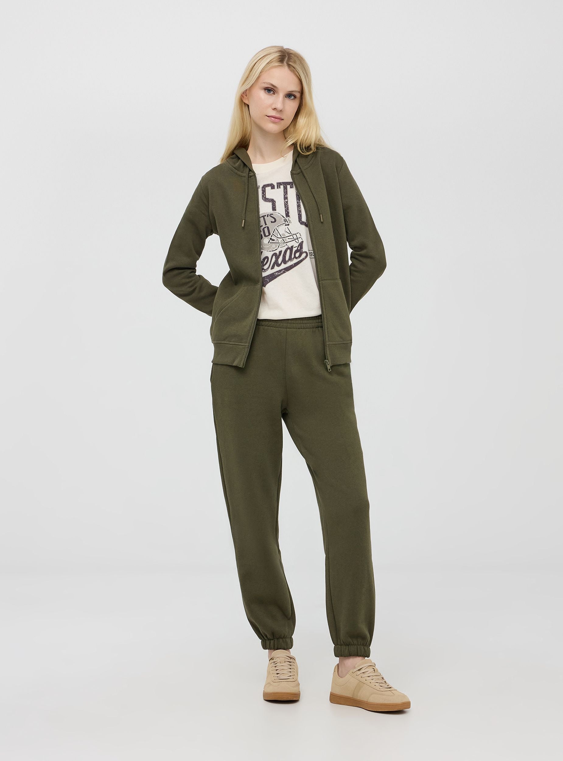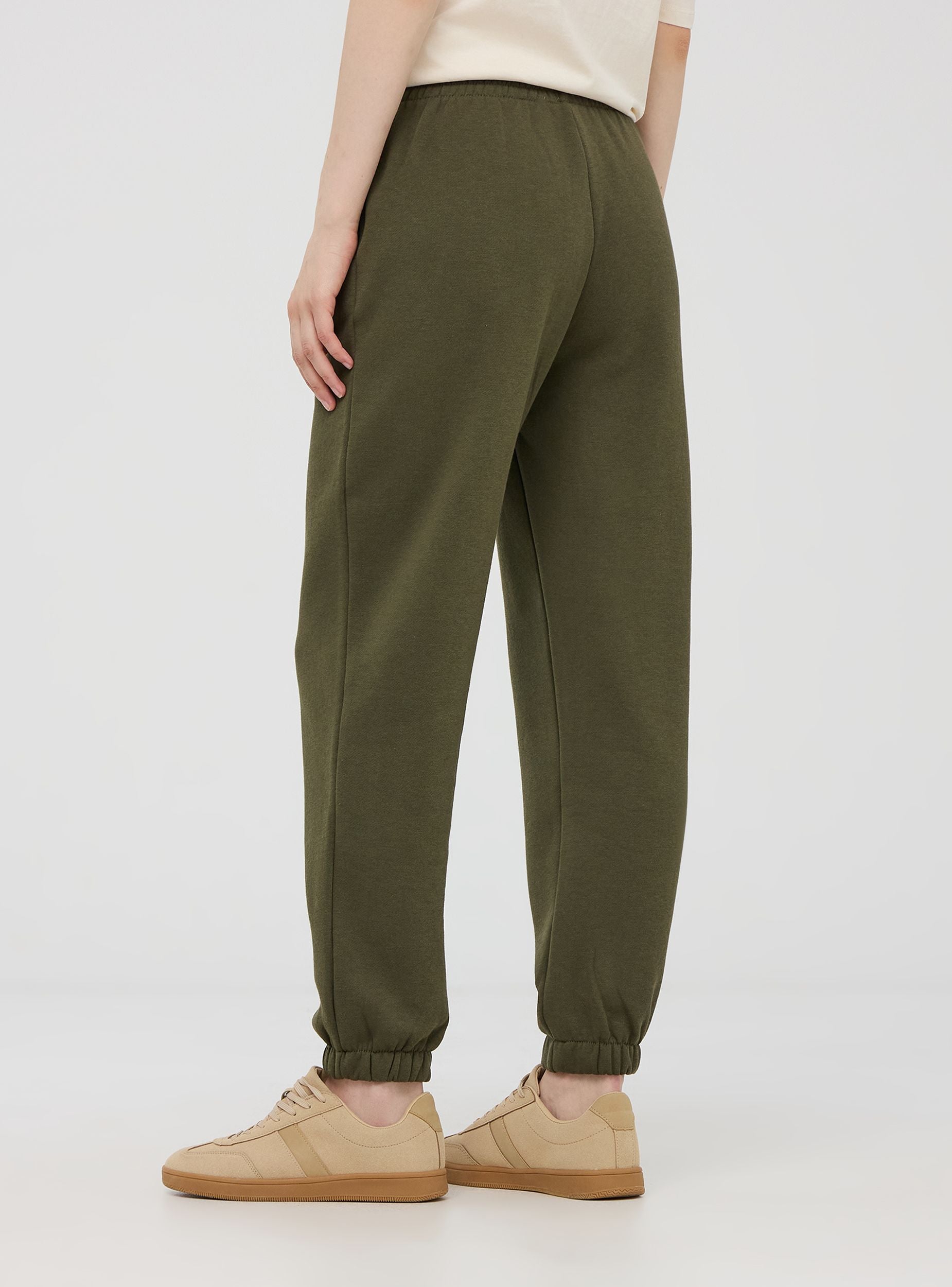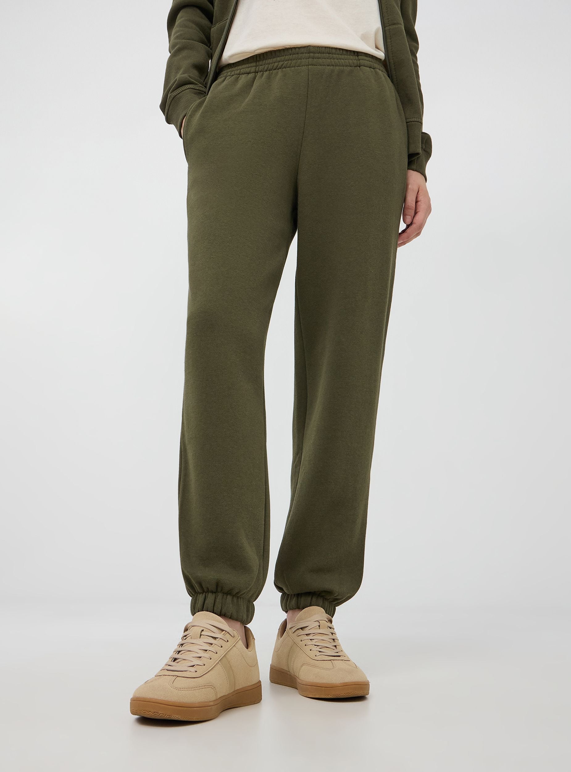 Дамски панталони от трико с висока талия, изработени от плътна едноцветна материя, с странични джобове. Те предлагат удобна кройка с еластична талия и на глезените, осигурявайки максимален комфорт по време на носене. Едноцветният дизайн прави тези панталони универсални и лесни за комбиниране с различни аутфити. Идеални за спортни активности, неформални дни или моменти на релакс у дома, тези панталони от трико са перфектни за поддържане на удобно и стилно облекло при всякакви поводи.Детайли
