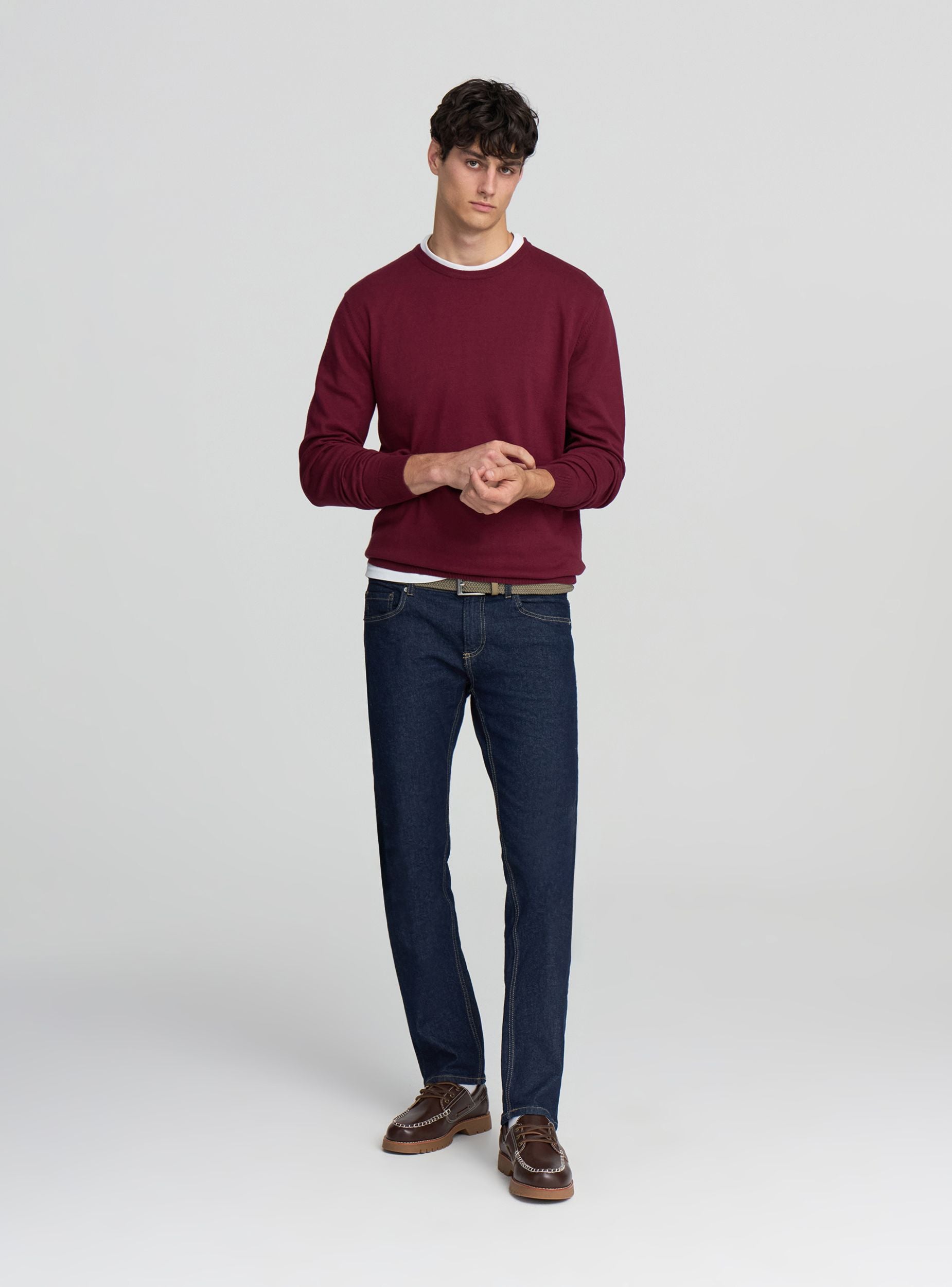 Muška majica s dugim rukavima idealna za zimsko razdoblje. Čist dizajn s okruglim izrezom i rebrastim završecima čini je svestranom i udobnom za svakodnevno nošenje. Savršena za kombiniranje s trapericama ili chino hlačama za ležeran i dotjeran izgled, bitan je dio muške garderobe.Detalji