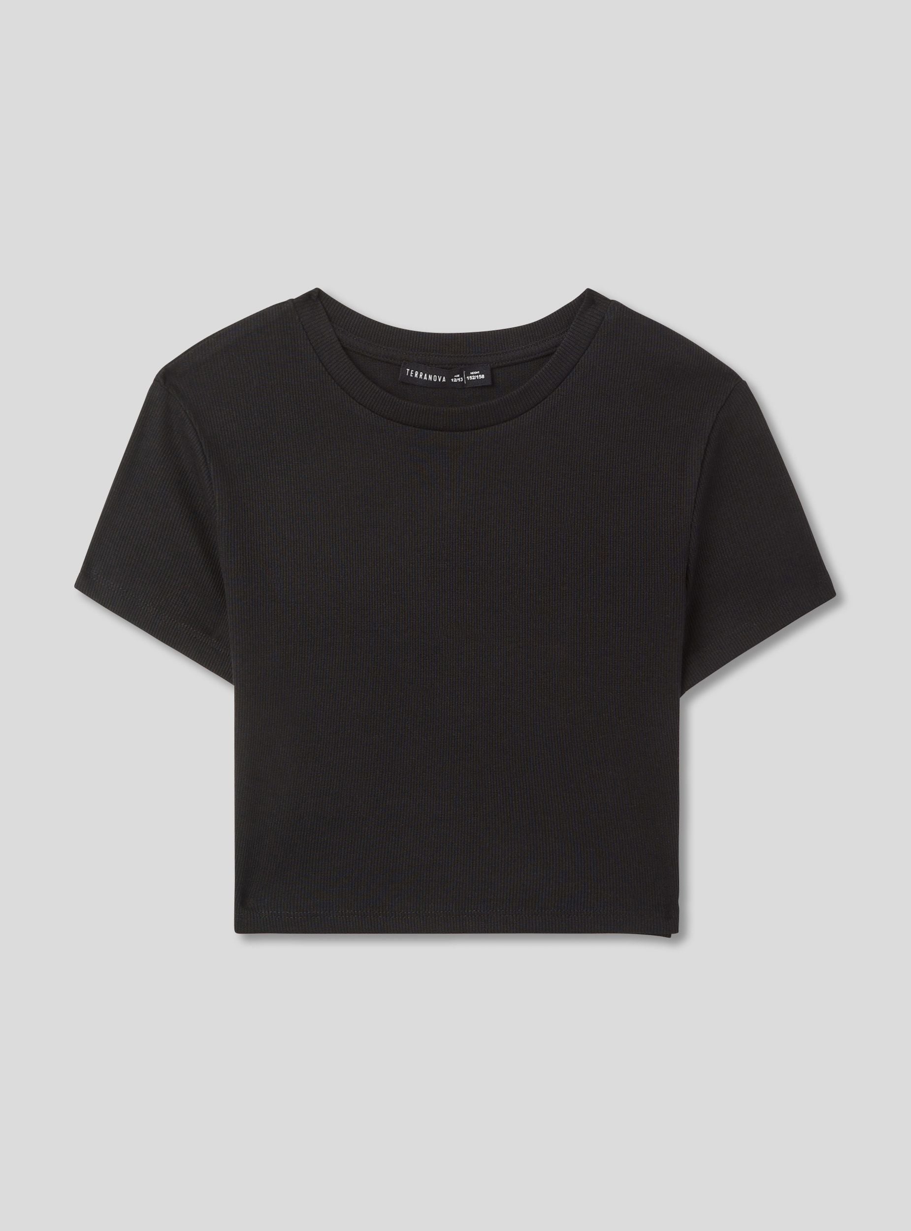 Crop majica od rebrastog pamuka u jednobojnoj varijanti