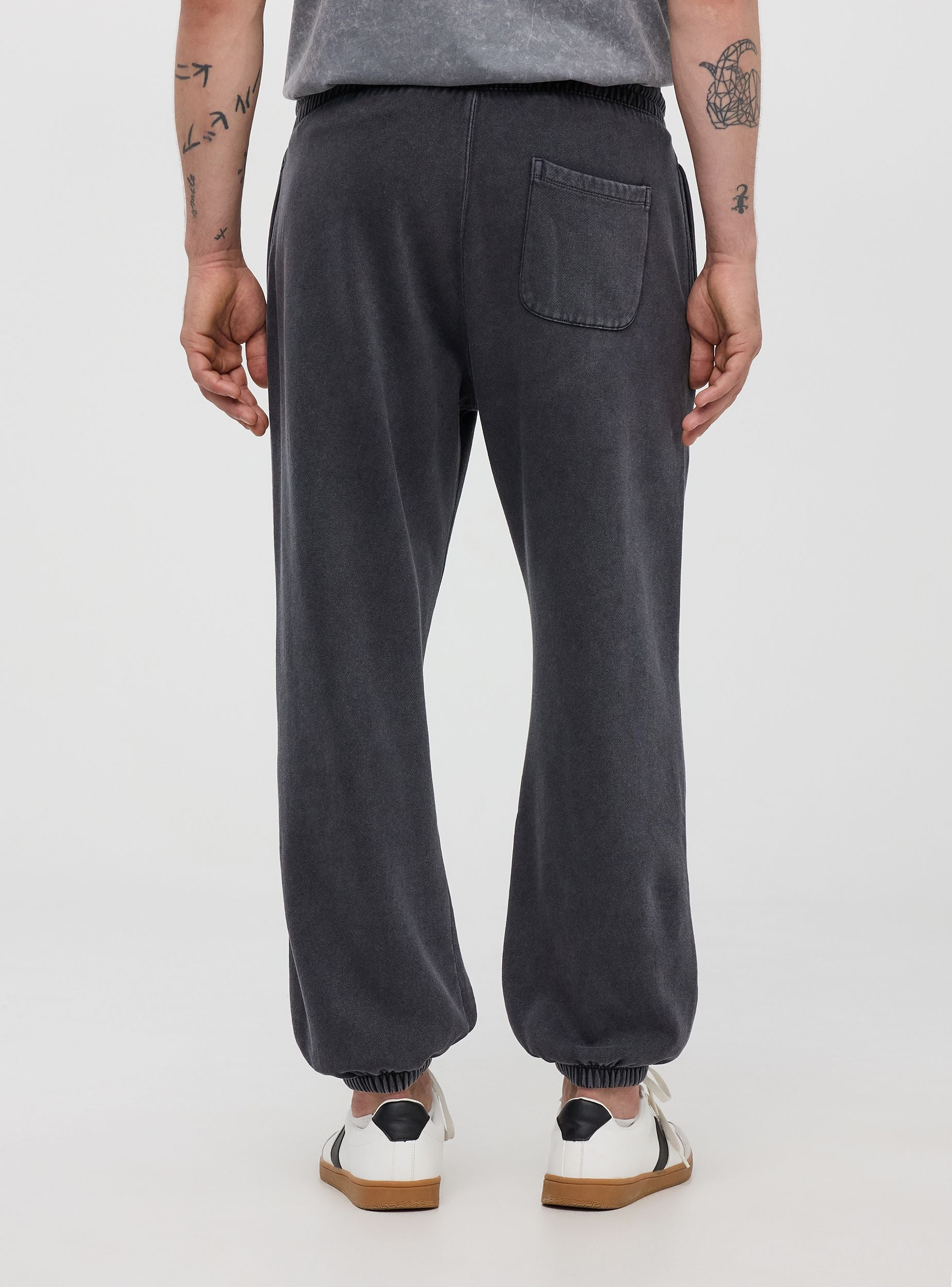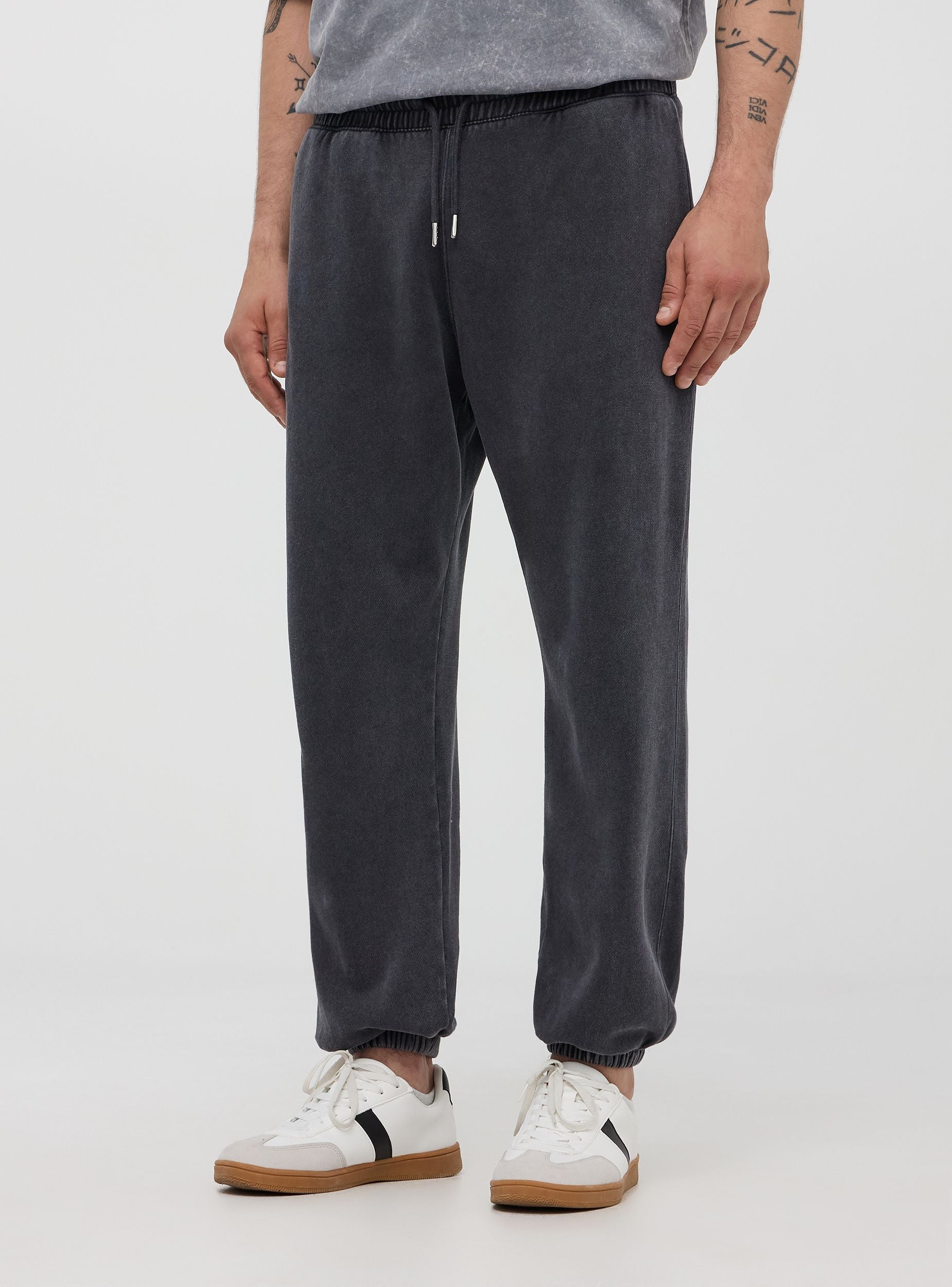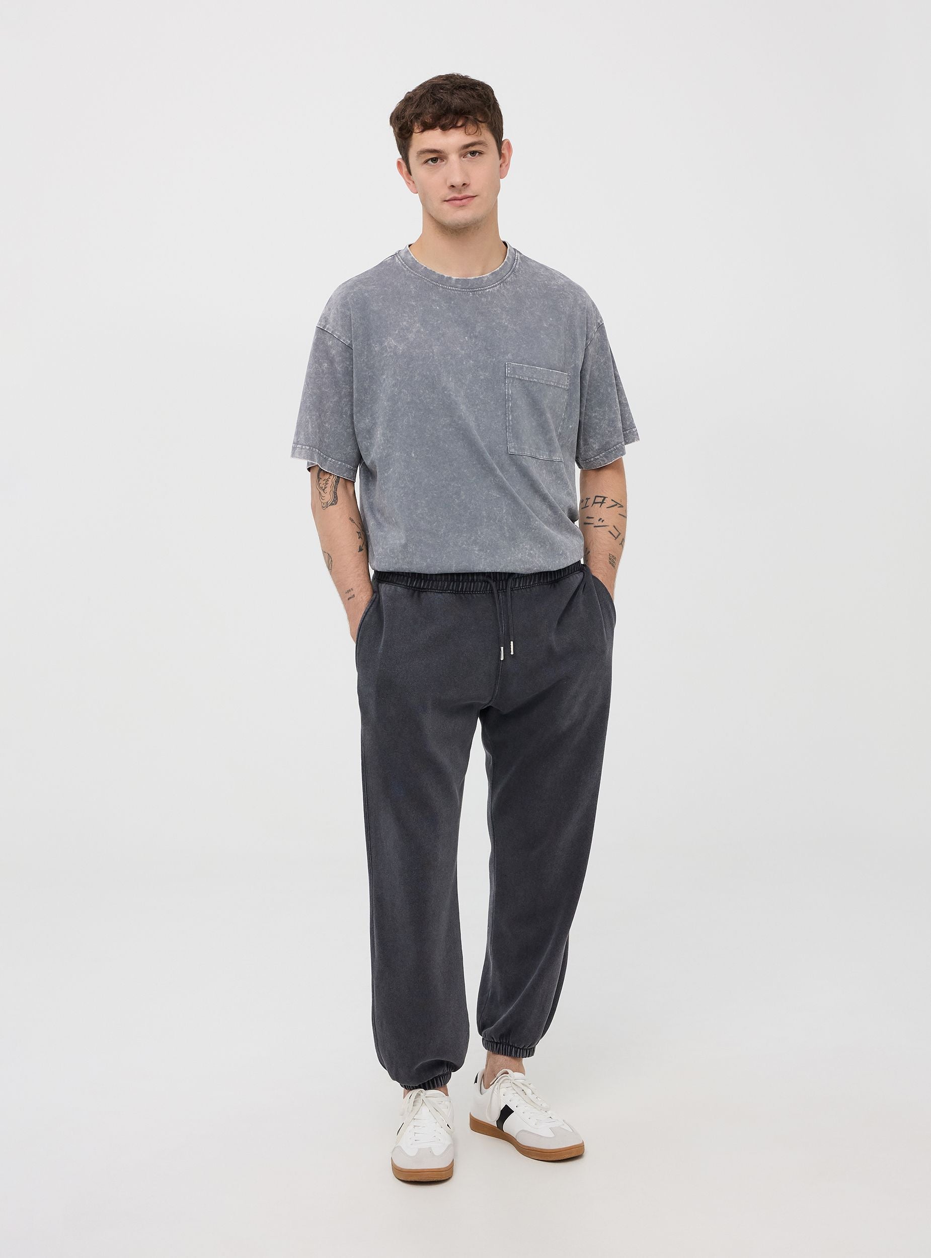 Muški jogger hlače izrađene od teškog materijala s efektom acid wash, nude ležeran i urbani izgled. Dizajn sadrži elastične detalje u struku i na gležnjevima za udobno prianjanje. Opremljene su bočnim džepovima i zatvaranjem s podesivim vezicama, idealne su za svakodnevnu neformalnu, sportsku ili smart casual upotrebu. Svestran komad savršen za slobodno vrijeme i opuštene izlaske.Detalji