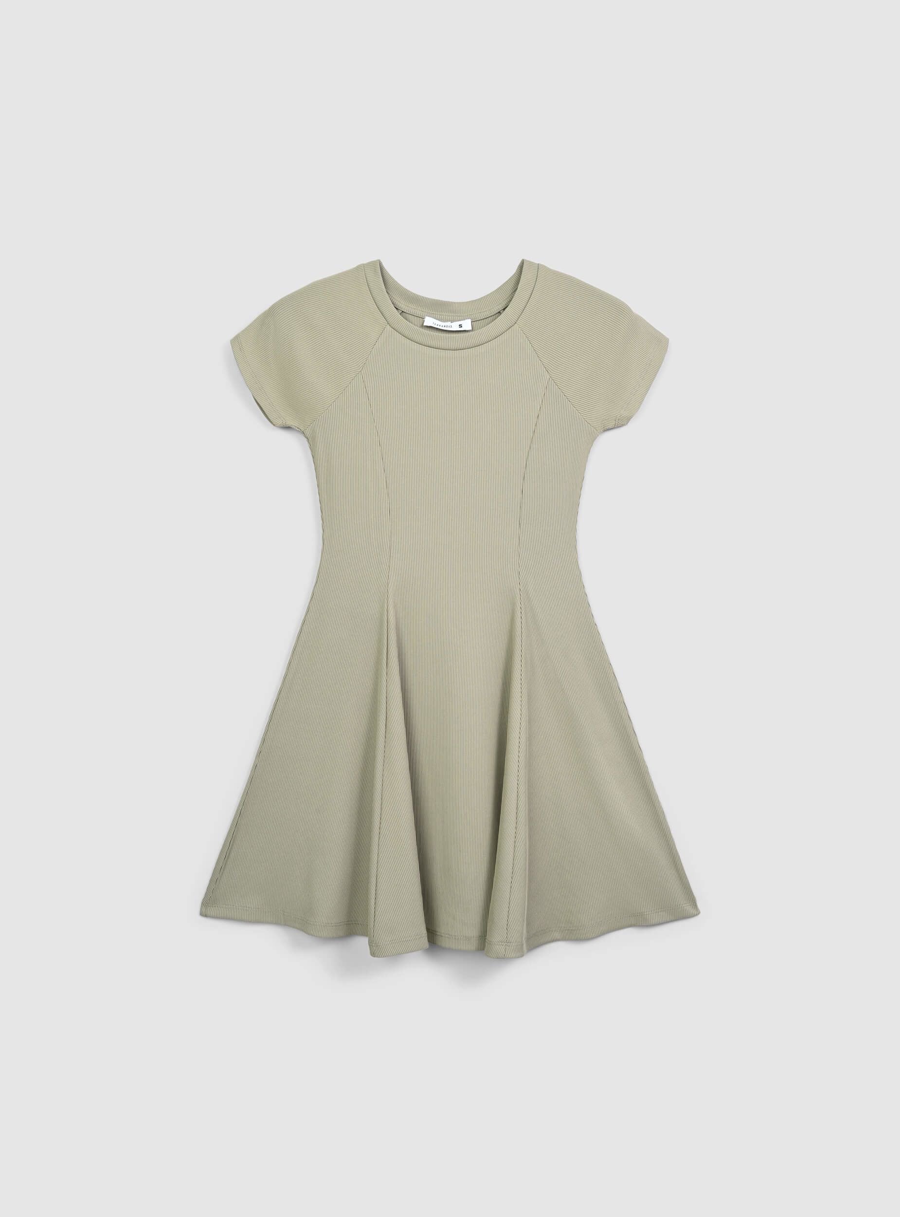 Ženska haljina minimalističkog dizajna u jednobojnoj boji, savršena za ležeran, ali ženstven izgled. Ova kratka haljina karakterizirana je skater krojem koji nježno pada preko tijela kako bi istaknuo figuru. Kratki rukavi dodaju dodir praktičnosti, idealno za ljetnu sezonu. Izrađena od elastične tkanine, osigurava udobno pristajanje prilagođavajući se lako pokretima. Svestrani i moderni komad, savršen za neformalne prilike ili za kombiniranje s odvažnijim dodacima za prepoznatljiv izgled.Detalji