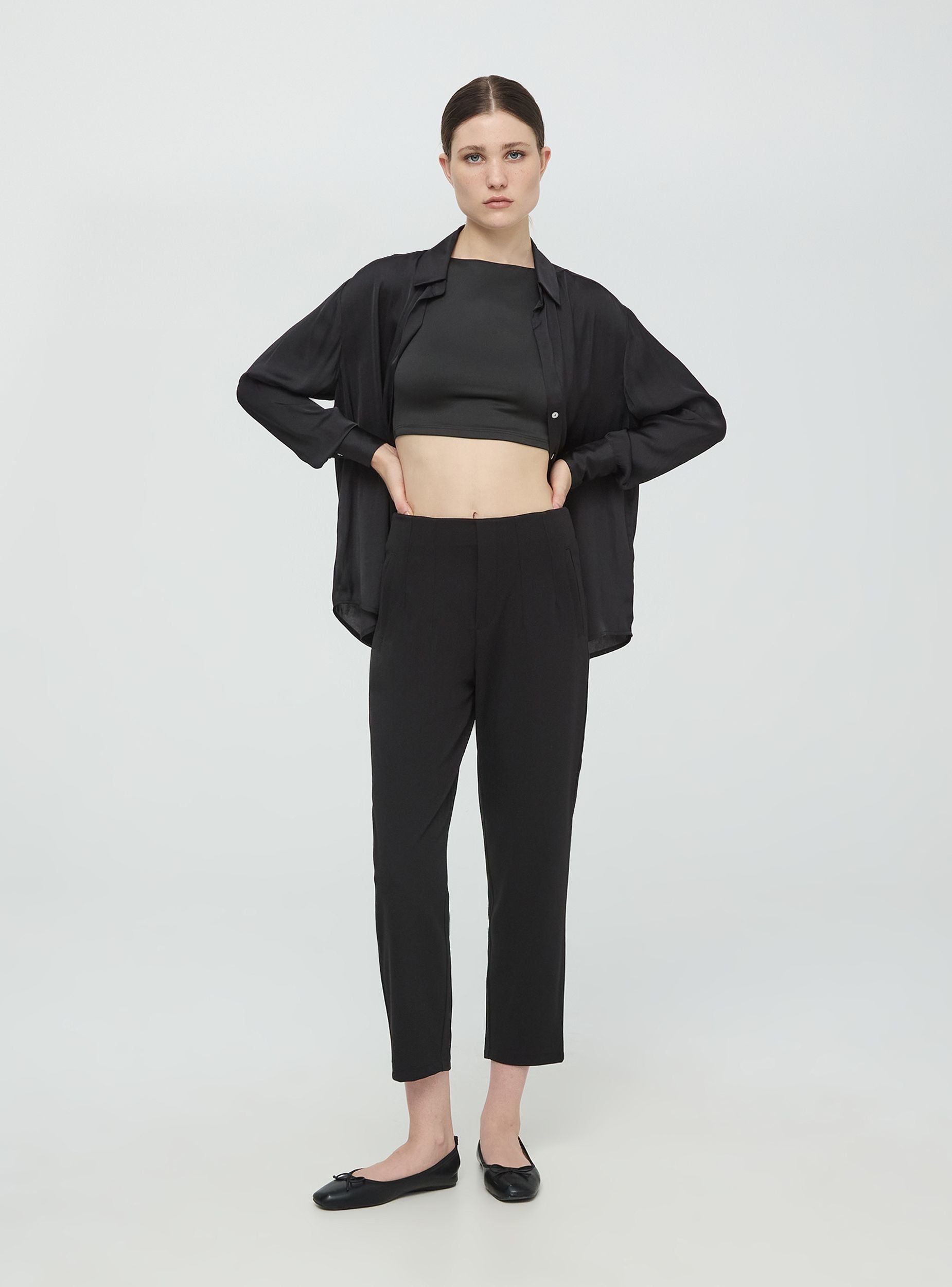 Ženski hlače izrađene su od mekog materijala i obogaćene daškom elastičnosti kako bi osigurale maksimalnu udobnost u svakom pokretu. Chino model je ukrašen plitkim naborima koji oblikuju figuru i vertikalnim džepovima za dodir praktičnosti bez odricanja od stila. Dostupne u raznim bojama, ove hlače su savršene za svaku priliku i predstavljaju idealan izbor za one koji žele spojiti eleganciju i udobnost u jednom trendi komadu.Detalji