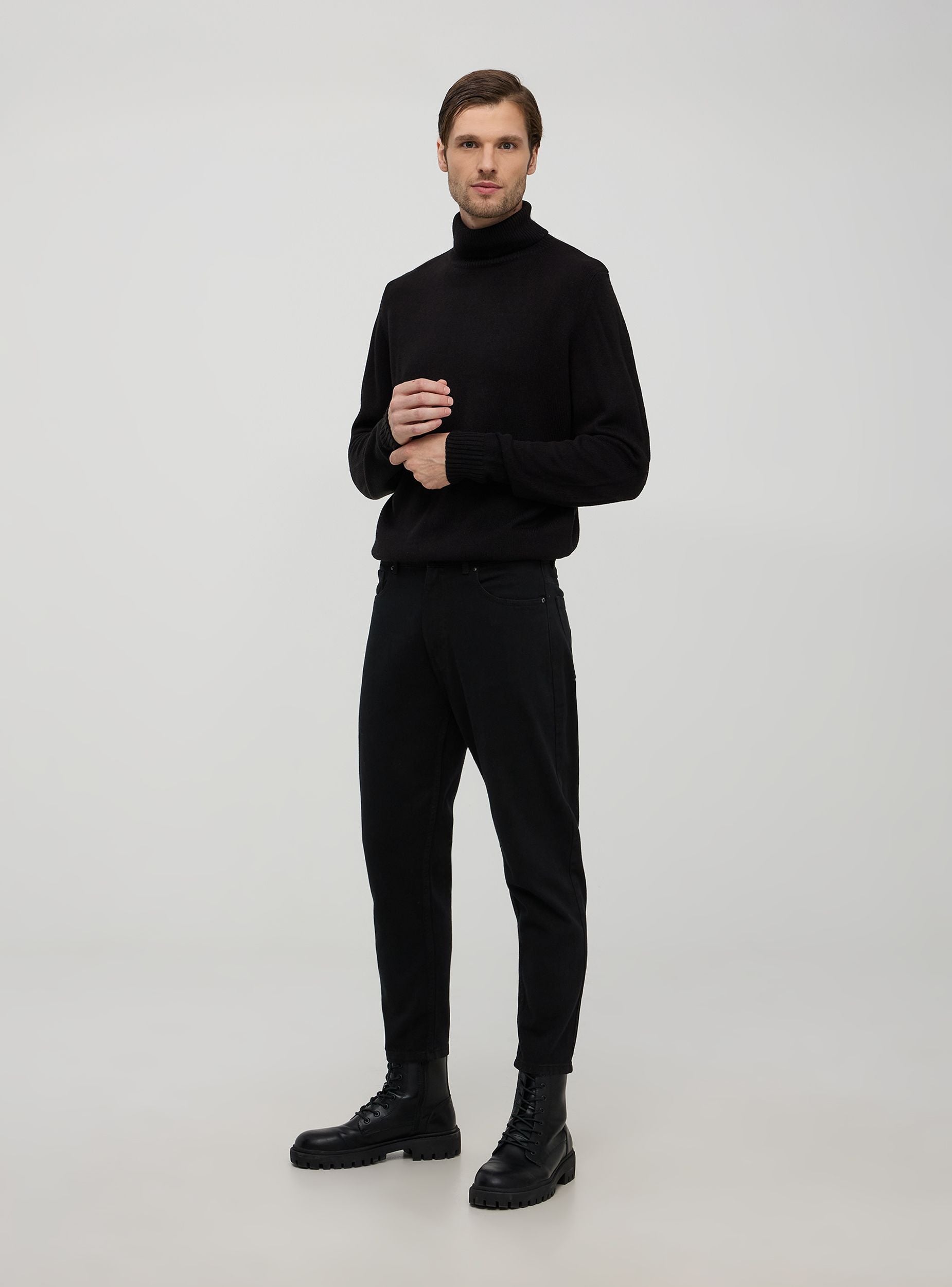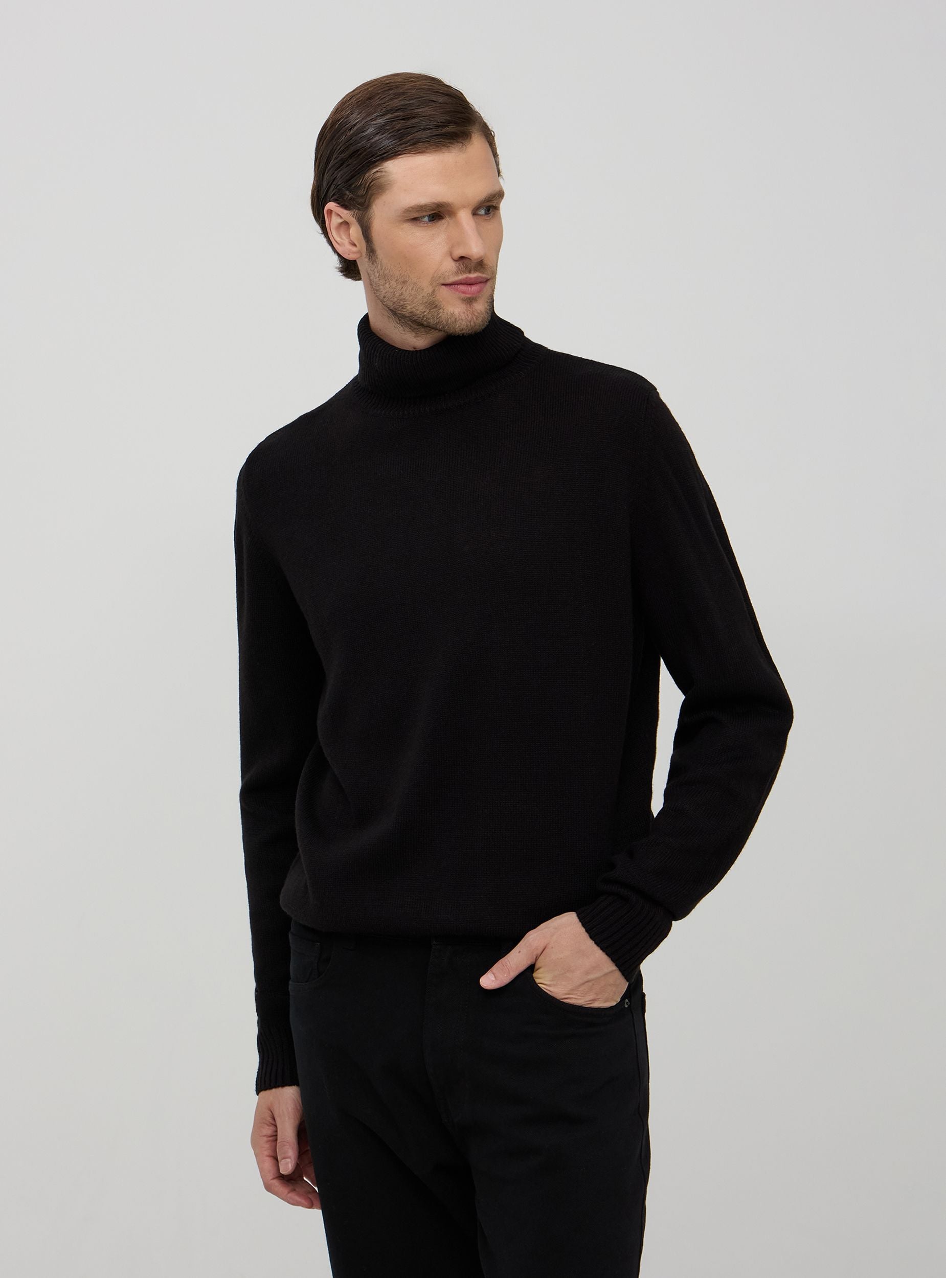Muški pulover s visokim ovratnikom, koji pruža dodatnu zaštitu od hladnoće, a istovremeno zadržava elegantan i rafiniran izgled. Dugi rukavi i rebrasti dizajn na manžetama, dnu i ovratniku dodaju dašak stila. Savršen za nošenje u ležernim i formalnim prilikama, ovaj pulover je idealan dodatak garderobi svakog muškarca koji pazi na modu. Osnovni komad za zimske sezone.Detalji