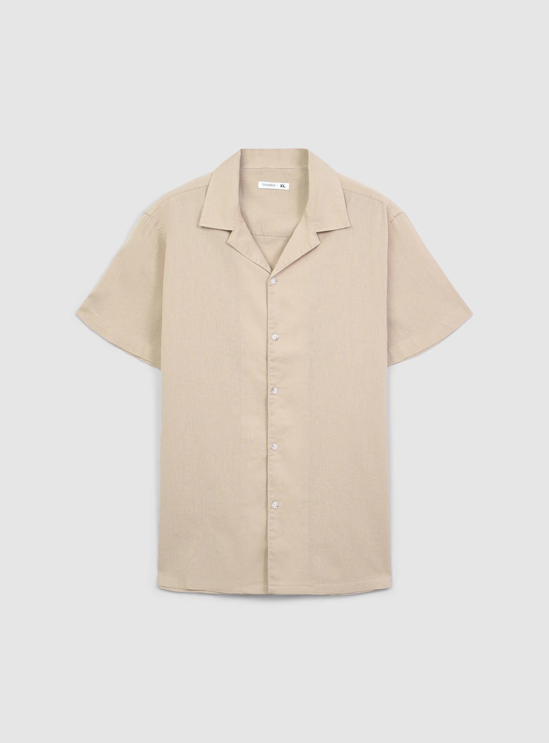 Muška košulja od pamuka s kratkim rukavima. V-izrez i zatvaranje na gumbe, idealna za svestran i dotjeran izgled. Jednostavni dizajn čini je savršenom za različite prilike, od slobodnog vremena do neformalnih događanja. Lako se kombinira s trapericama, chino hlačama ili bermudama, dodaje prepoznatljiv i rafiniran dodir odjeći. Savršena za ljetne dane.