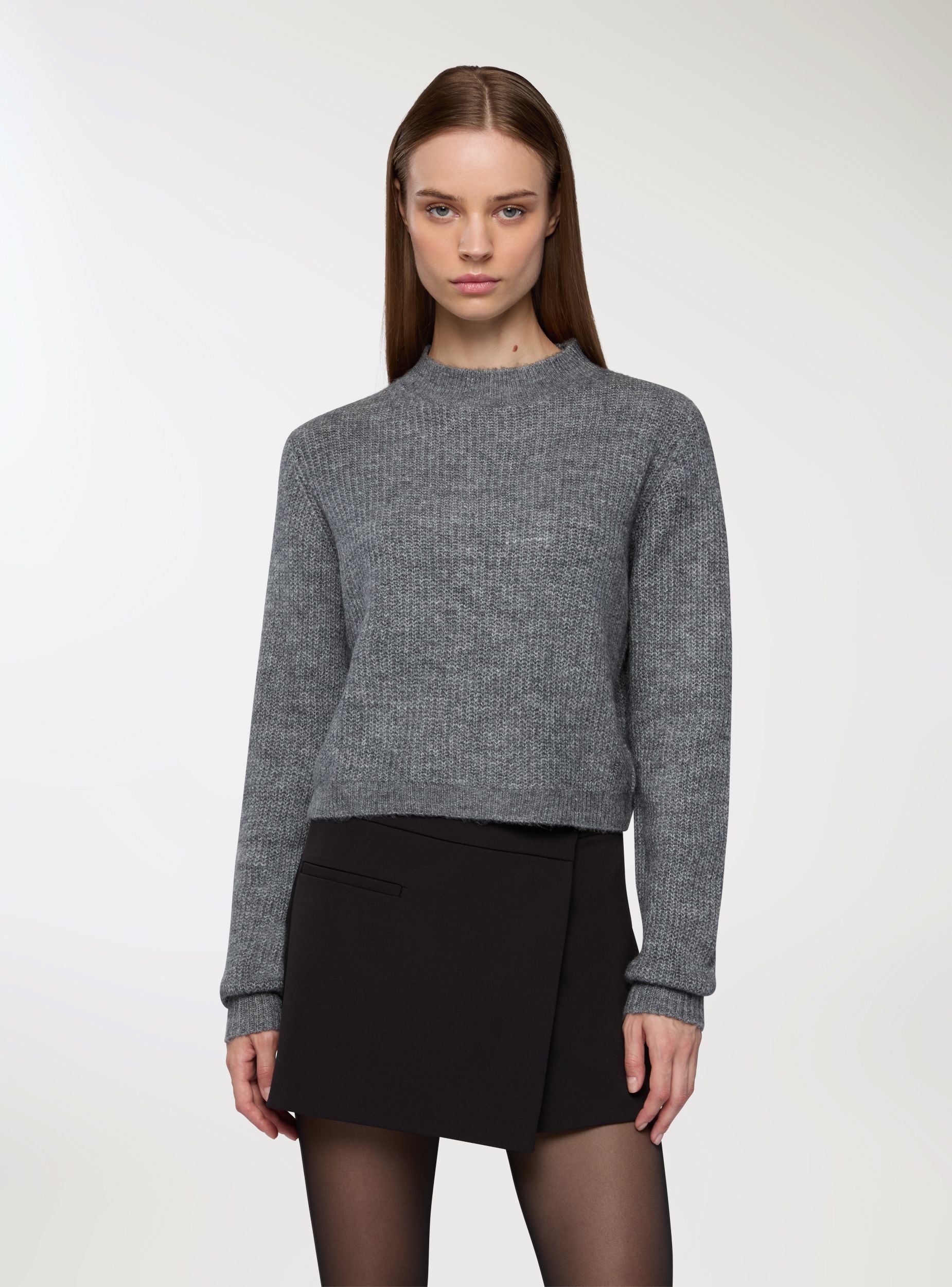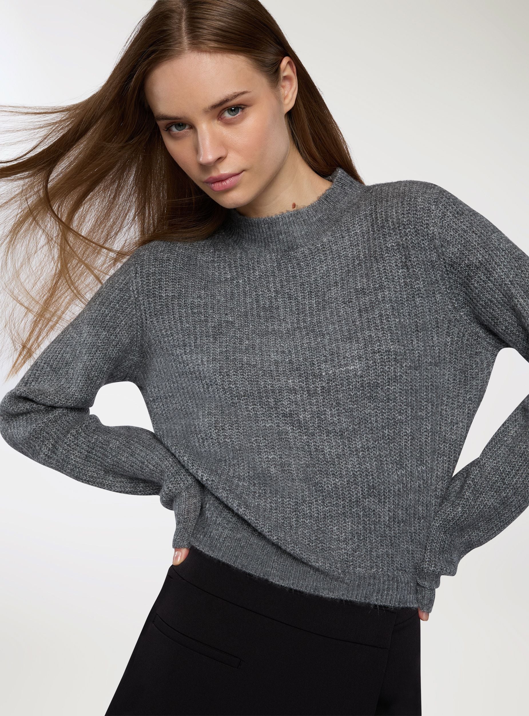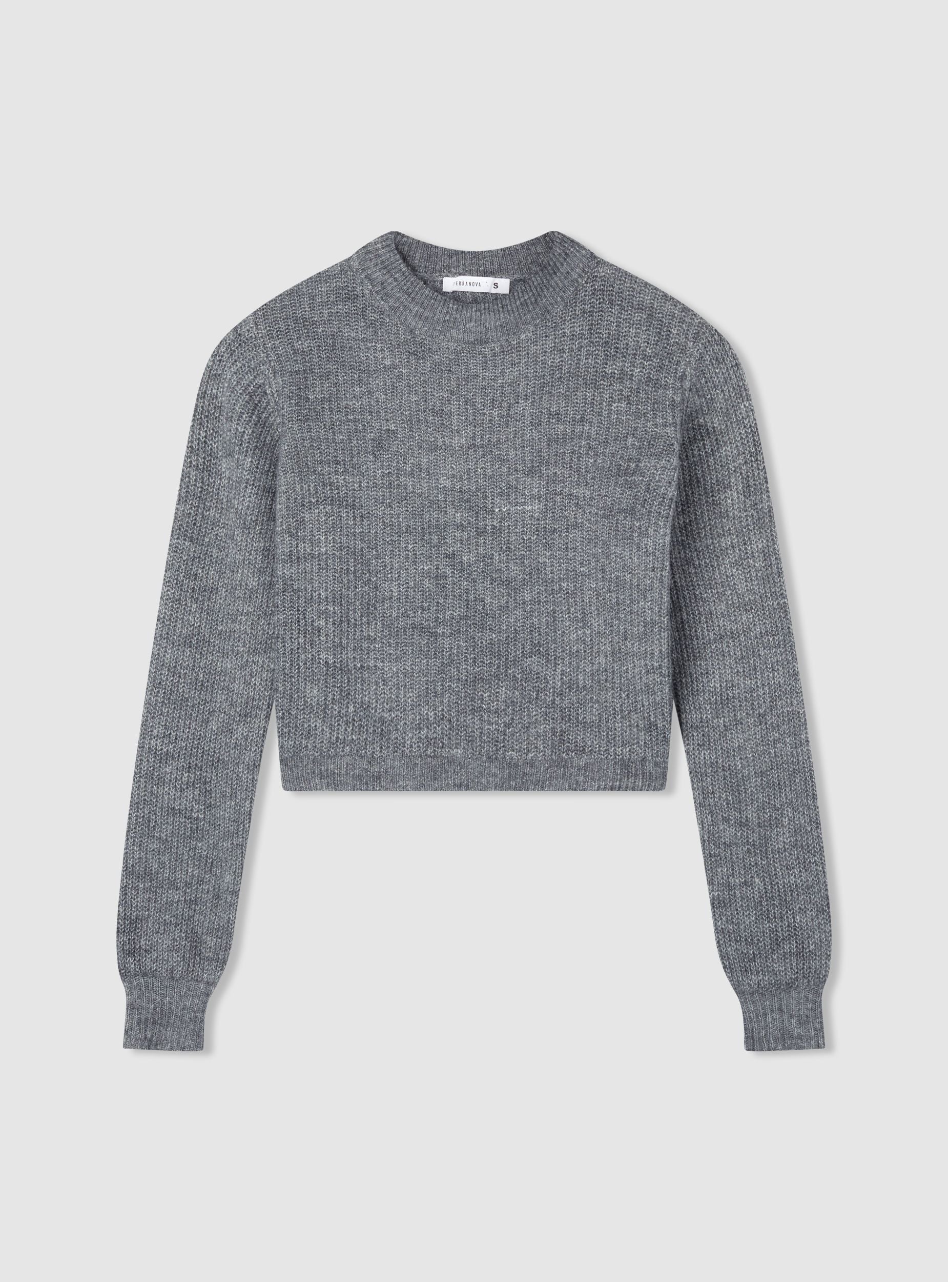 Kratki pulover sa visokim okovratnikom i rebrastim uzorkom