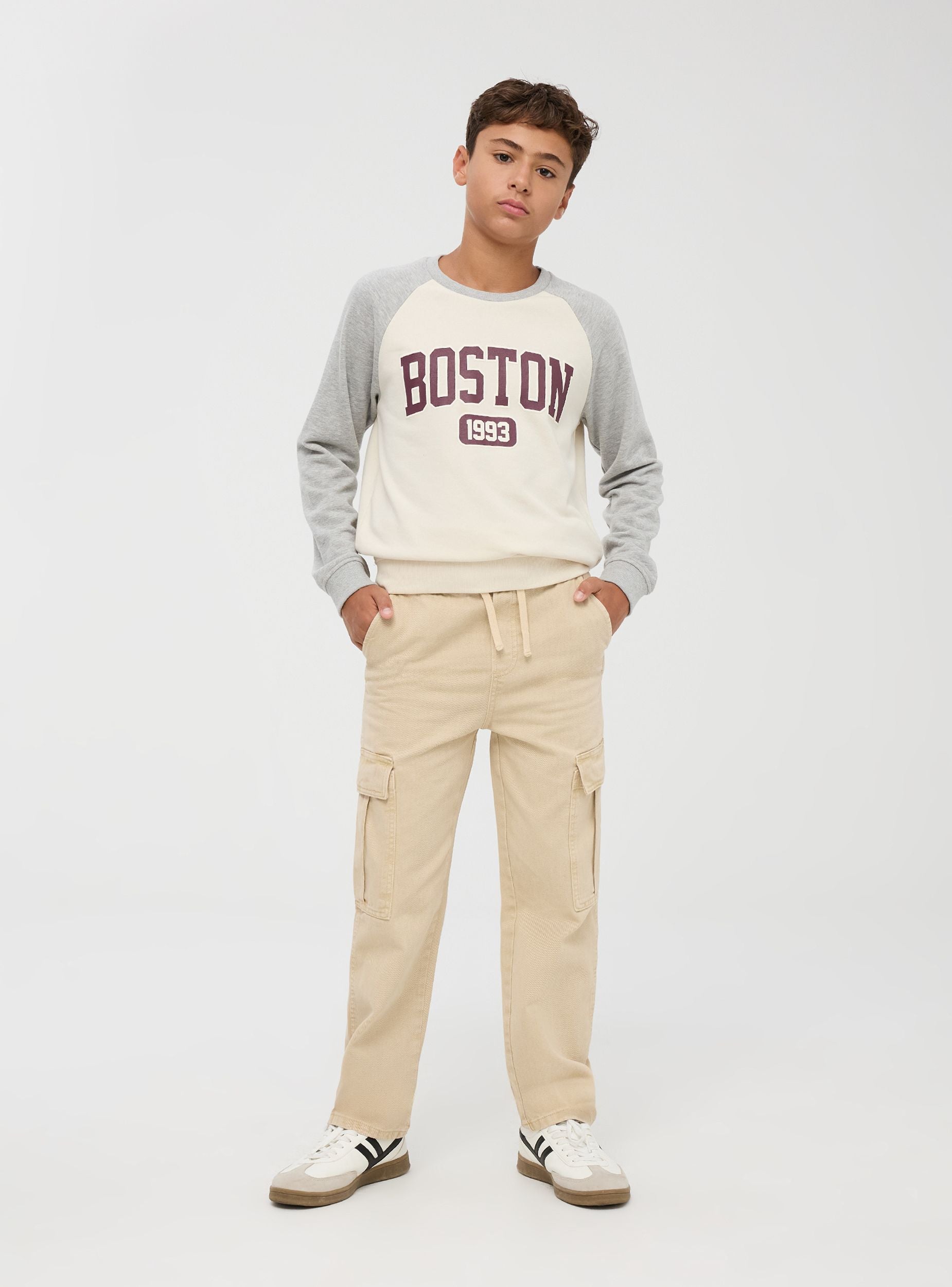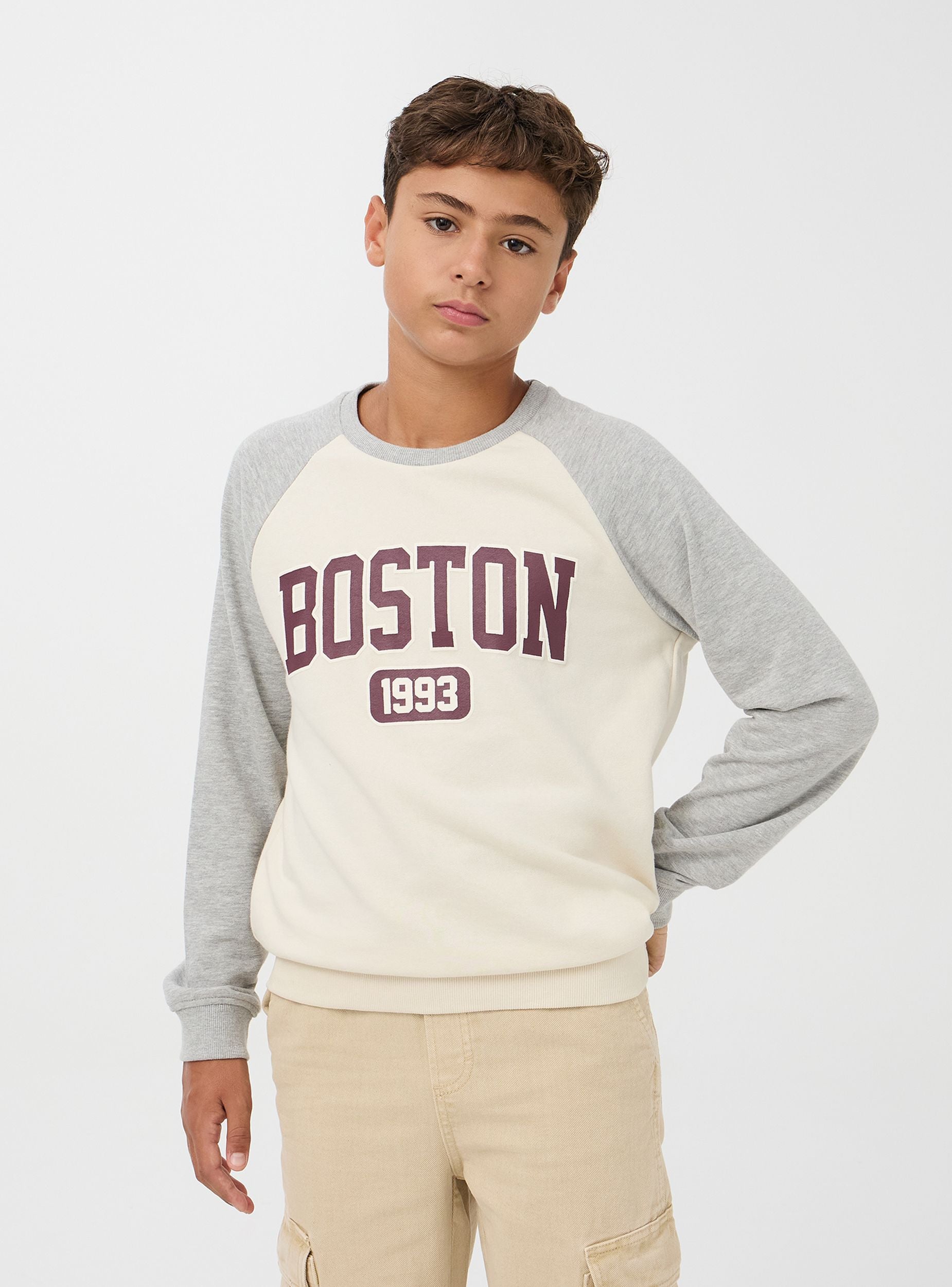 Dječja casual majica od lagane tkanine s dugim raglan rukavima. Dizajn sadrži college stil print s natpisom "Boston 1993" na prsima. Opremljena je rebrastim rubovima na manžetama, okovratniku i struku, pruža udoban kroj. Idealna za ležerne izlaske, opuštajuće dane i lagane sportske aktivnosti.Detalji
