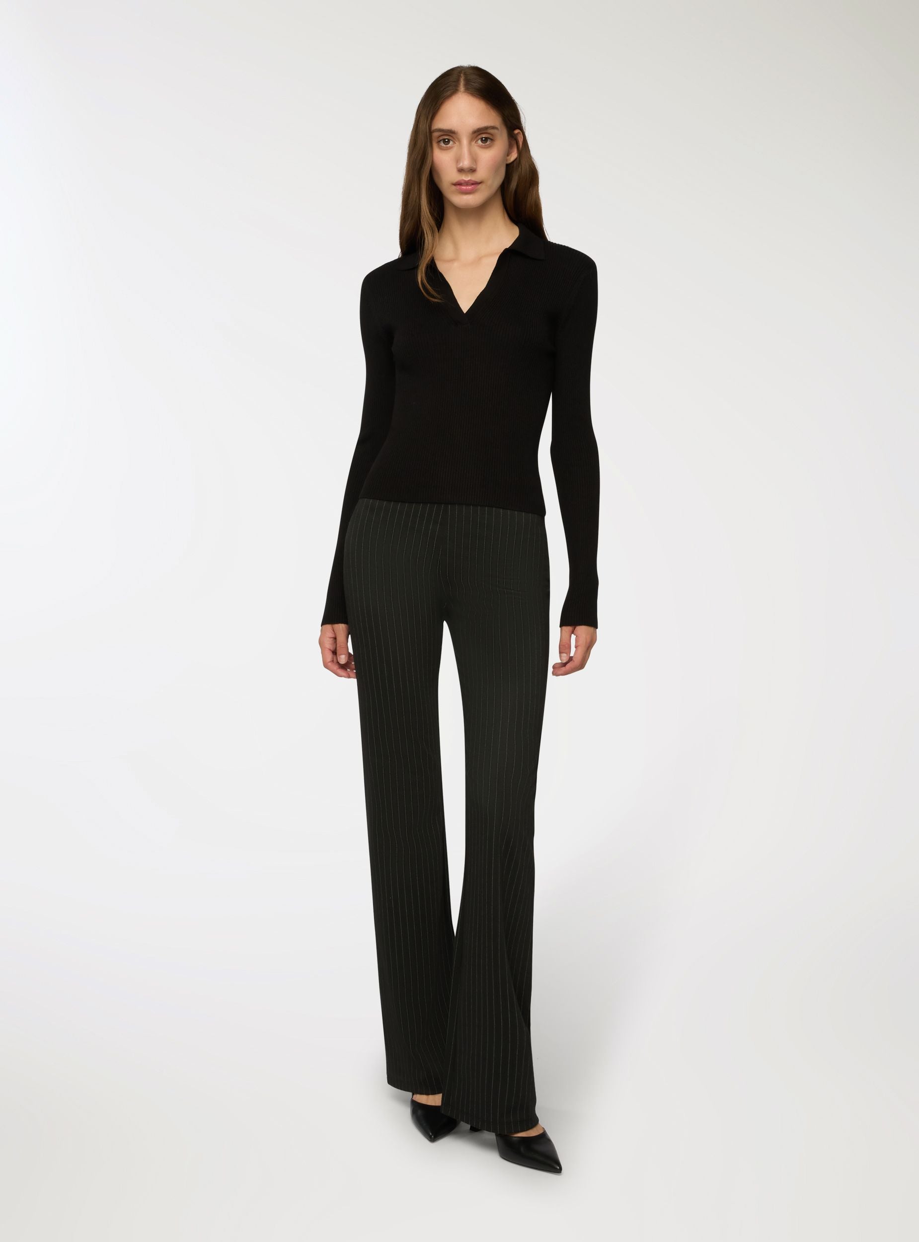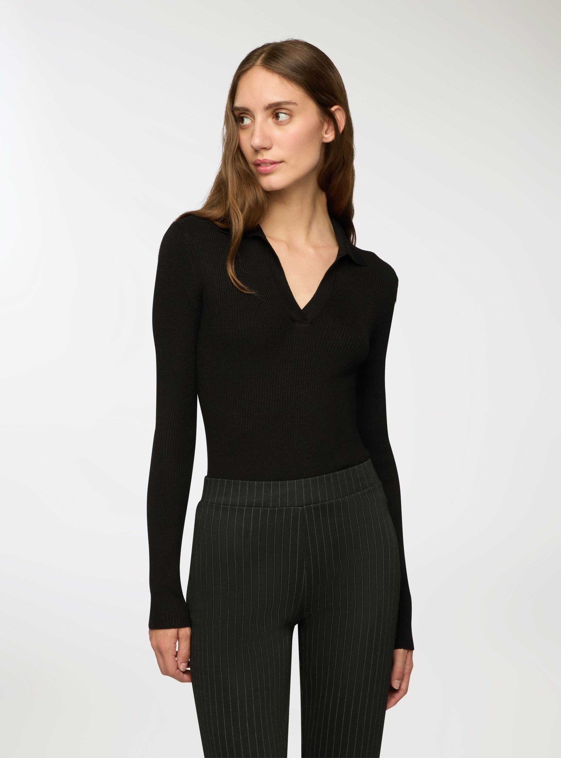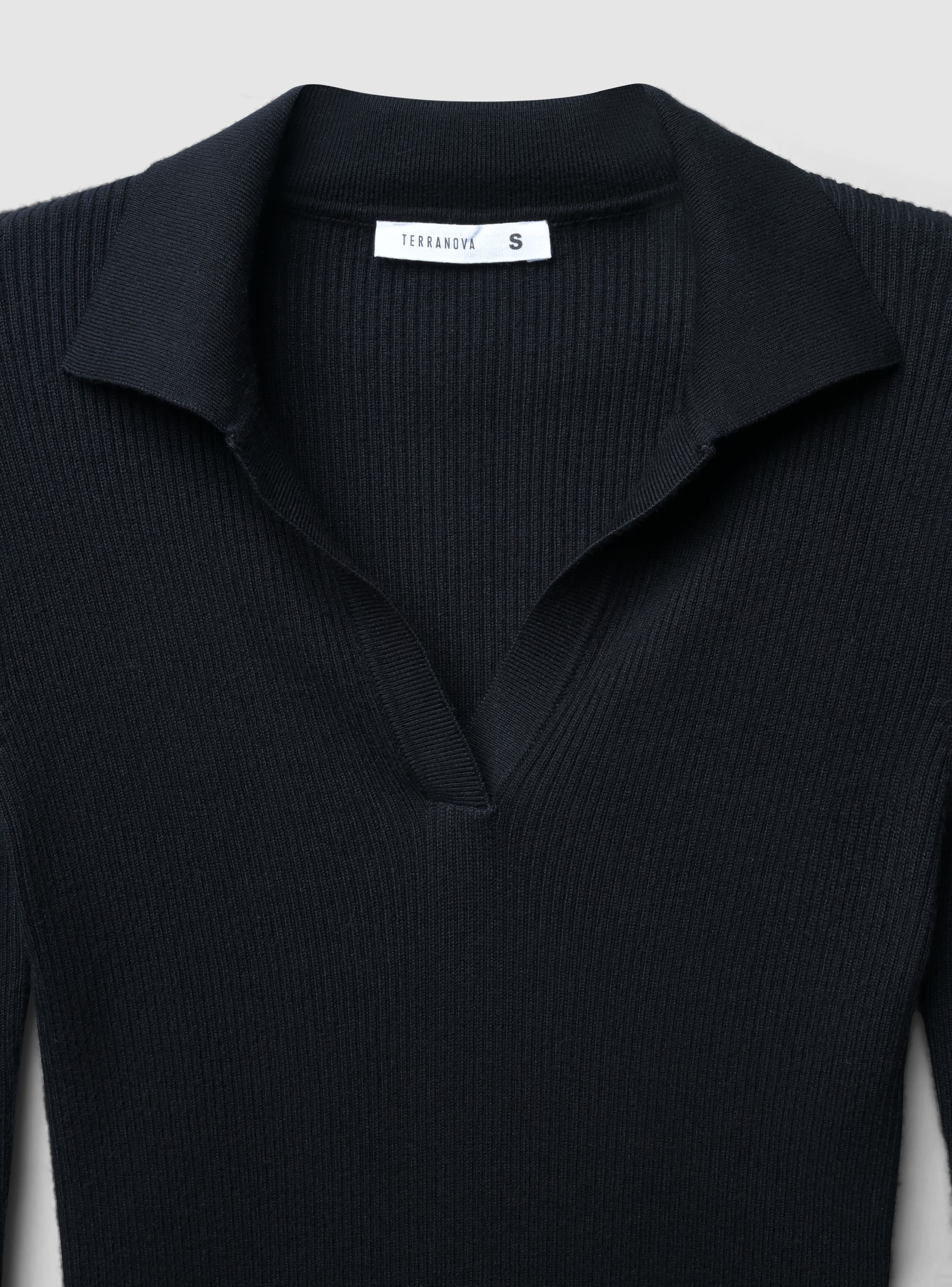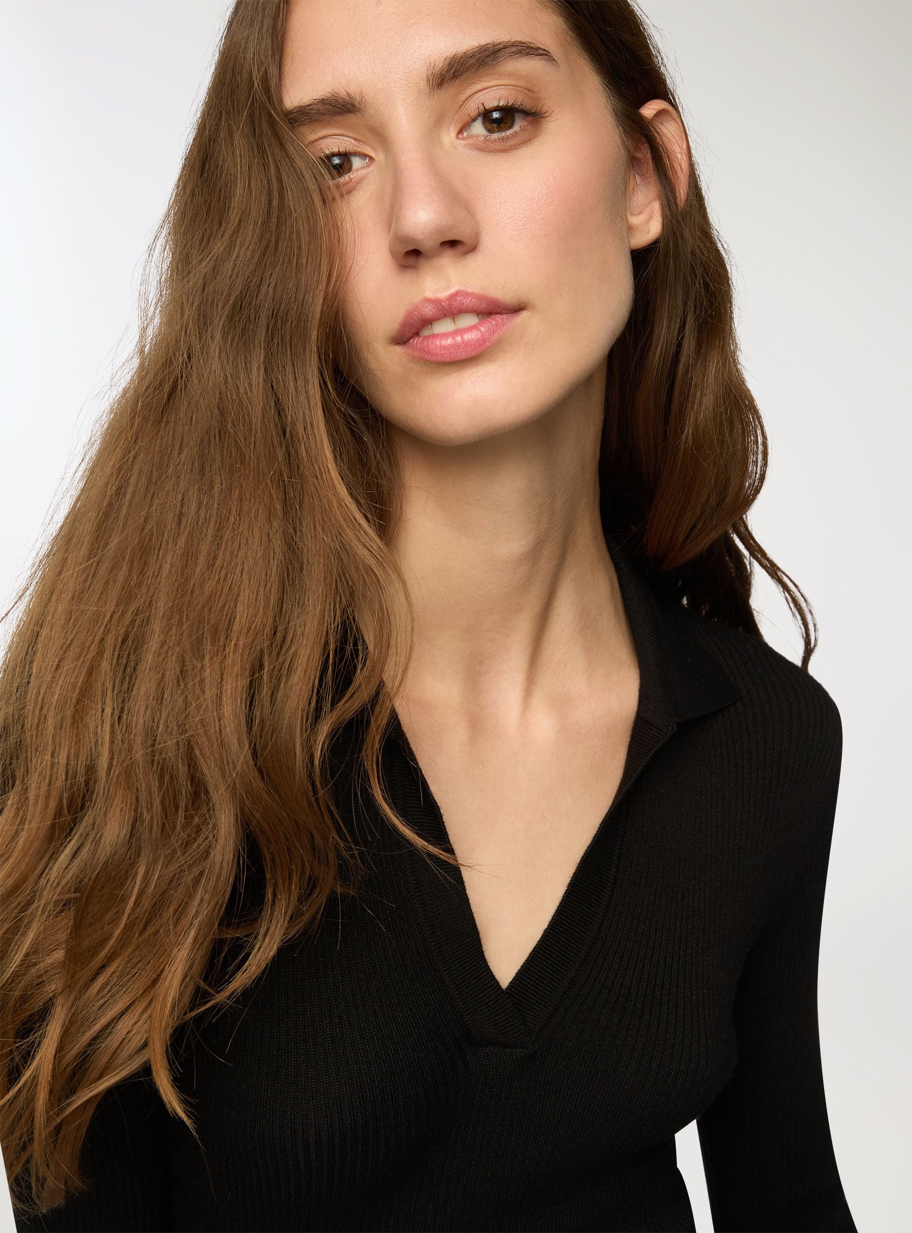 Ženska majica jednobojnog dizajna s V-izrezom. Ima duge rukave i otvoreni ovratnik koji dodaje moderan dodir. Idealna za casual kombinacije, savršeno se slaže s trapericama ili hlačama visokog struka. Uski kroj naglašava siluetu, čineći je svestranim izborom za različite prilike.Detalji