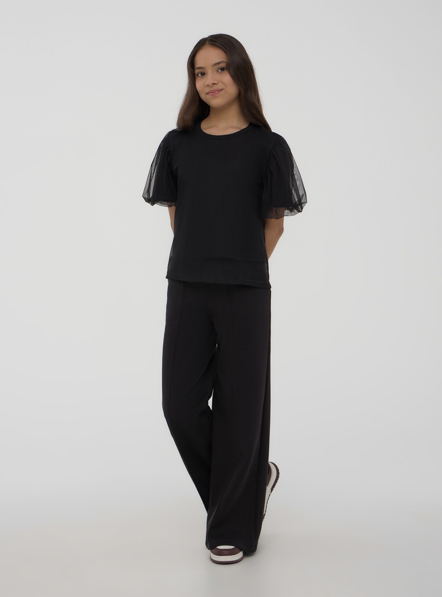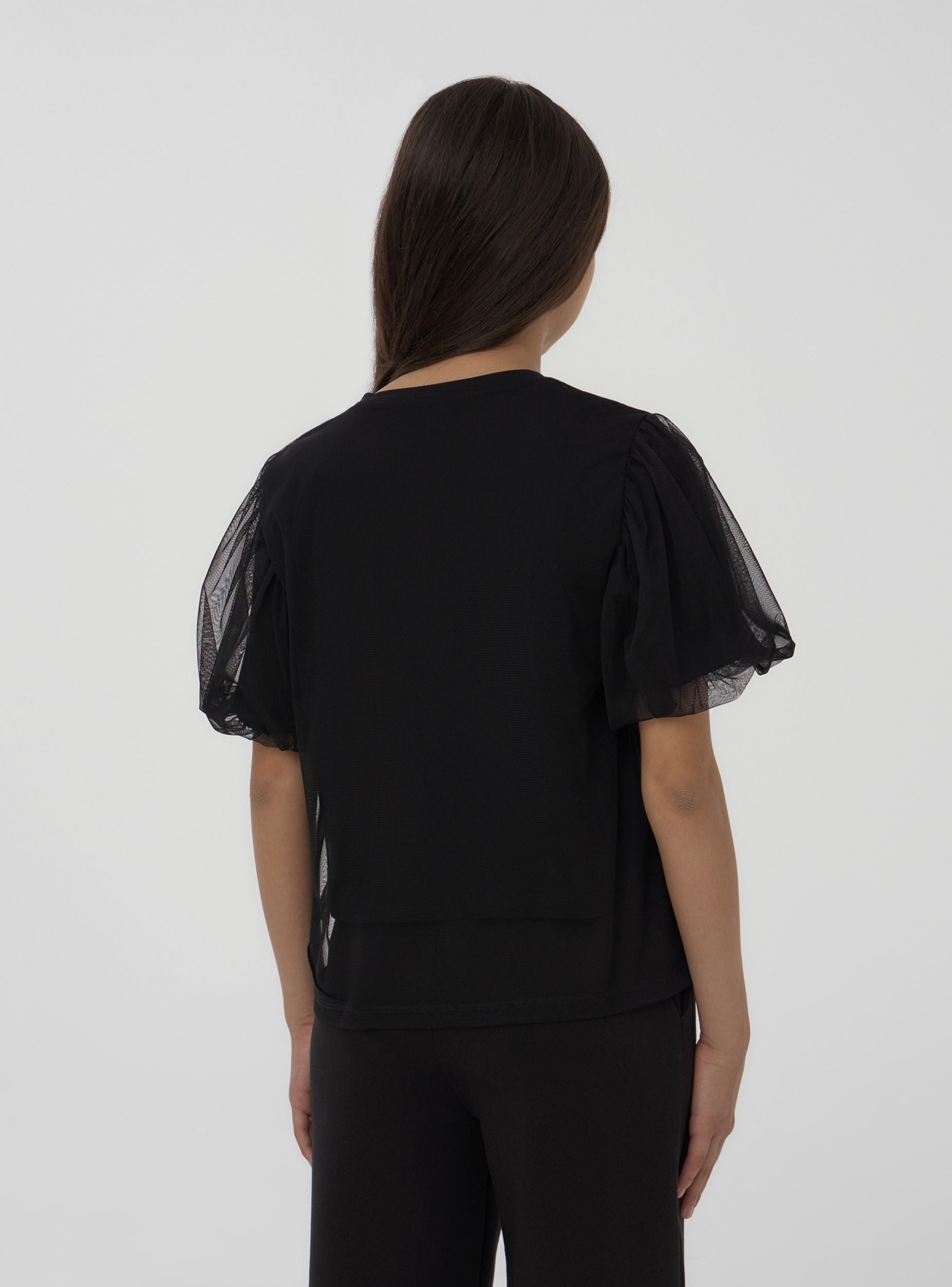Dječja majica romantičnog i modernog stila, savršena za dodavanje posebnog dodira svakodnevnim izgledima. Dizajn s kratkim rukavima od laganog tila i dvostrukog sloja daje pokret i volumen, zadržavajući udoban i svestran kroj. Idealna za kombiniranje s trapericama ili suknjama, kako za školu, tako i za posebne prilike. Komad koji spaja praktičnost i modnu sofisticiranost.Detalji