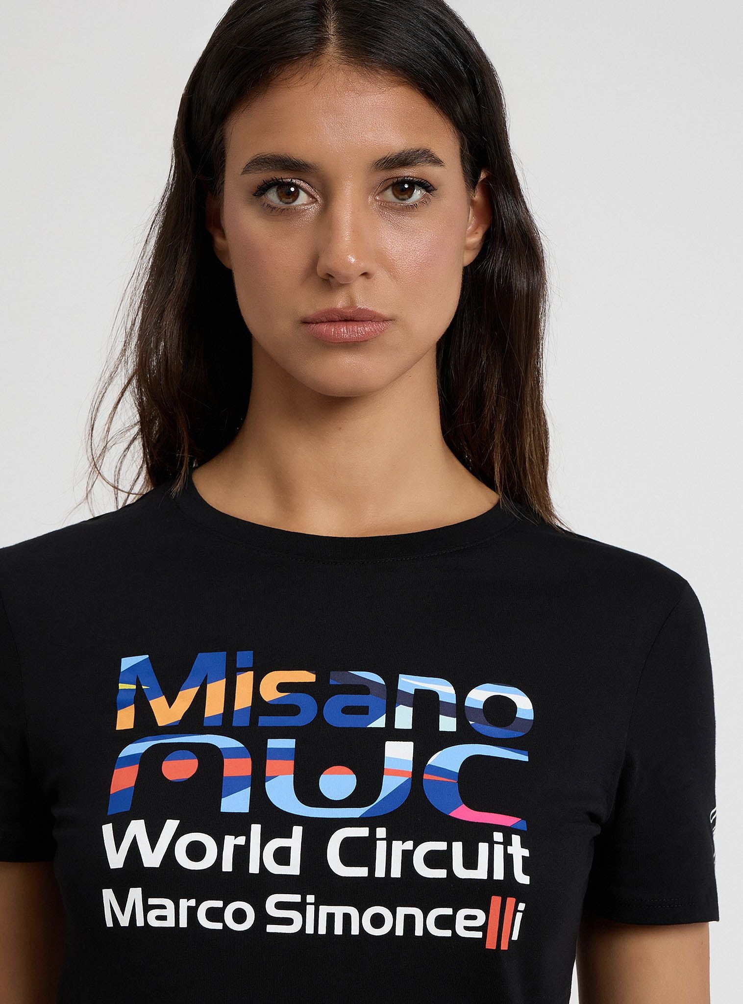 Ženska majica model s okruglim izrezom, otisak loga Misano World Circuit. Regularna prilagodba.Detalji