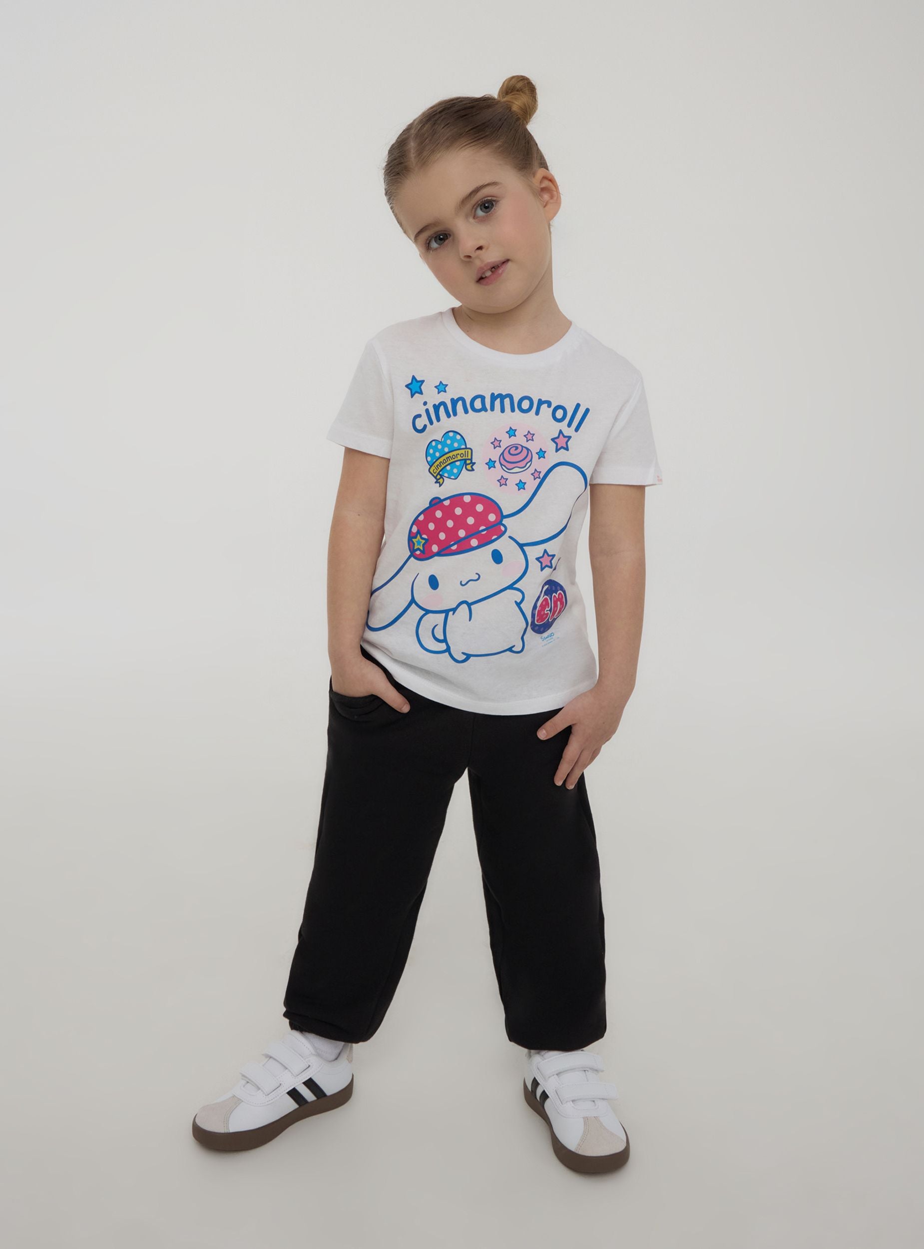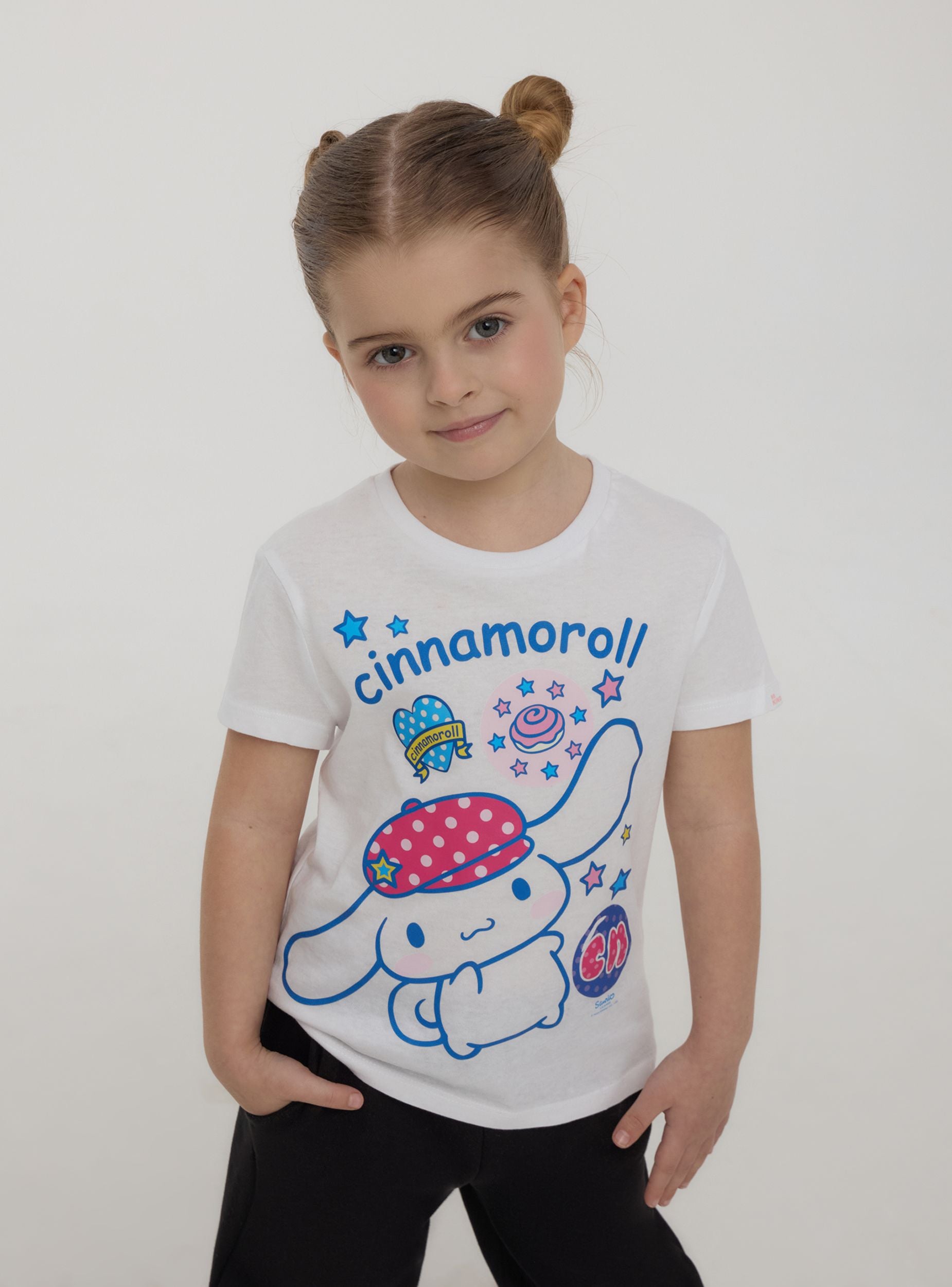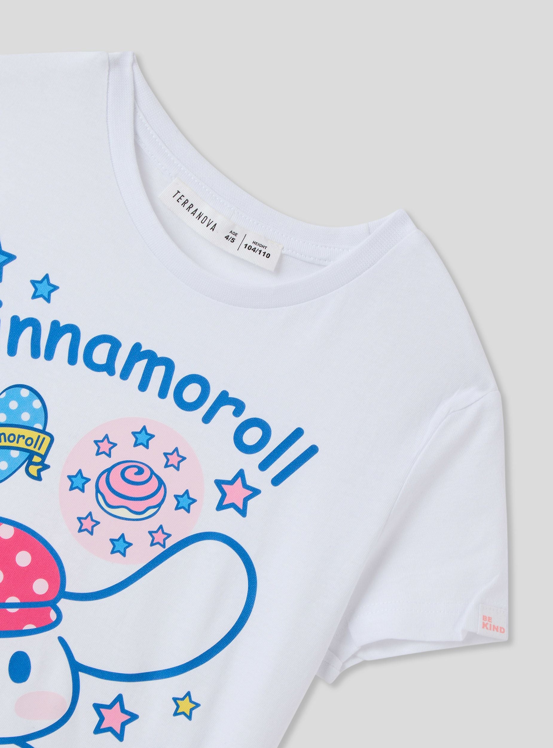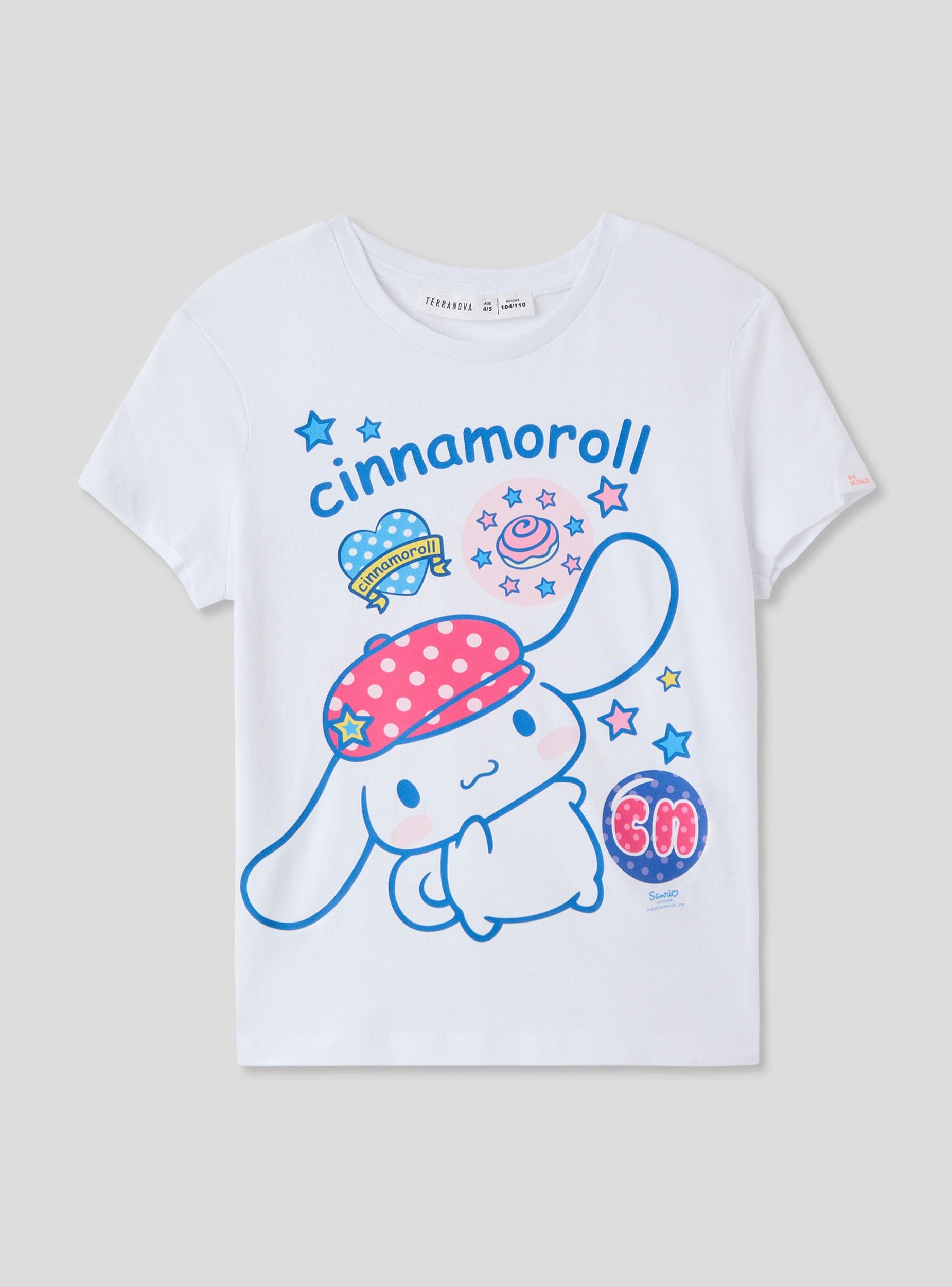 Majica za djevojčice savršena za veseli i razigrani izgled, s Cinnamoroll® printom koji dodaje dašak slatkoće i maštovitosti. Dizajn s kratkim rukavima i okruglim izrezom osigurava udobnost za svaki trenutak dana. Idealna za slobodno vrijeme, lako se kombinira s trapericama, tajicama ili suknjama za živahnu odjeću, savršenu za pokazivanje u školi ili na izlascima s prijateljicama.Detalji