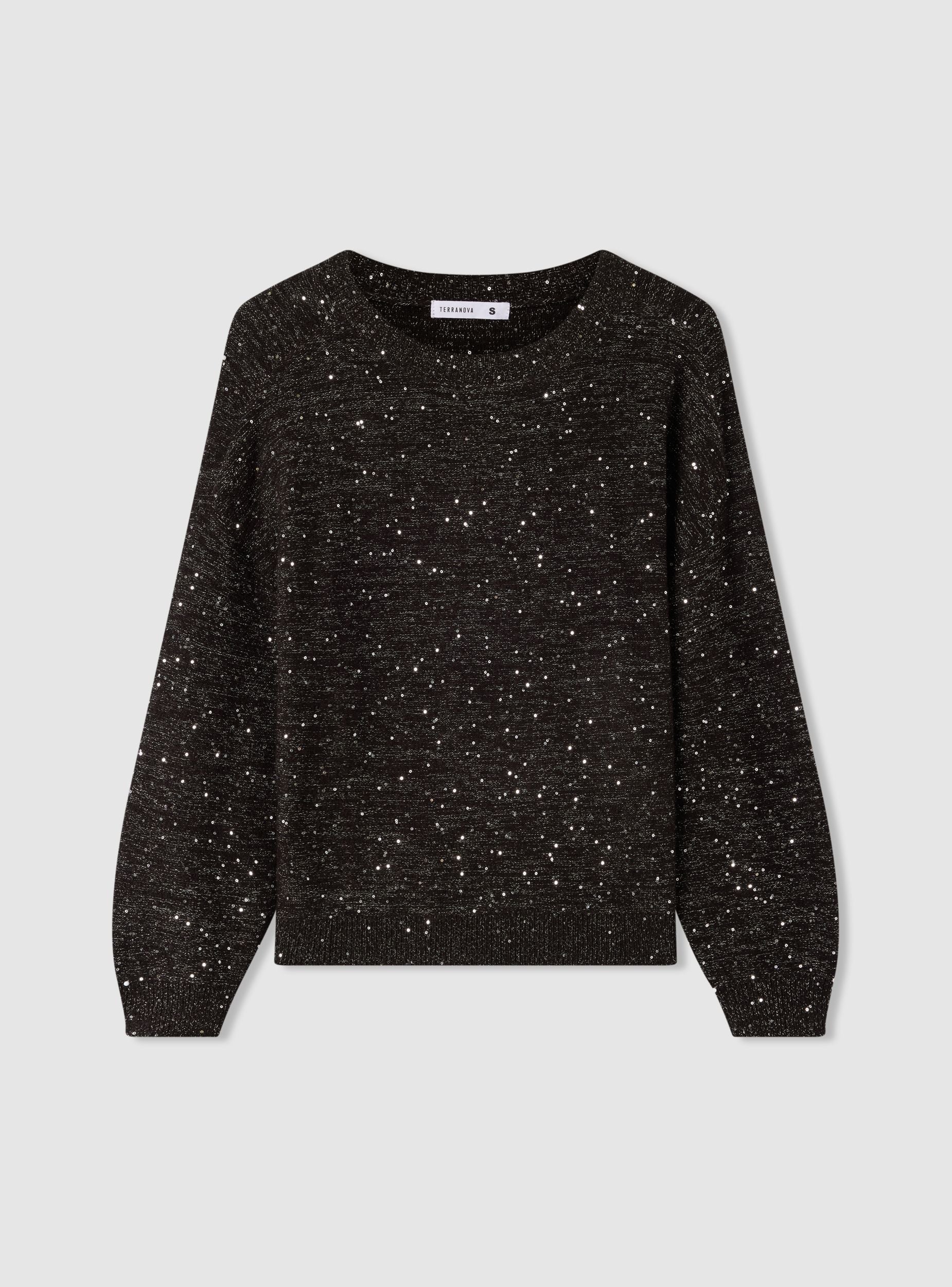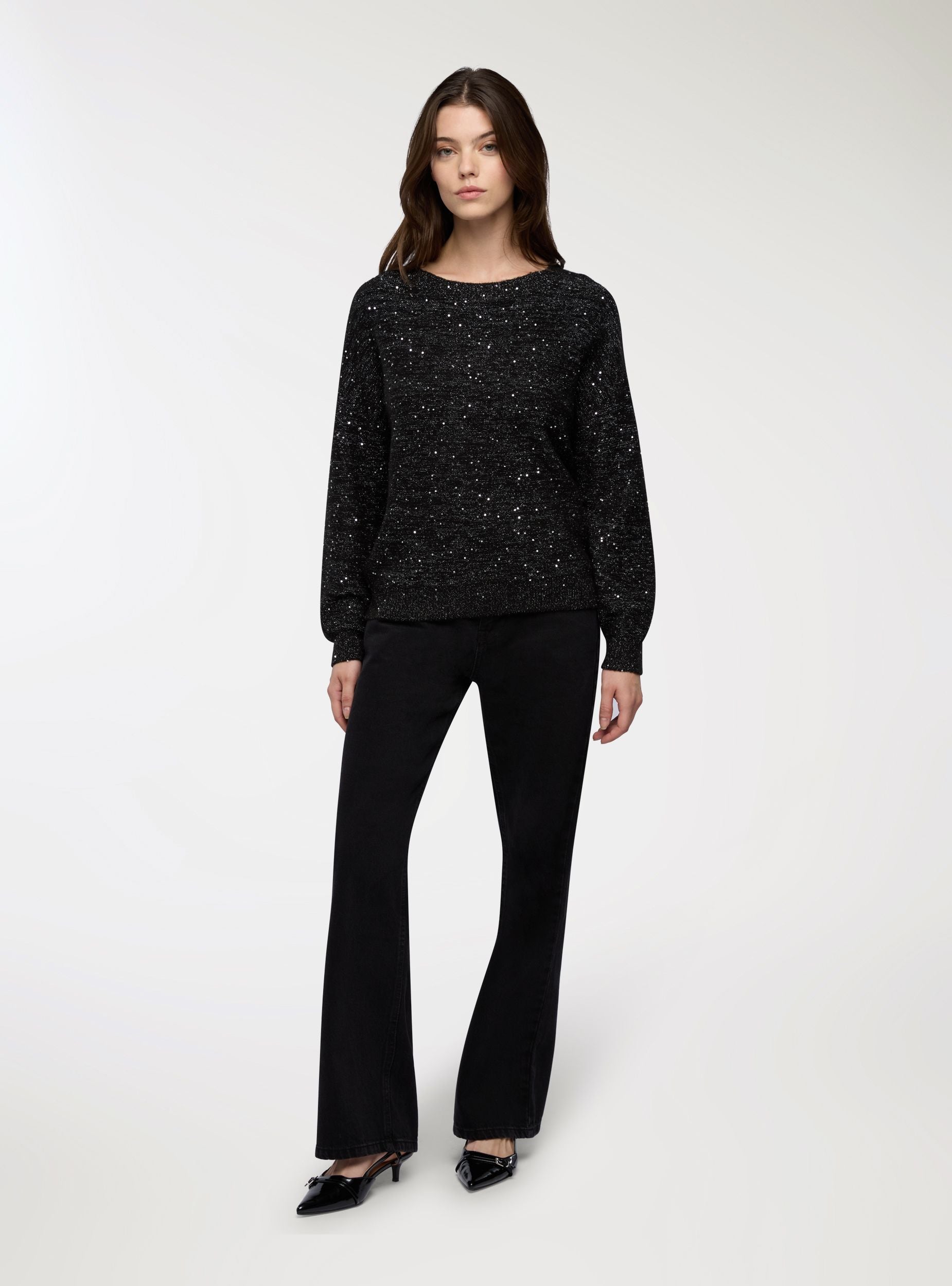 Ženska majica s širokim okruglim izrezom i dugim rukavima, ukrašena šljokicama koje dodaju dašak sjaja dizajnu. Savršena za posebne prilike ili za dodavanje elegantnog detalja casual outfitu. Udobnog i svestranog kroja, idealna za kombiniranje s hlačama ili suknjama za profinjen izgled.Detalji