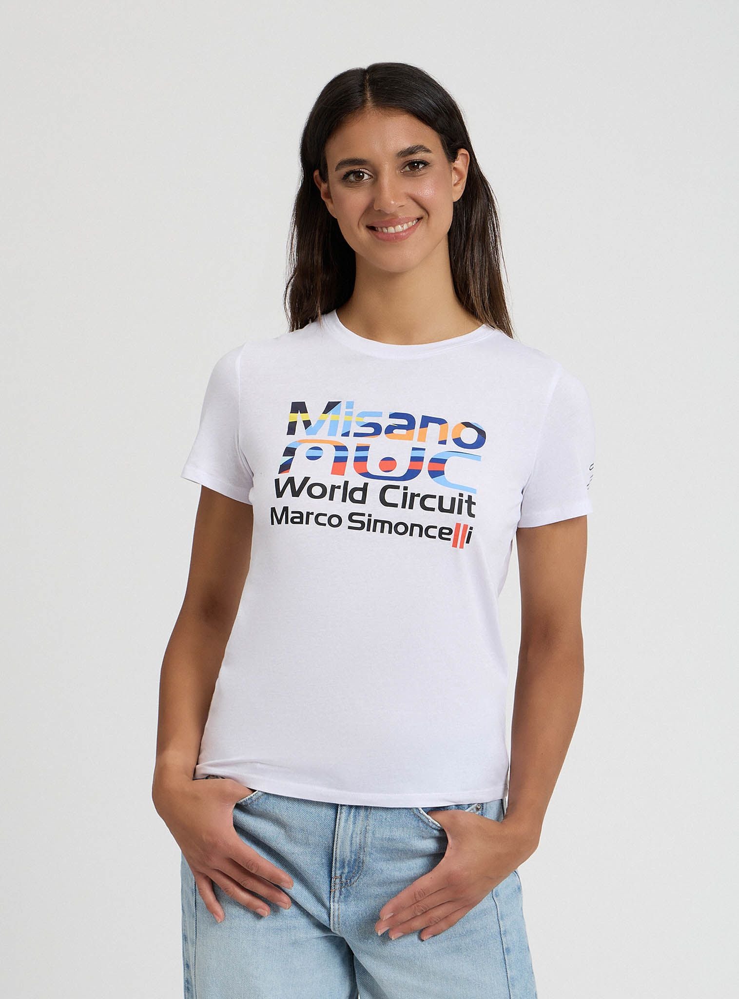 Ženska majica model s okruglim izrezom, print s logotipom Misano World Circuit. Regularna prilagodba.Detalji