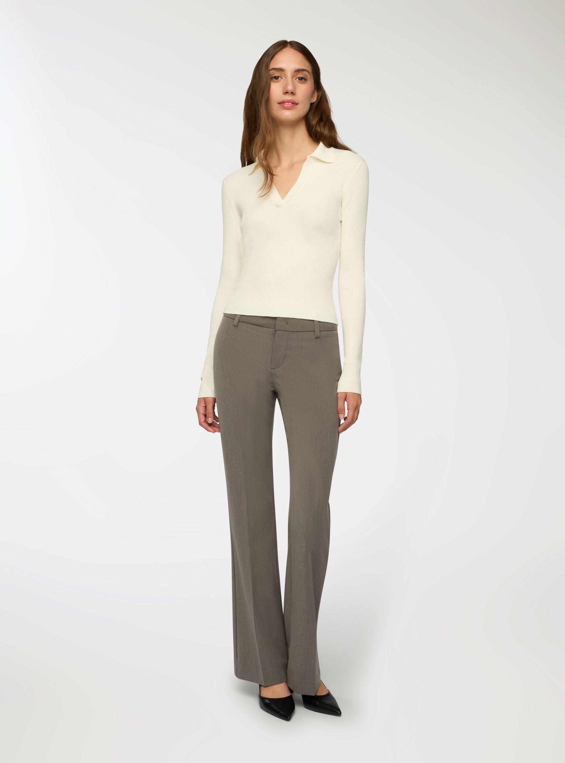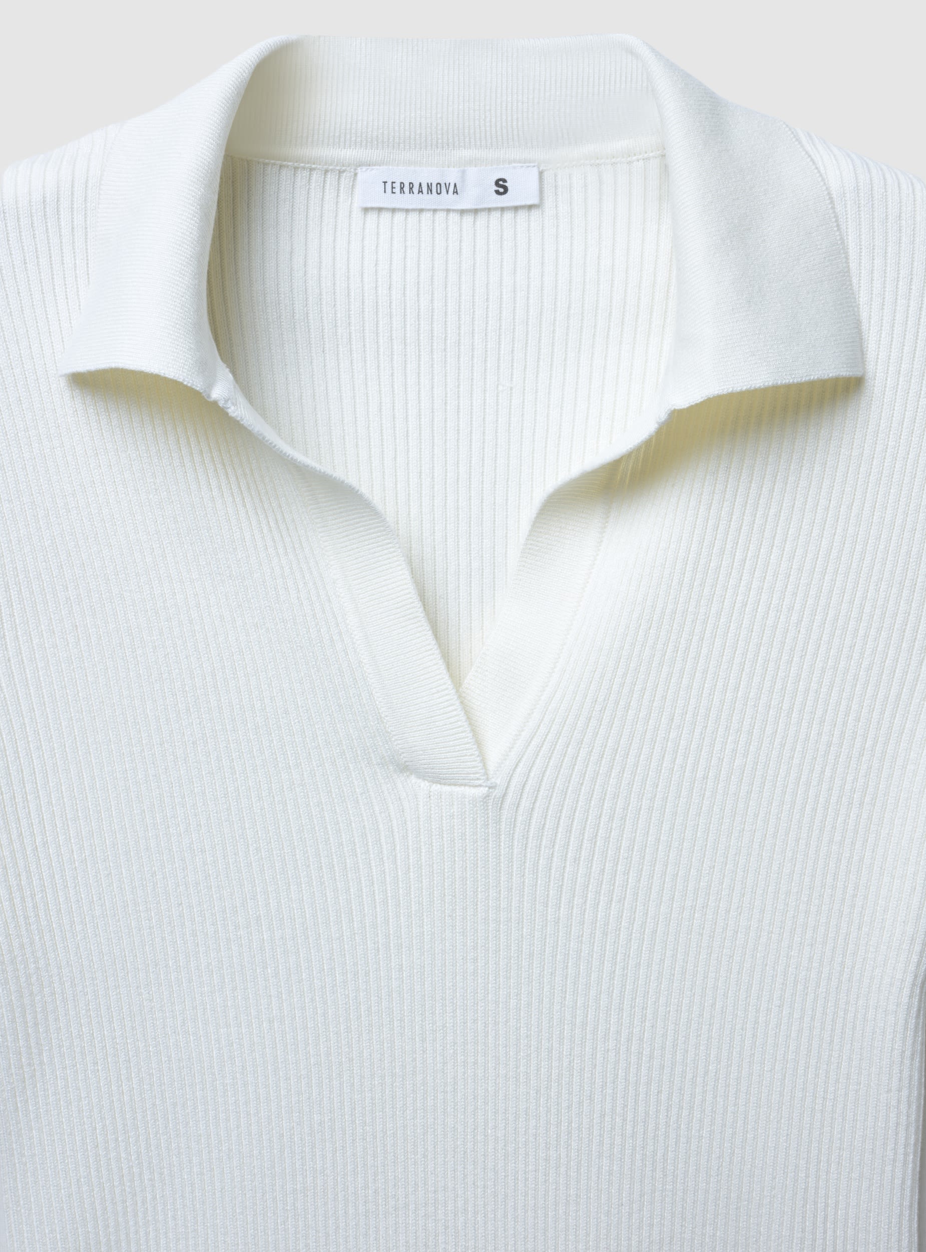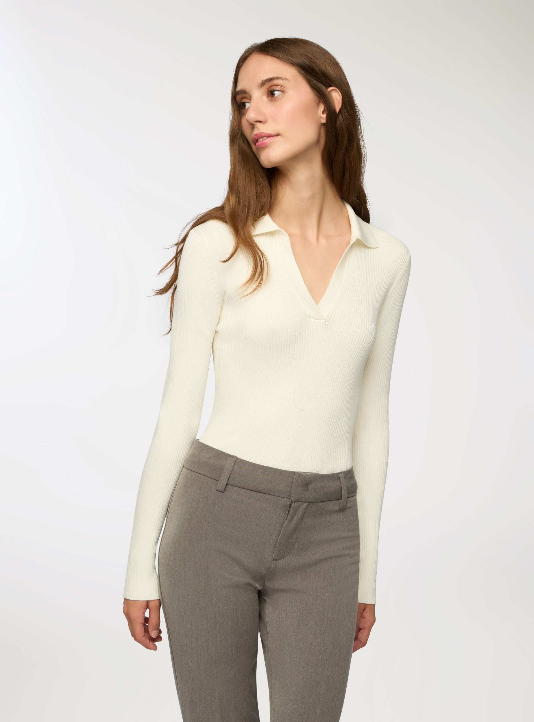 Ženska majica jednobojnog dizajna s V-izrezom. Ima duge rukave i otvoreni ovratnik koji dodaje moderan dodir. Idealna za casual kombinacije, savršeno se slaže s trapericama ili hlačama visokog struka. Priljubljeni kroj ističe siluetu, čineći je svestranim izborom za razne prilike.Detalji