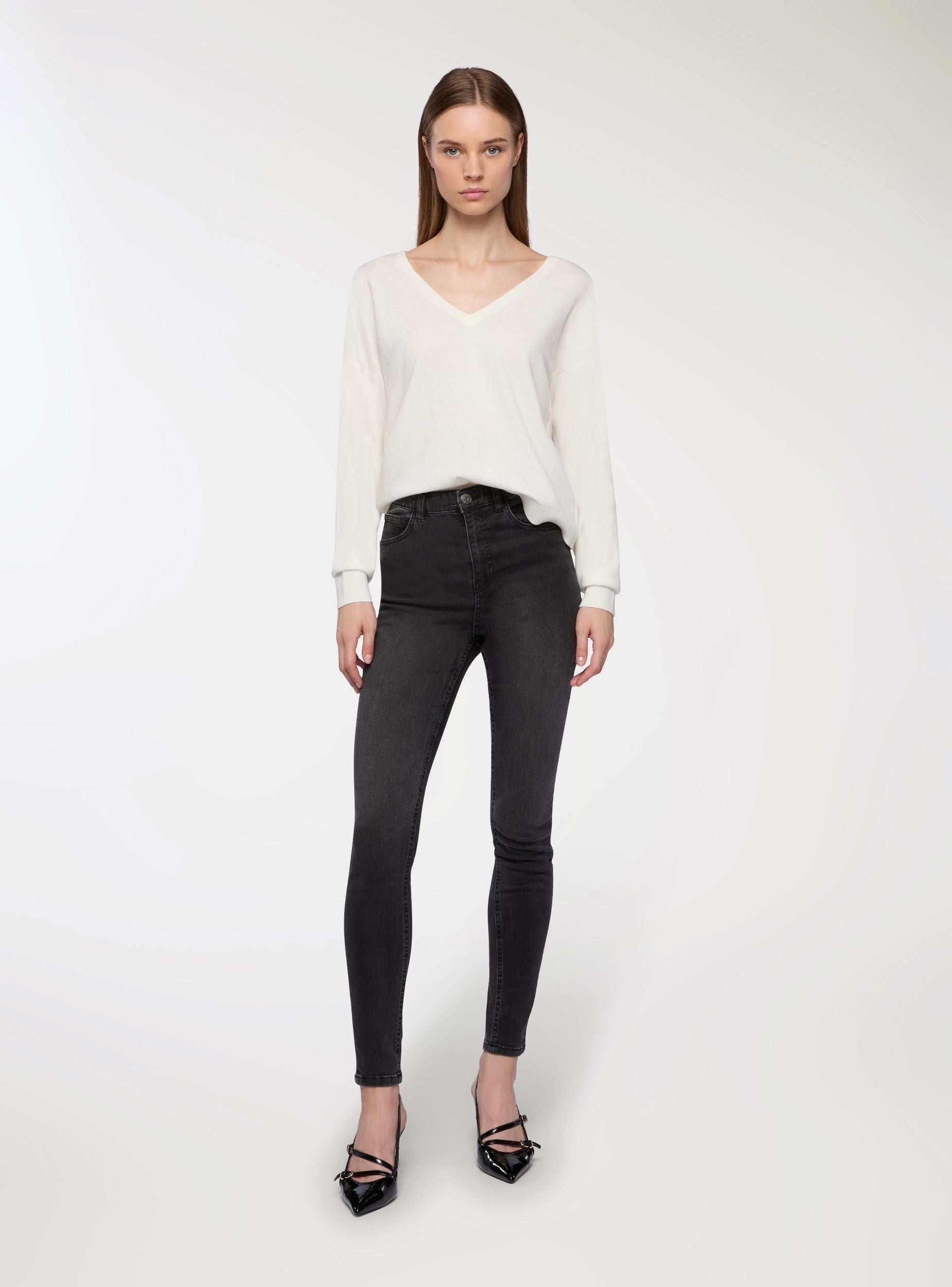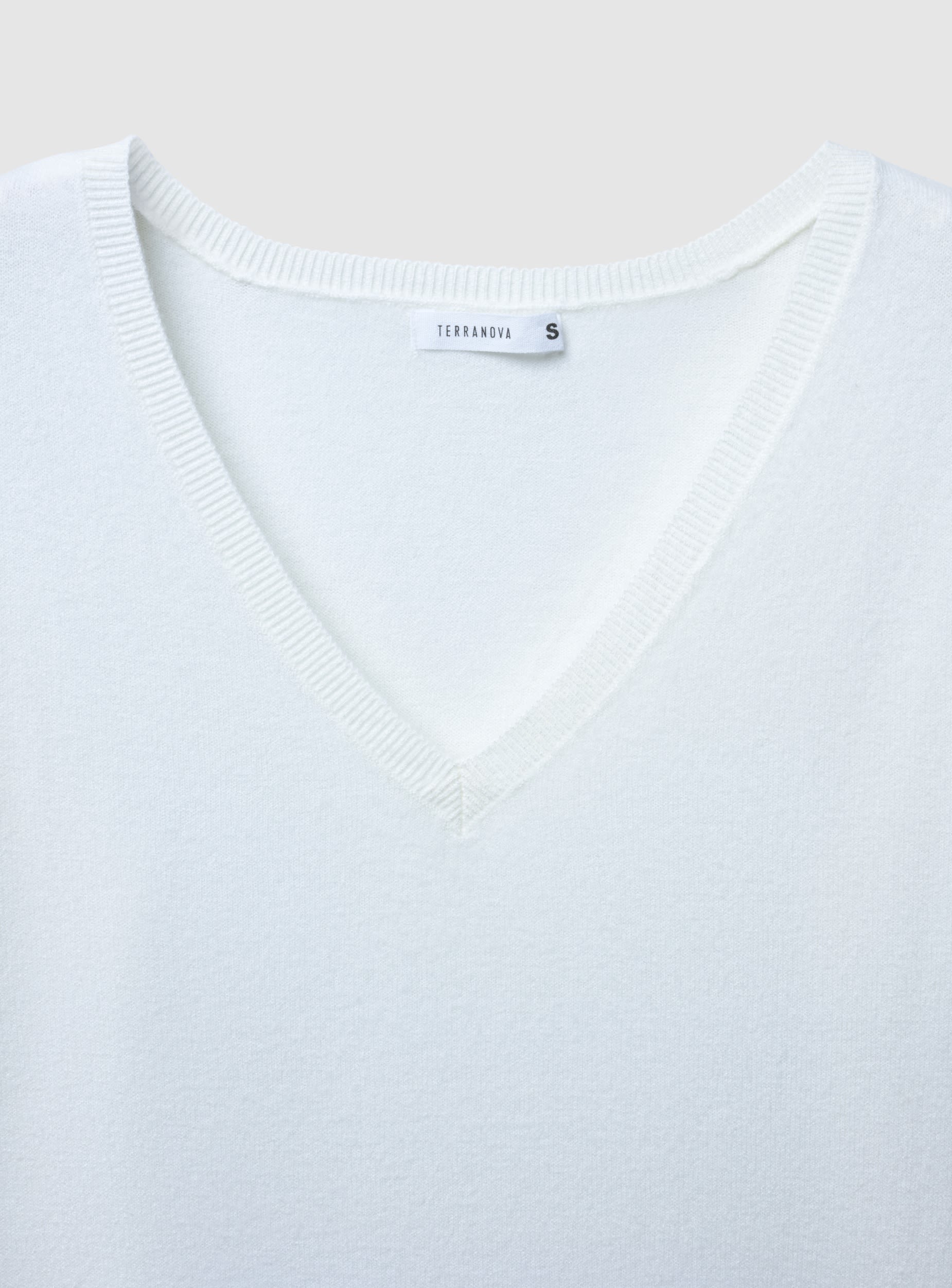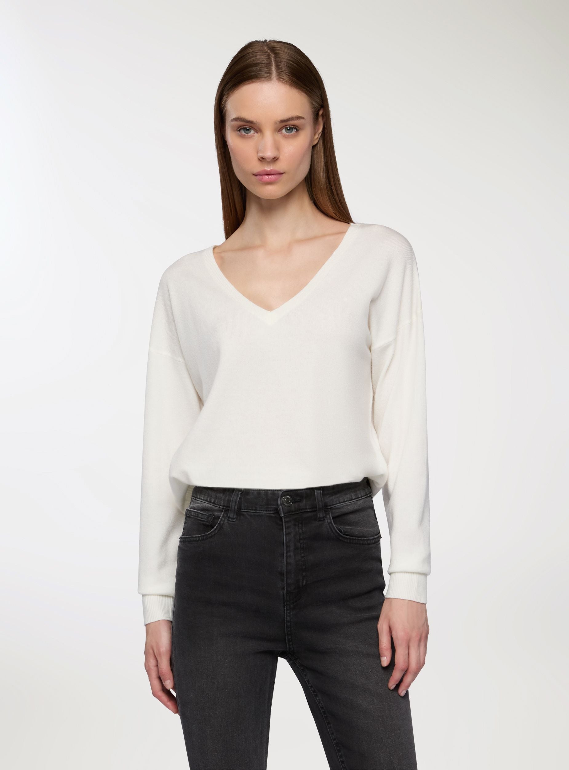Ženska majica s V-izrezom i dugim rukavima, idealna za ležeran i svestran izgled. Savršena za kombiniranje s trapericama ili elegantnim hlačama, ova majica nudi udobno pristajanje i jednostavan, ali profinjen dizajn. Mekani kroj i jednobojni uzorak čine je prikladnom za različite prilike, od posla do slobodnog vremena. Osnovni komad u garderobi svake žene.Detalji