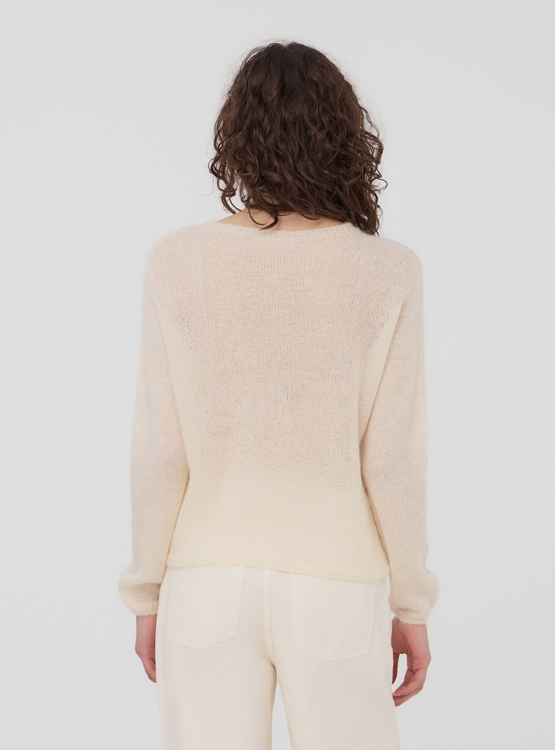 Ženski pulover izrađen od mješavine mohaira, idealan za elegantno i udobno suočavanje s hladnijim danima. Karakteriziran širokim izrezom i mekim krojem, lako se kombinira s bilo kojim outfitom zahvaljujući svestranom jednobojnom tonu. Dugi rukavi dodaju dodatnu toplinu, čineći ga savršenim za hladnije sezone. Osnovni komad za rafinirani i suvremeni izgled.