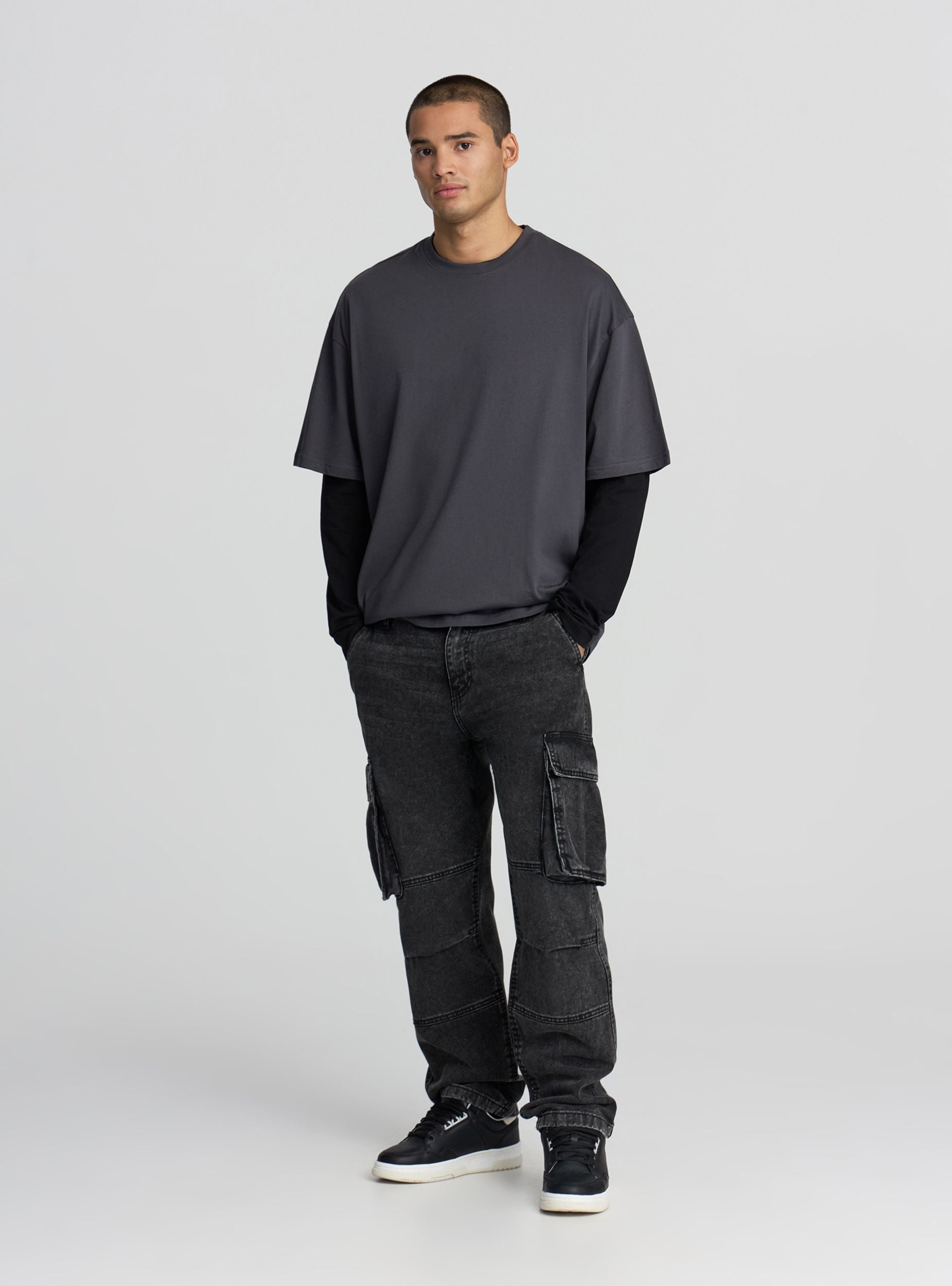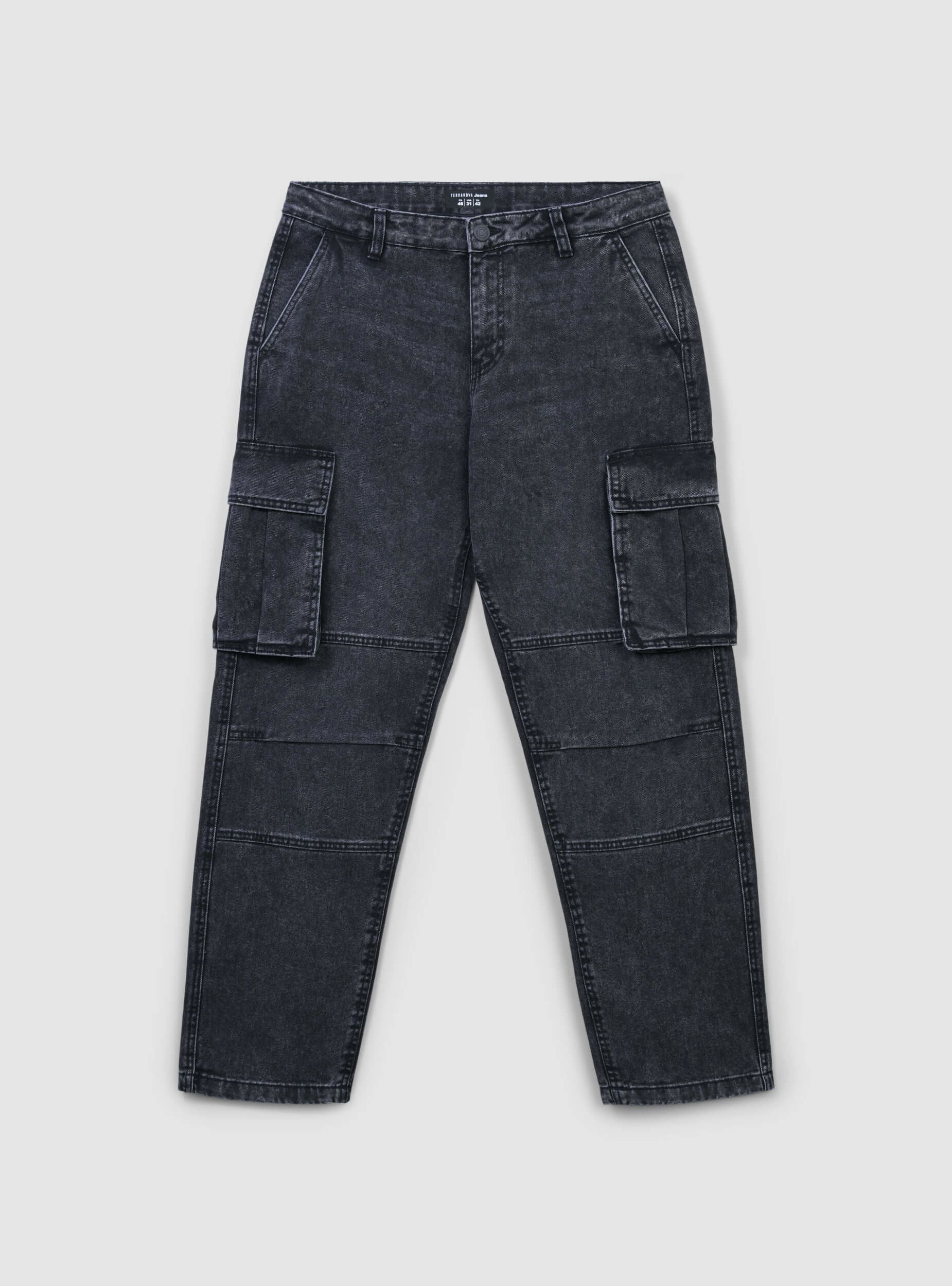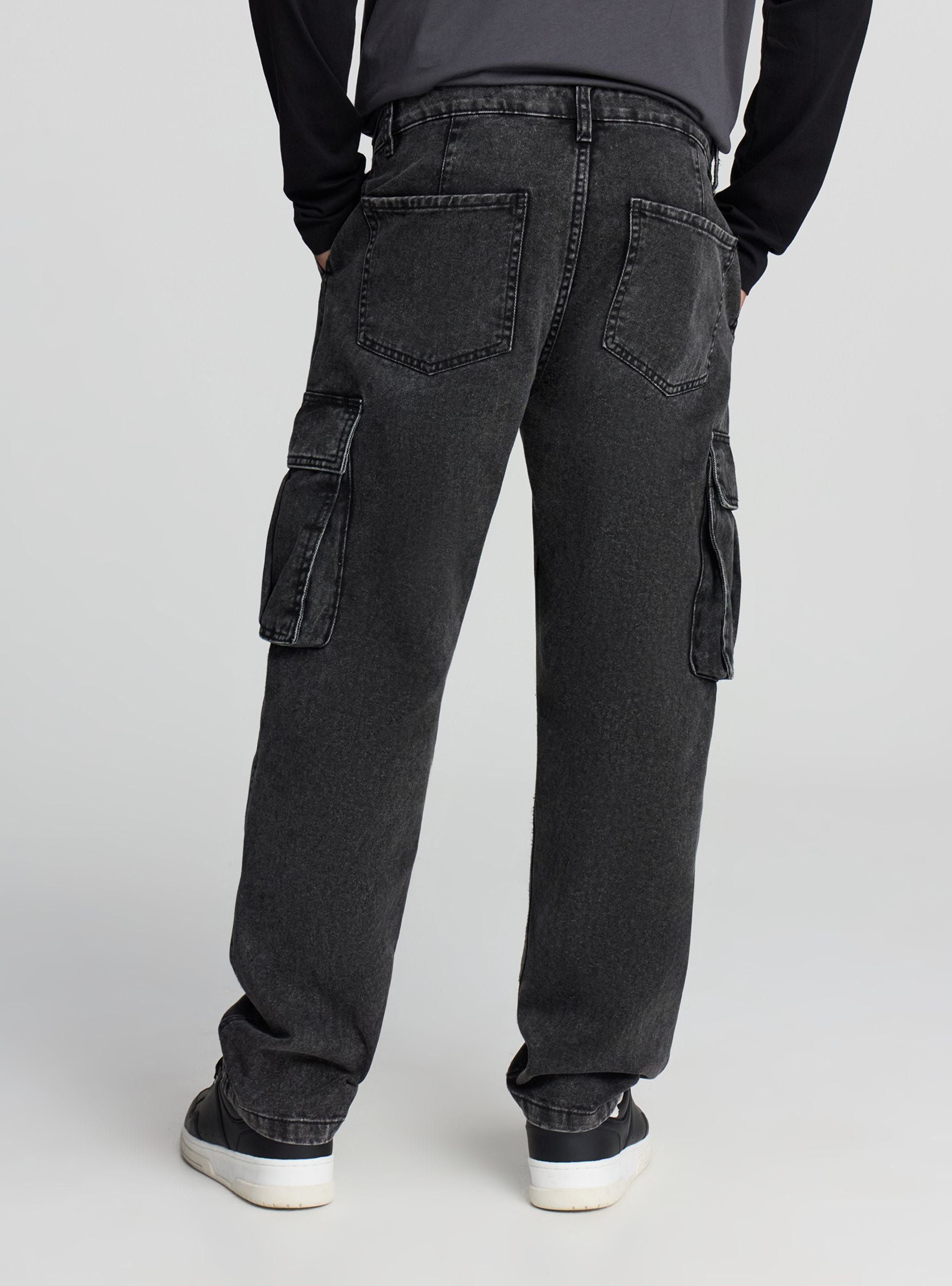 Muški cargo traperice, idealne za urbani i svestran izgled. Imaju bočne džepove s preklopom, prednje zatvaranje na gumb i patentni zatvarač, te široku kroj koji osigurava udobnost tijekom cijelog dana. Savršene su za kombiniranje s majicama ili duksericama za ležeran outfit, prikladne su kako za slobodno vrijeme, tako i za neformalne izlaske.