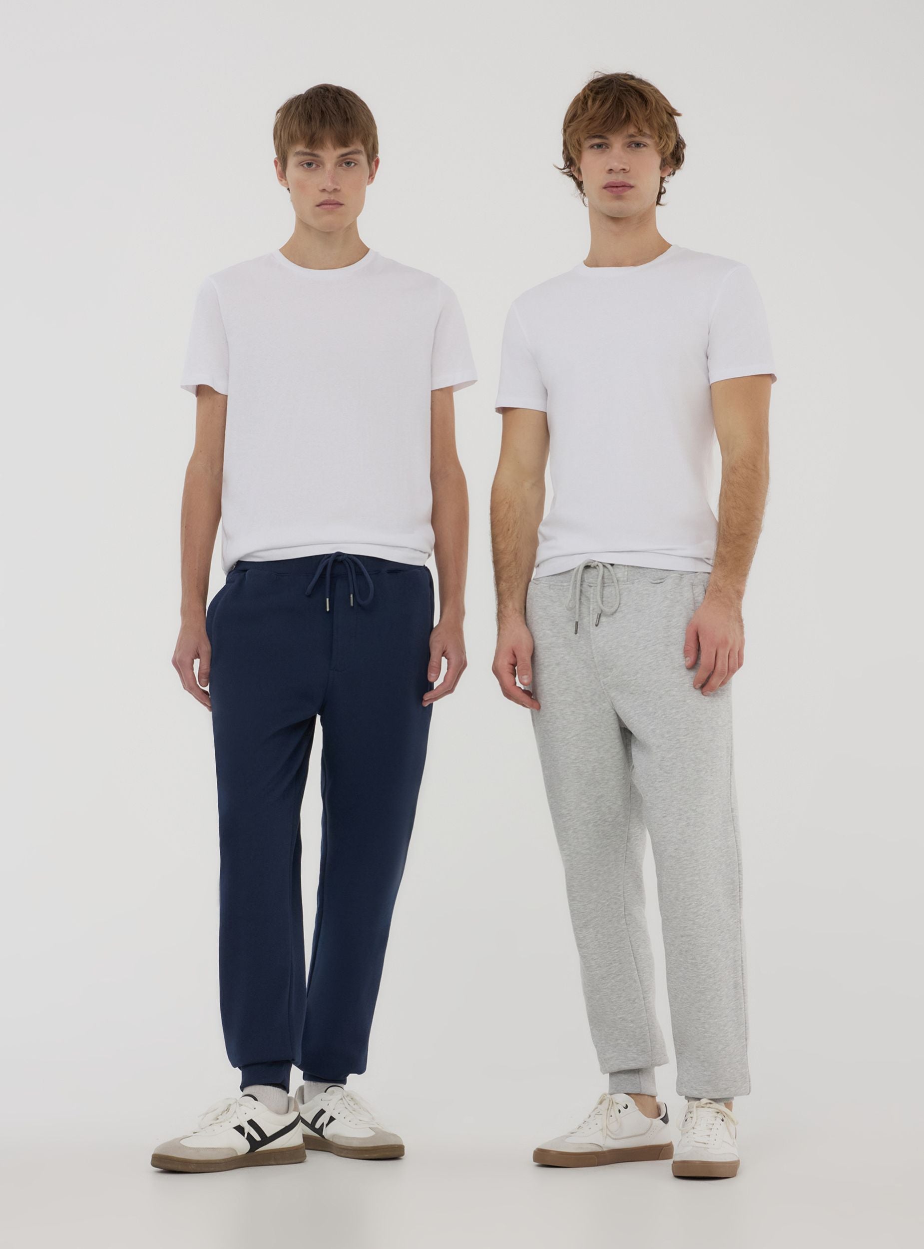 Pakiranje se sastoji od dva muška trenirka. Izrađeni su od teškog jednobojnog materijala. Model s elastičnim pojasom s podesivim vezicama za osiguranje prilagođenog i udobnog fit, bočne džepove i jedan stražnji džep, elastične manžete. Savršeni za slobodno vrijeme, trenutke opuštanja ili neformalne izlaske.Detalji